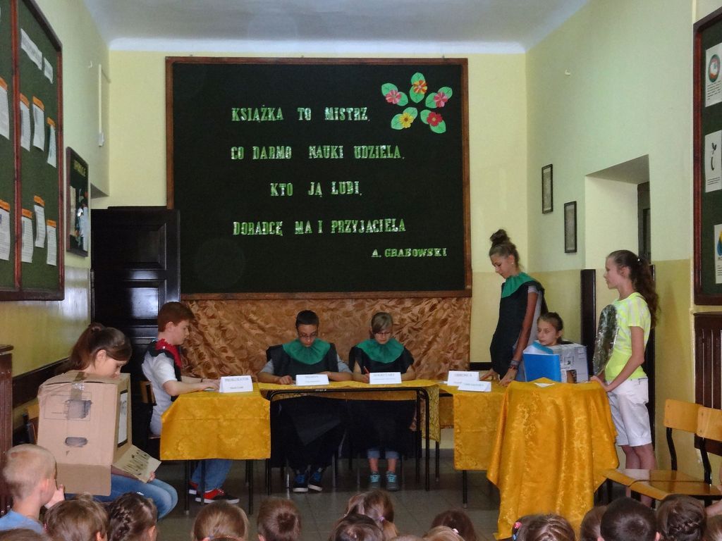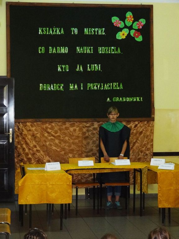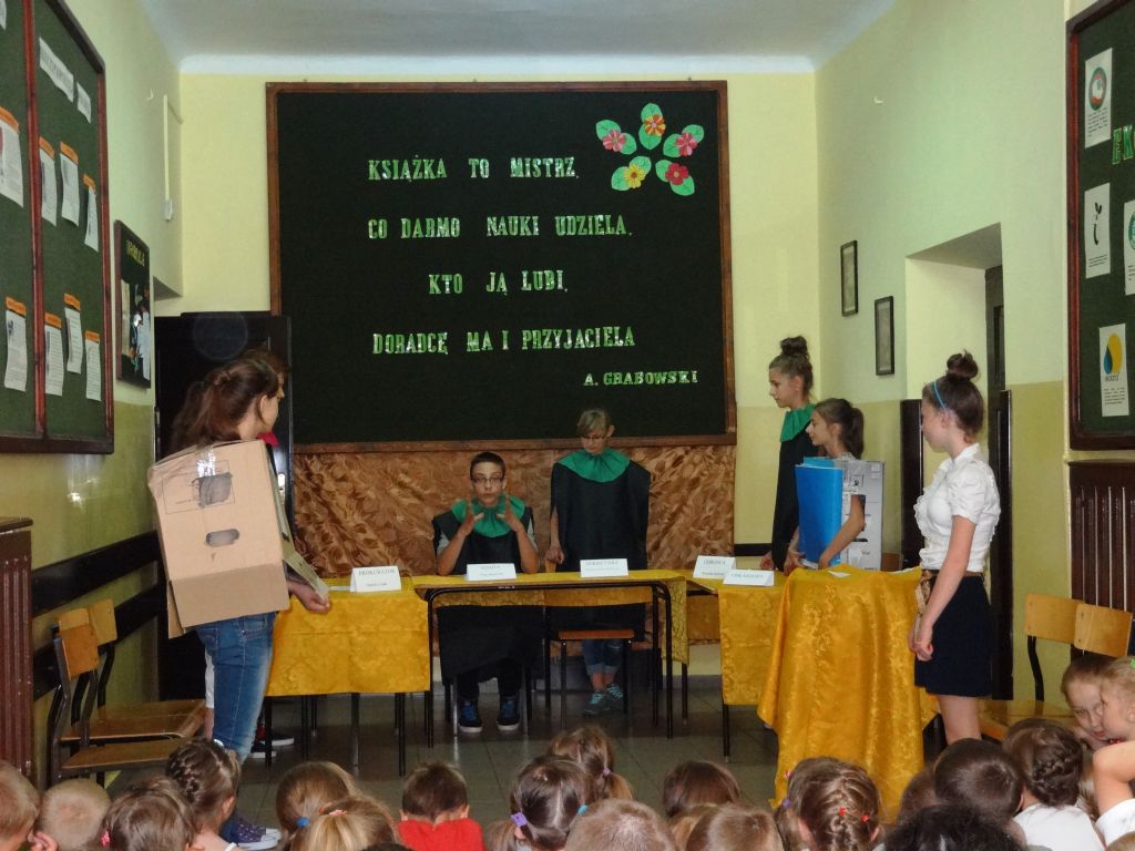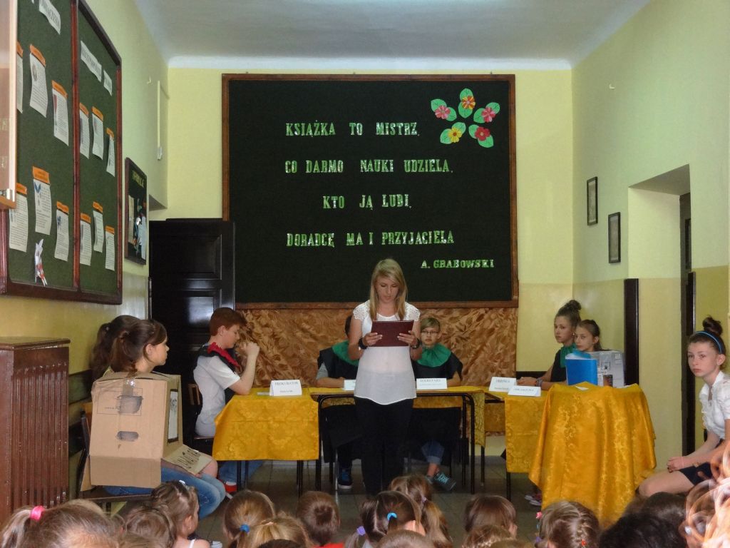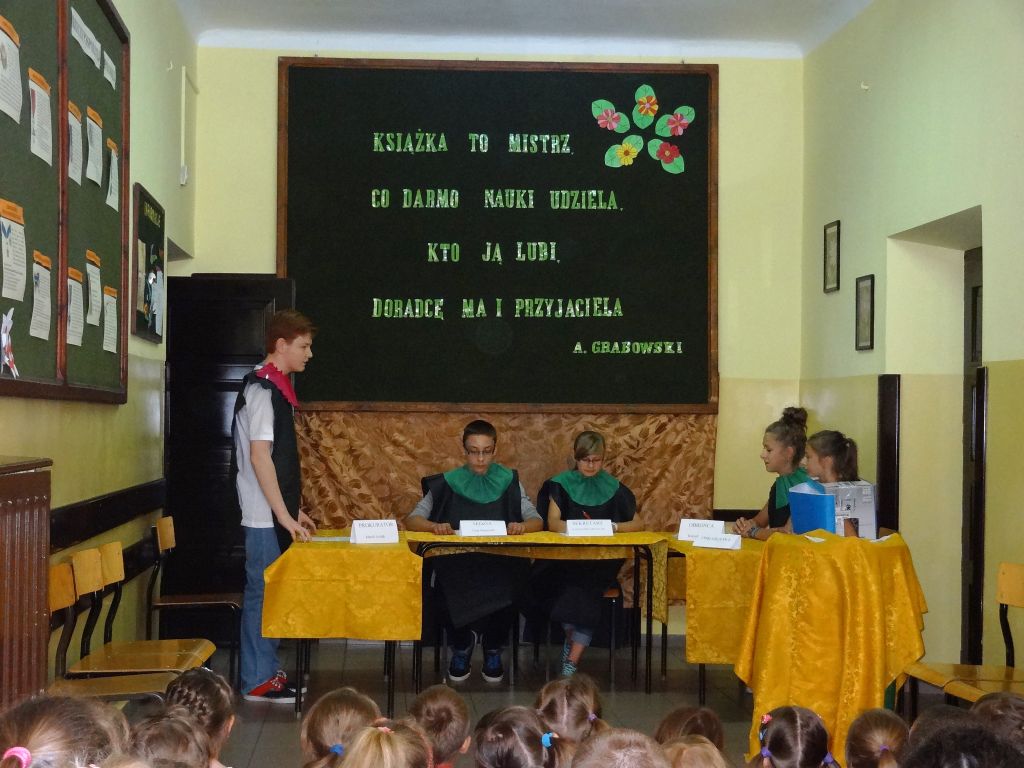 W dobie komputeryzacji i nieustannego rozwoju techniki książka staje się coraz mniej popularna. Coraz rzadziej sięgamy po nią w wolnych chwilach. Wolimy spędzać czas przed komputerem lub telewizorem. Czy we współczesnym świecie potrzebna jest książka? Aby odpowiedzieć na to pytanie uczniowie naszej szkoły przygotowali inscenizację „Książka przed sądem”, w której przedstawione zostały korzyści płynące z czytania. Sąd orzekł, że książka jest niezbędna i nie może odejść do lamusa, gdyż może współistnieć z innymi środkami przekazu.
