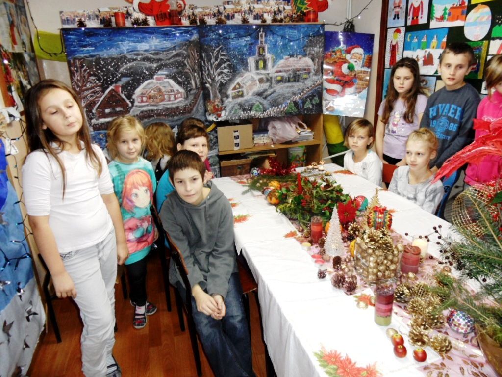 Przybliżam uczniom tradycje, obrzędy i zwyczaje bożonarodzeniowe, albowiem niektóre z nich odchodzą już w zapomnienie … . Śpiewamy kolędy i pastorałki. Dzielimy się opłatkiem, składamy życzenia. Panuje podniosły nastrój i atmosfera świąt.