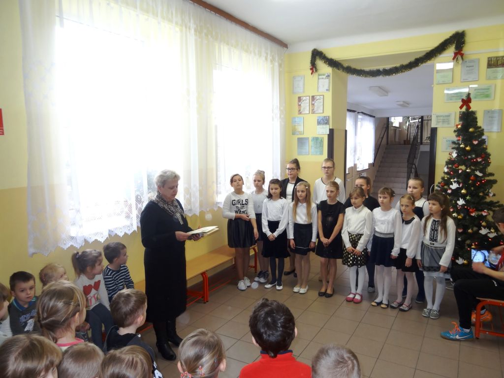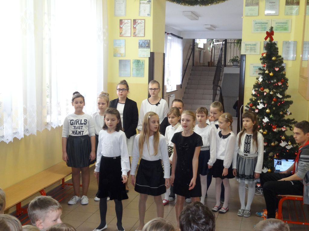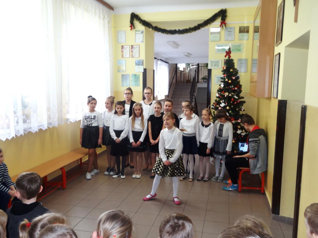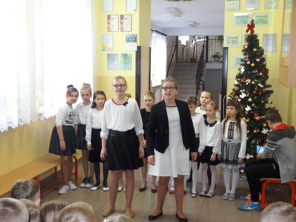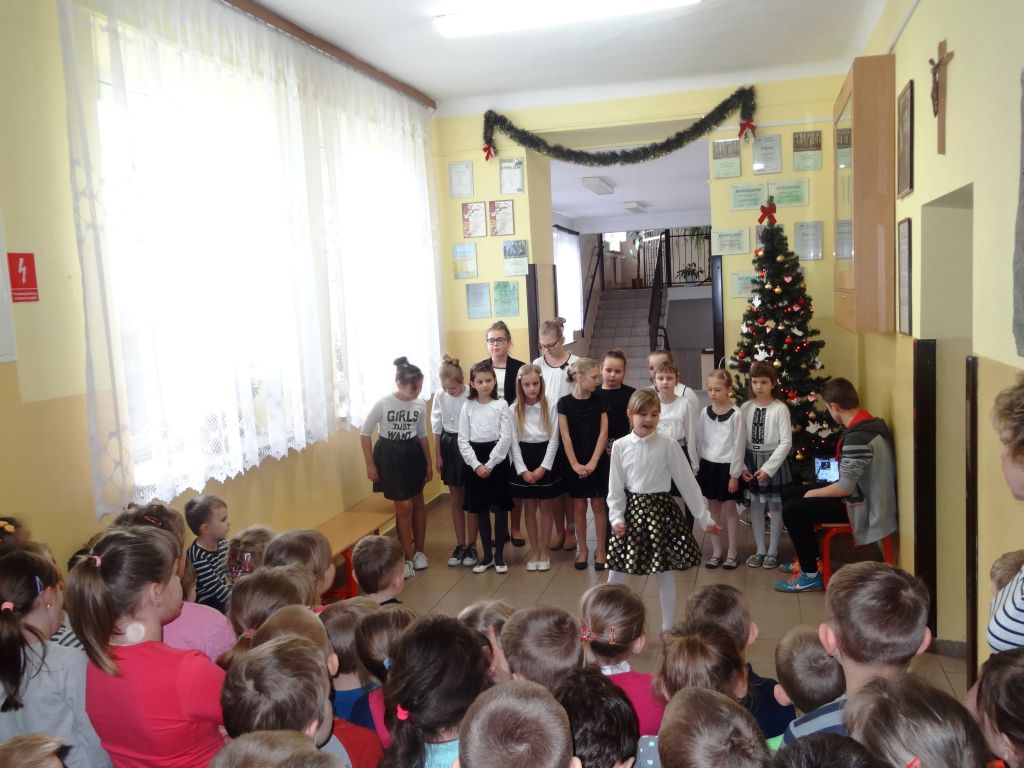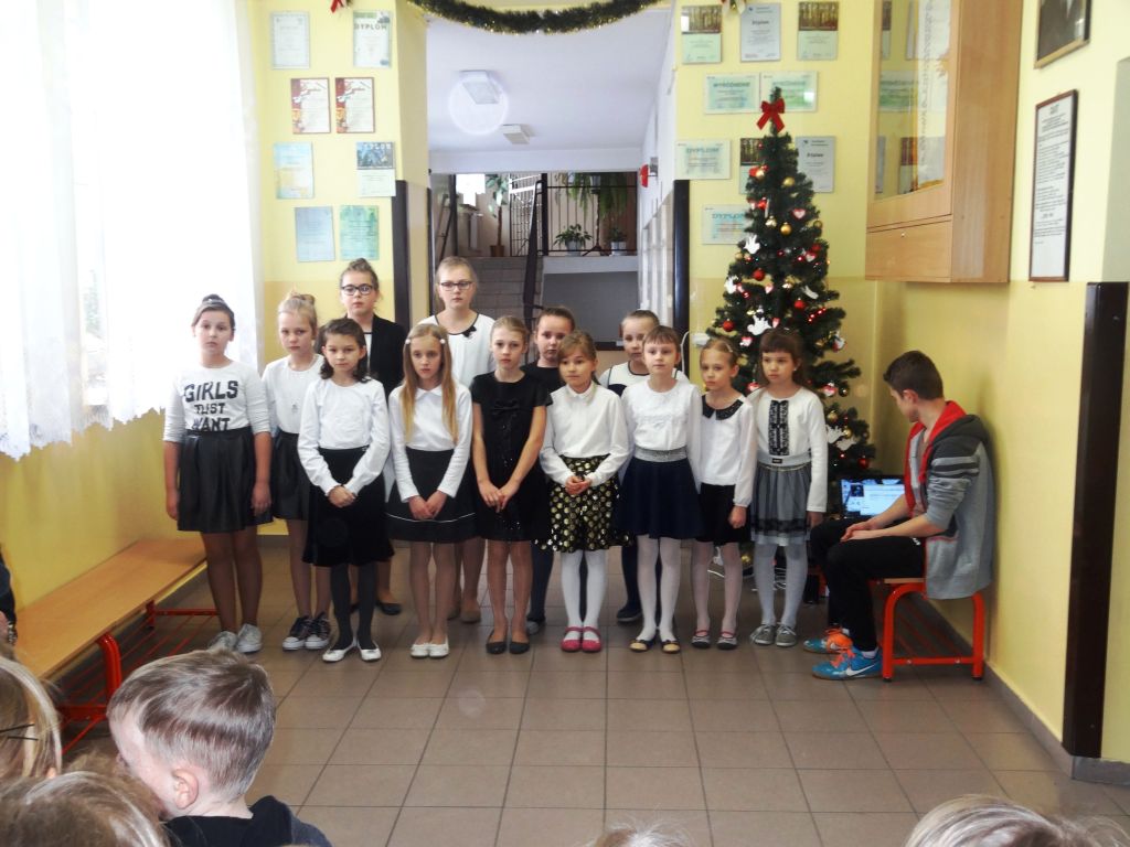 W piątek, tuż po feriach dziewczynki jeszcze raz zaprezentowały nagrodzone kolędy i pastorałki. Tym razem był to występ dla naszej szkolnej społeczności.