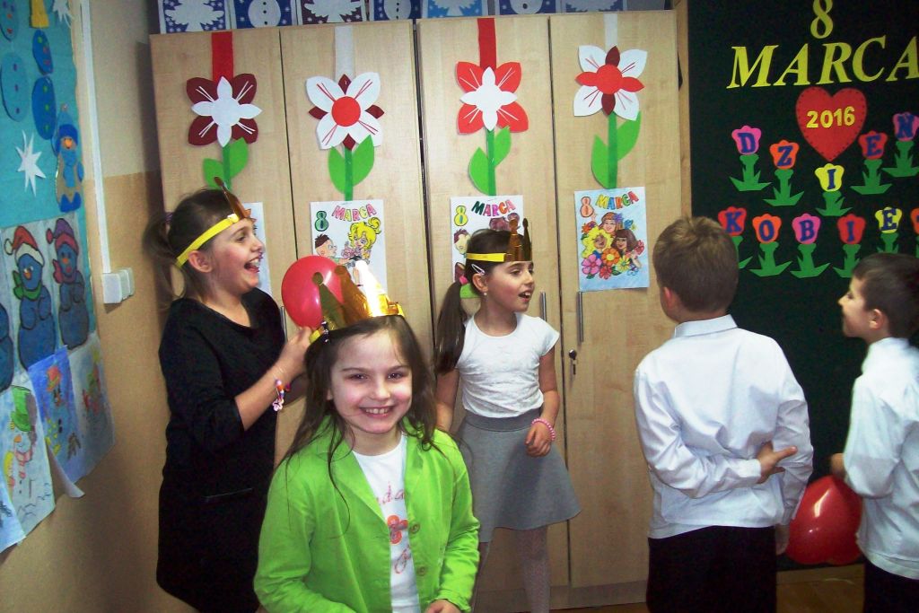 8 Marca to wyjątkowy dzień w roku. Wtedy swoje święto obchodzą wszystkie kobiety, zarówno te duże, jak i te małe. Dziewczynki z klasy II B przyszły odświętnie ubrane , by wziąć udział w „BALU KSIĘŻNICZEK”. Męska część przygotowała dla dziewczynek moc niespodzianek. Chłopcy pięknie udekorowali salę, wykonali kwiaty, a także dopingowali małe księżniczki , podczas prezentacji strojów. Każda dziewczynka jak na księżniczkę przystało, otrzymała koronę, upominek i słodkości.