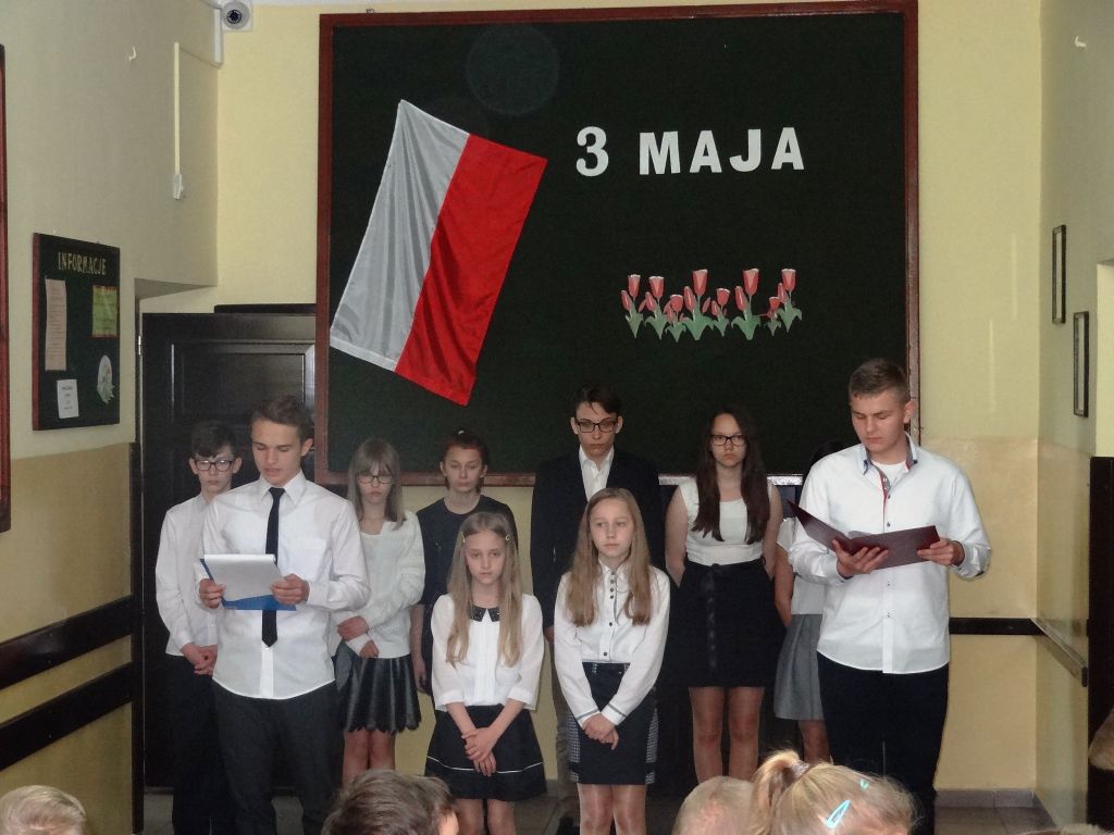 225 lat temu - 3 Maja 1791r. króli Stanisław August Poniatowski podpisał pierwszą w Europie, a drugą na świecie Ustawę Rządową – Konstytucję 3 Maja. Apel, przypominający wydarzenia jakie to tworzyły tamtym dniom, przygotowali uczniowie szkół podstawowej i gimnazjum.
