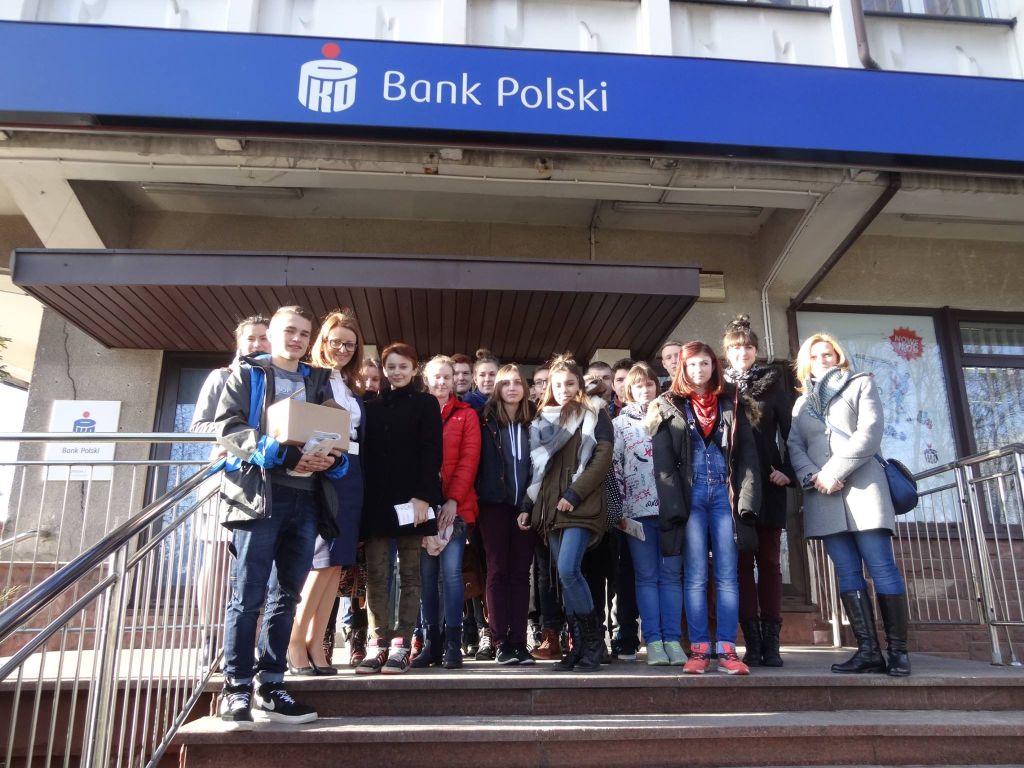 Kolejną placówką, którą odwiedzili uczniowie był Bank PKO BP w Garwolinie. Pracownicy banku w bardzo przystępny i ciekawy sposób przedstawili uczniom produkty bankowe oparte na operacjach wykonywanych drogą elektroniczną. Grupa została zapoznana ze specyfiką pracy we wszystkich działach banku przeznaczonych dla klientów indywidualnych oraz przedsiębiorców.