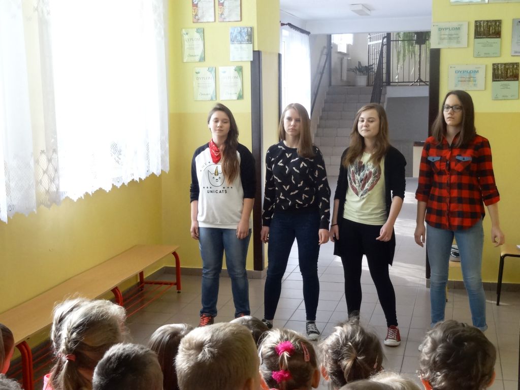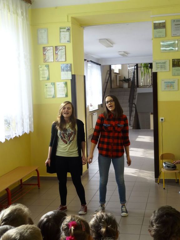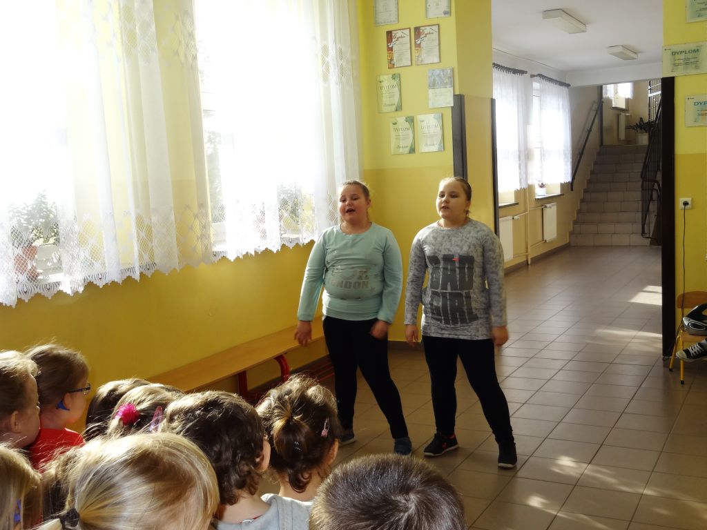 Z okazji Dnia Kobiet uczestniczki Konkursu Piosenki „Dla Ciebie” zaprezentowały nagrodzone utwory. Wszyscy z przyjemnością wysłuchaliśmy koncertu wokalnego w wykonaniu uczennic naszej szkoły. Pani Dyrektor gratulowała dziewczynkom i dodatkowo wręczyła atrakcyjne nagrody.