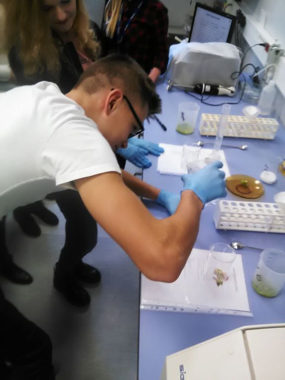 Spod szkoły ruszyliśmy o 8:30 i udaliśmy się do Puław. Dzięki zaangażowaniu Pani Anny Gałązki uczniowie odwiedzili Instytut Uprawy Nawożenia i Gleboznawstwa – Państwowy Instytut Badawczy. W Zakładzie Mikrobiologii Rolniczej Pani Małgorzata Łyszcz przedstawiła i omówiła doświadczenie „Chcę zobaczyć DNA. Izolacja DNA