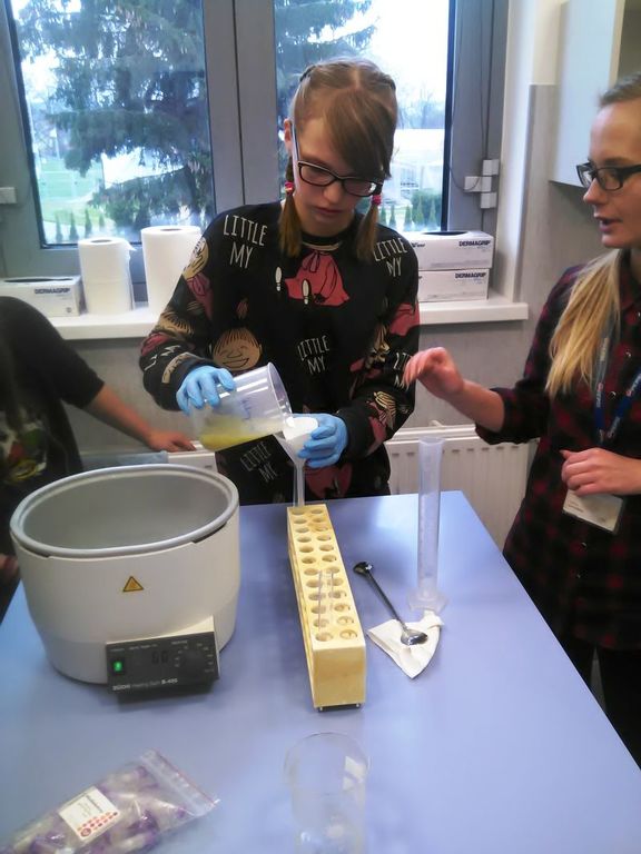 z owocu kiwi.” W doświadczeniu tym czynny udział wzięli nasi uczniowie, Rudzka Gabriela – klasa III gimnazjum oraz Czechowski Mikołaj i Kowalczyk Magdalena – klasa II gimnazjum. Uczniowie byli zachwyceni wynikami doświadczenia, jakie otrzymali. Bardzo duże wrażenie zrobił na nich również sam Instytut, ponieważ mieli możliwość zapoznania się z nowoczesnym wyposażeniem laboratorium badawczego.