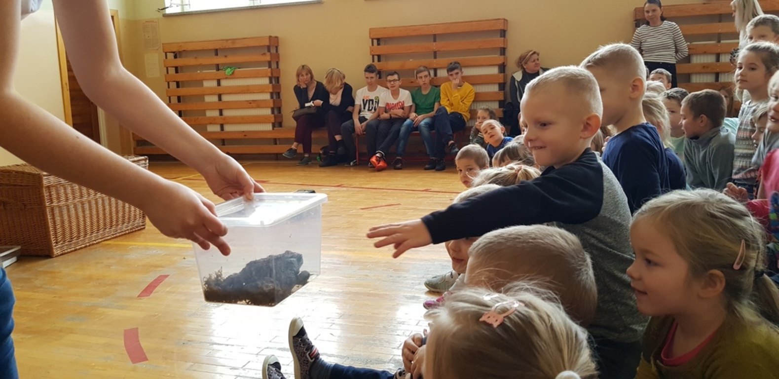 W szkole (23 stycznia 2019 r.) odbyła się kolejna lekcja z udziałem żywych zwierząt – tym razem płazów. Można było dowiedzieć się wielu ciekawostek, jak np. takich, że na świecie istnieje 7000 gatunków płazów, a w Polsce jest ich 18, że płazy nie zjedzą niczego większego od własnej głowy, że ropucha jest mięsożerna i preferuje ślimaki, dżdżownice, a nawet malutkie myszki. Poza tym uczniowie posłuchali na temat roli ubarwienia, warunków życia, funkcji trującej niektórych gatunków, a nawet usłyszeli piosenkę godową rzekotki czy dźwięk kumaka znacznie różniący się od charakterystycznego i typowego kumkania. Gatunki, które zostały zaprezentowane to: rzekotka, ropucha, kumak, traszka i salamandra. Lekcja, która bezapelacyjnie odegrała funkcję edukacyjną i w przyszłości pozwoli uniknąć pytań, jak na początku spotkania, czyli „Kiedy zobaczymy małego dinozaura?”