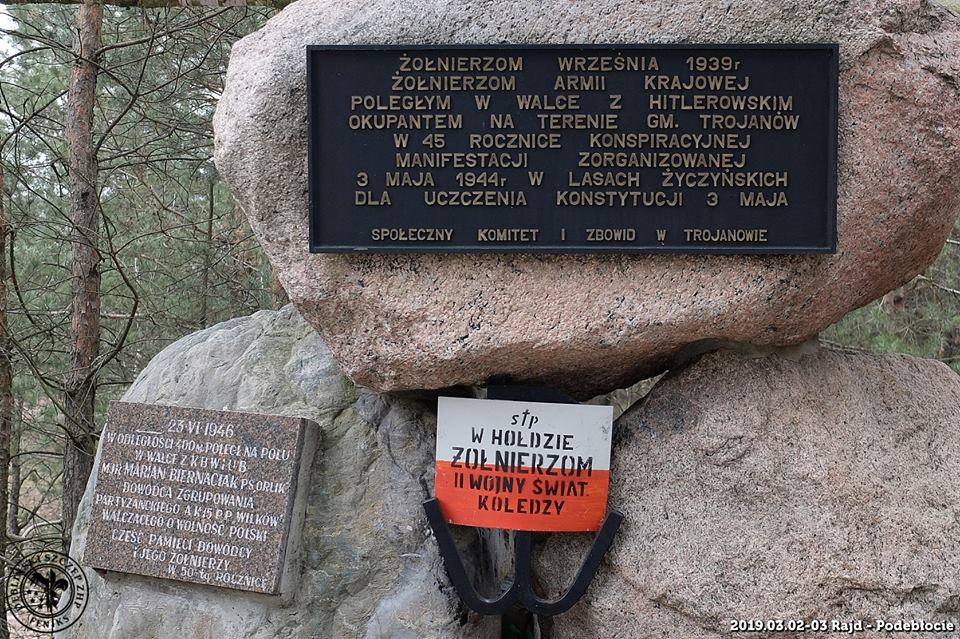 Trasa liczyła około 11 km i wiodła głównie drogami leśnymi i polnymi. Pierwszym punktem trasy był pomnik poświęcony konspiracyjnej manifestacji, zorganizowanej 3 maja 1944 r. w lasach życzyńskich dla uczczenia Konstytucji 3 Maja, położony w Piotrówku na rozwidleniu dróg Trojanów – Więcków – Piotrówek.