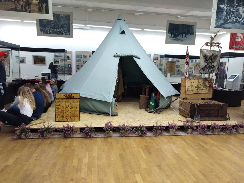 W Wojewódzkiej Bibliotece Publicznej im. H. Łopacińskiego w Lublinie czekała na naszych uczniów wystawa „Niepodległość harcerstwem znaczona 100. rocznica powstania Związku Harcerstwa Polskiego”. Rok 1918 w dziejach Polski i Związku Harcerstwa Polskiego był momentem przełomu, wyznaczył bowiem początek nowego rozdziału zarówno na kartach historii narodowej, jak i historii harcerstwa. Głównym celem ekspozycji "Niepodległość harcerstwem znaczona" przygotowanej ze zbiorów Muzeum Harcerstwa w Warszawie i WBP im. Hieronima Łopacińskiego w Lublinie, jest przypomnienie początków kształtowania się idei harcerskiej na zniewolonych ziemiach polskich, zwieńczonego zjazdem zjednoczeniowym organizacji skautowych w Lublinie w 1918 roku i utworzeniem jednego nowego Związku Harcerstwa Polskiego. Obszerny wybór materiałów, w tym rękopisów, ikonografii, dokumentów życia społecznego, oryginalnych eksponatów z epoki oraz materiałów audiowizualnych, pozwala zaprezentować historię Związku Harcerstwa Polskiego i jego miejsca w międzynarodowych strukturach skautowych, a także zaakcentować ważne dokonania jego członków w wyjątkowo trudnych dla Ojczyzny czasach. Równie istotnym elementem wystawy jest prezentacja udziału lubelskiej młodzieży harcerskiej w dążeniach niepodległościowych. Ekspozycja unaocznia dzieje Związku Harcerstwa Polskiego na przestrzeni całego stulecia w aspekcie jego ciągłości i nierozerwalności z narodowymi tradycjami, a także w kontekście wielowymiarowej służby harcerek i harcerzy na rzecz bliźnich i Ojczyzny.