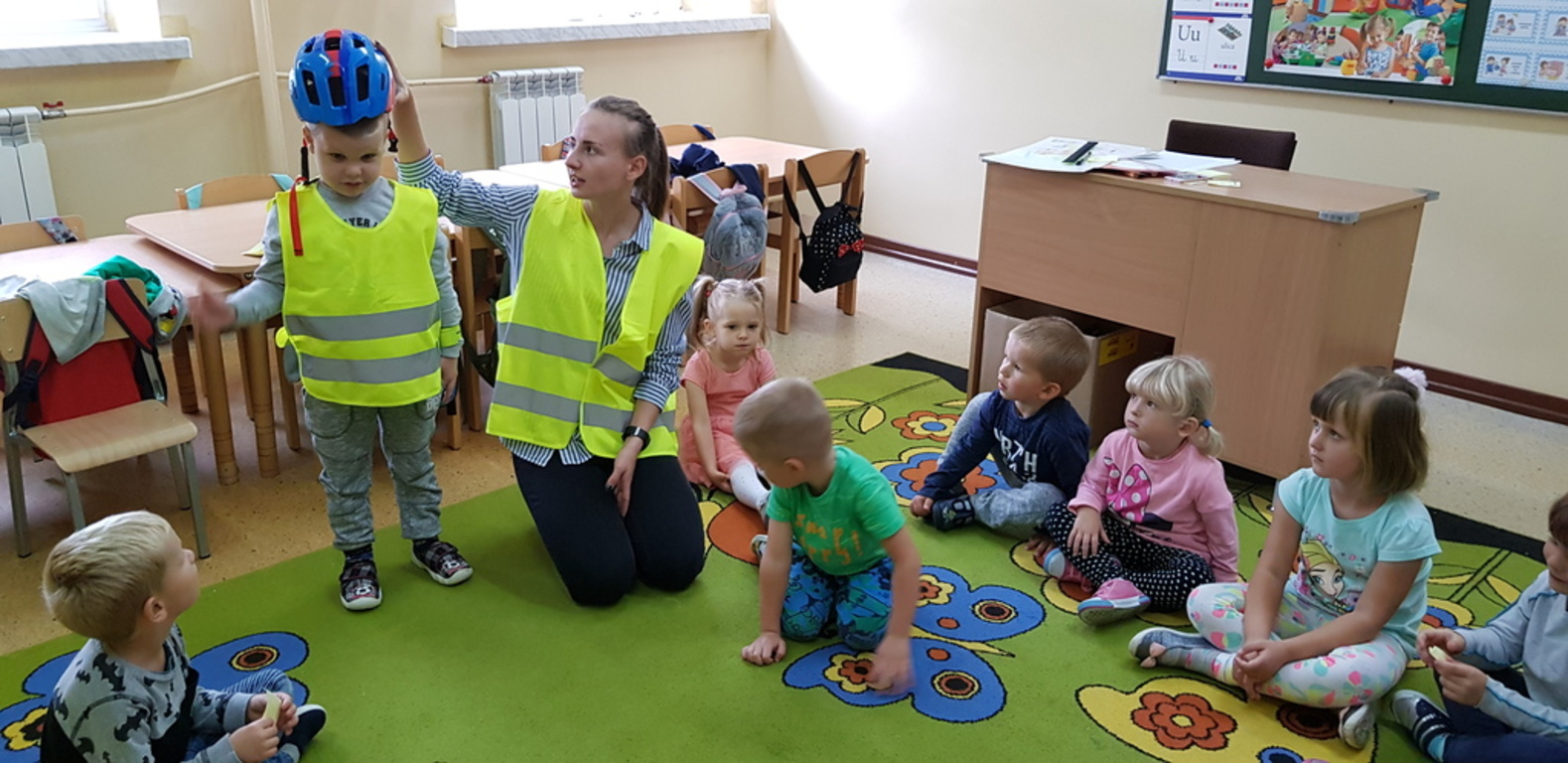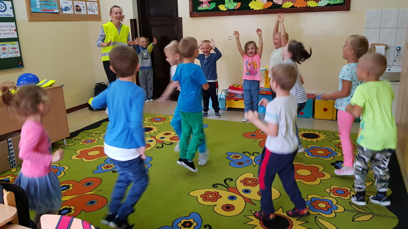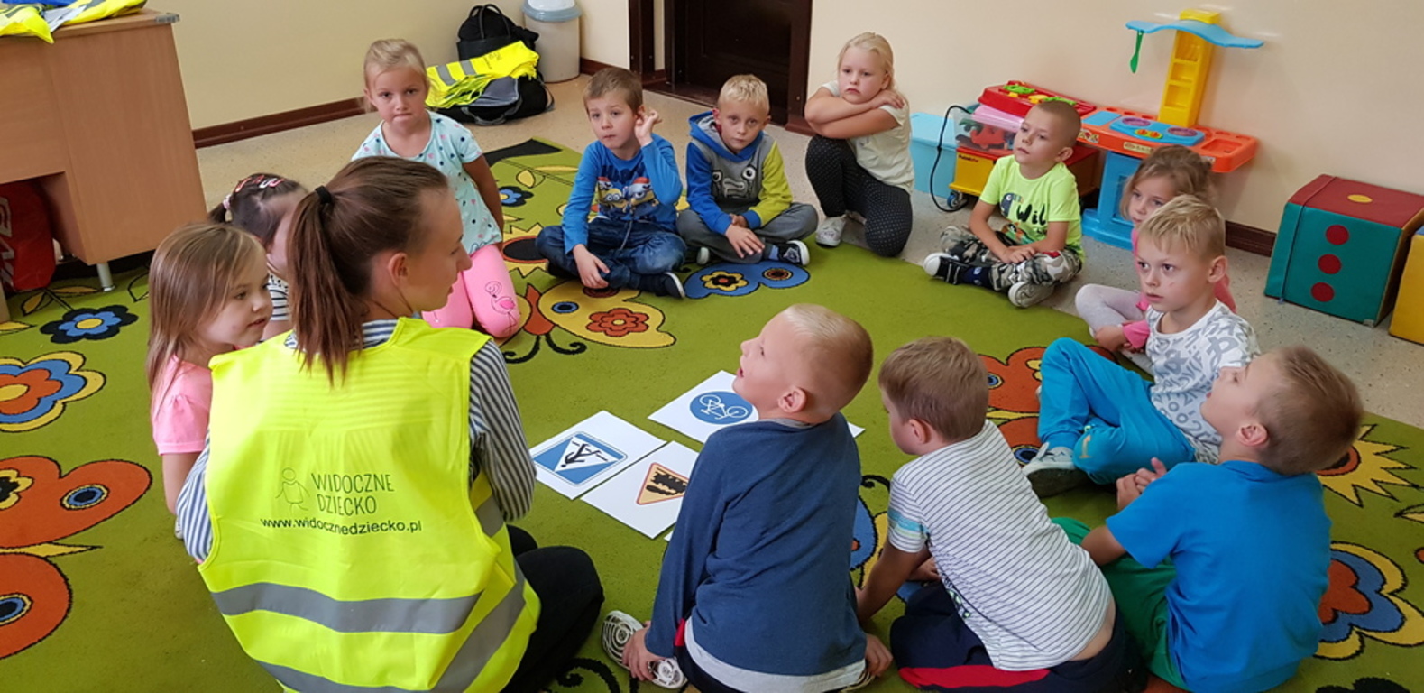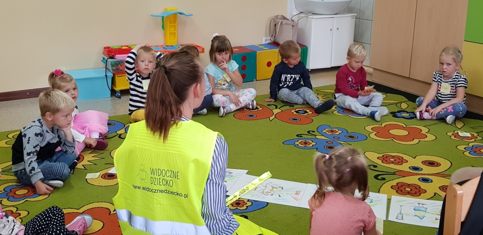 Warsztaty prowadzili instruktorzy z ogólnopolskiej kampanii „Widoczne dziecko”. Korzystając z innowacyjnego programu i zestawu edukacyjnego zawierającego m.in. znaki drogowe dzieci zapoznawały się z przepisami ruchu drogowego i opanowywały umiejętności m.in. wykonania telefonu na numer alarmowy, podania adresu i opisania miejsca zdarzenia oraz stanu osoby poszkodowanej.