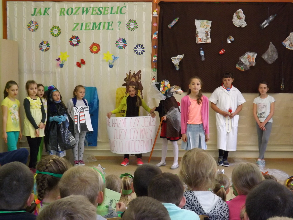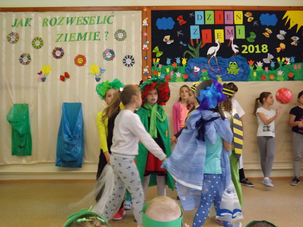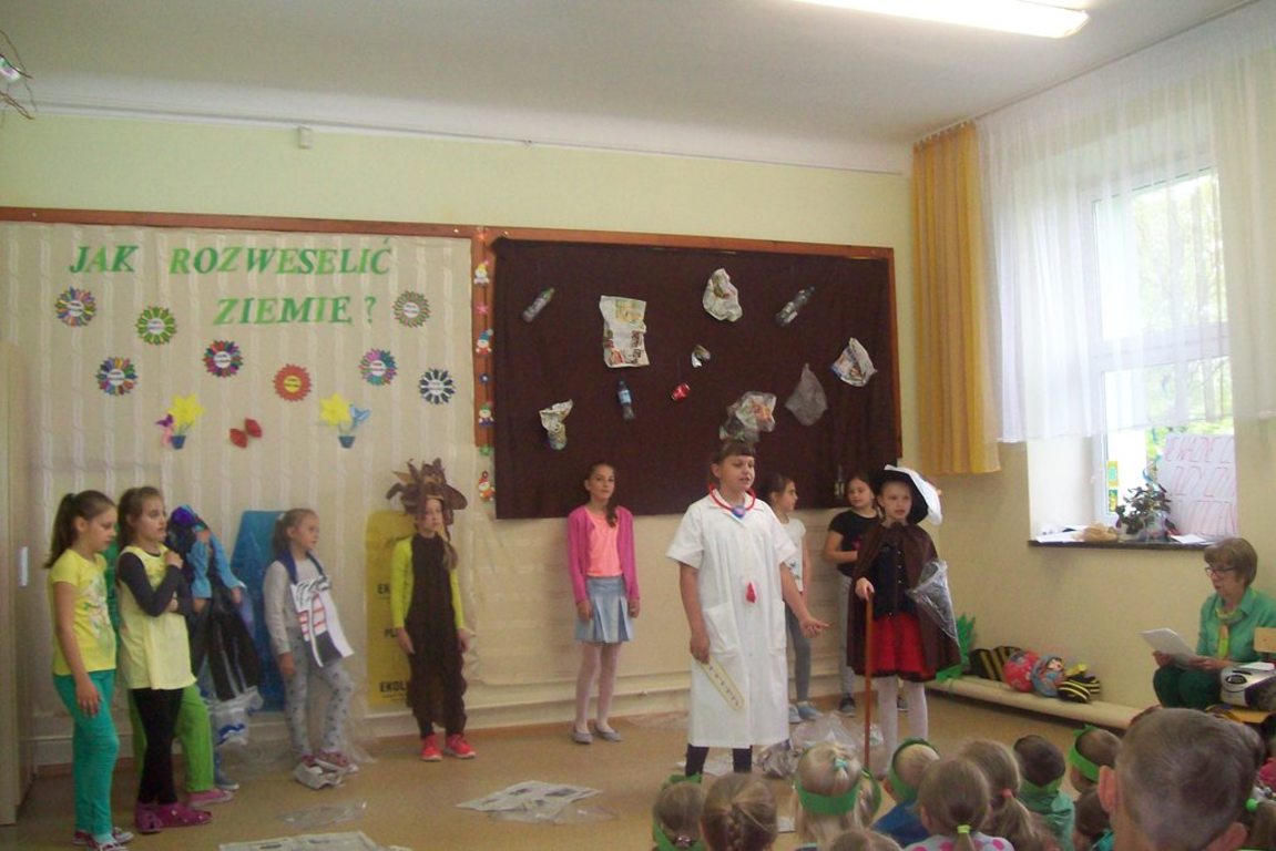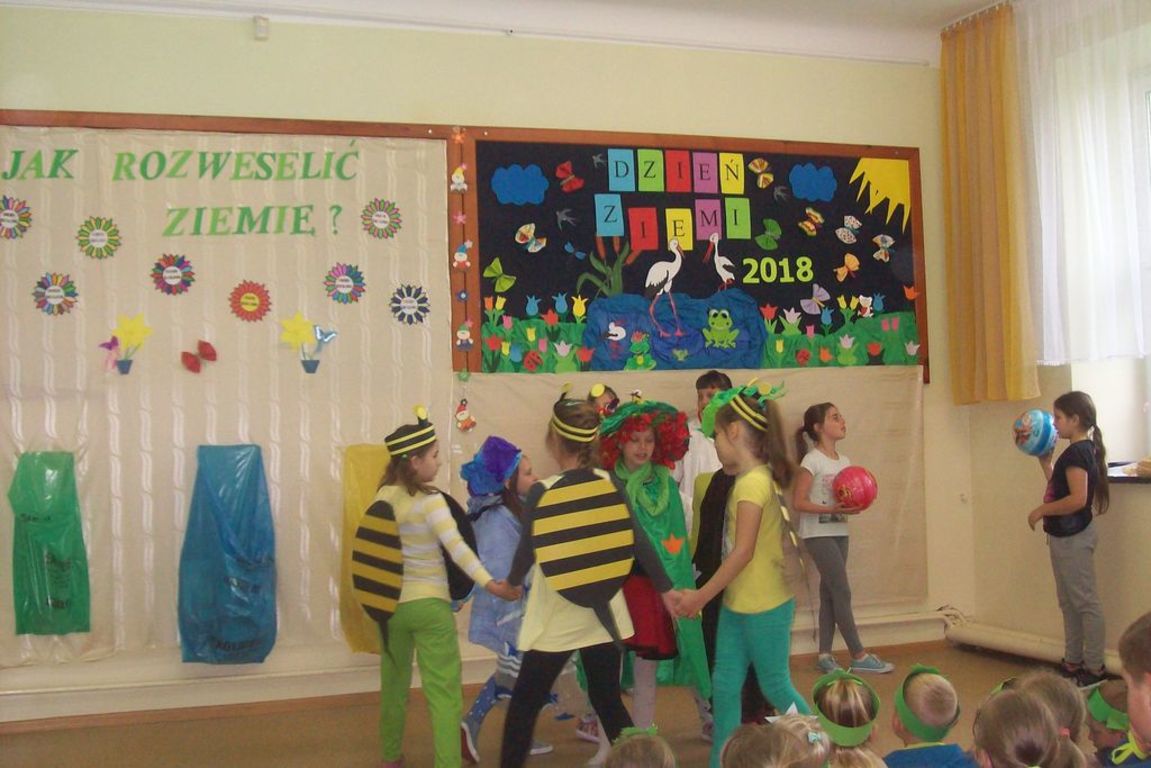 Z okazji Dnia Ziemi 25 kwietnia uczestnicy zajęć świetlicowych przedstawili inscenizację pt.: ”JAK ROZWESELIĆ ZIEMIĘ”, na którą zaproszono dzieci zoddziałów przedszkolnych, uczniów klas I , II, IV i V.