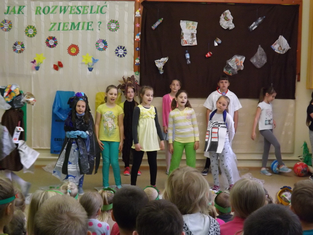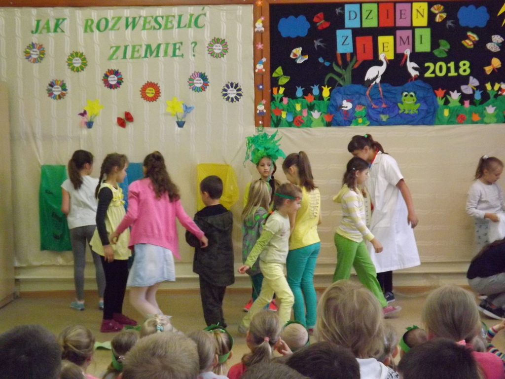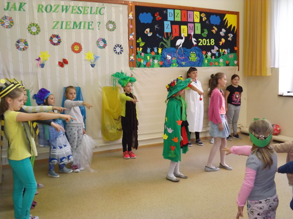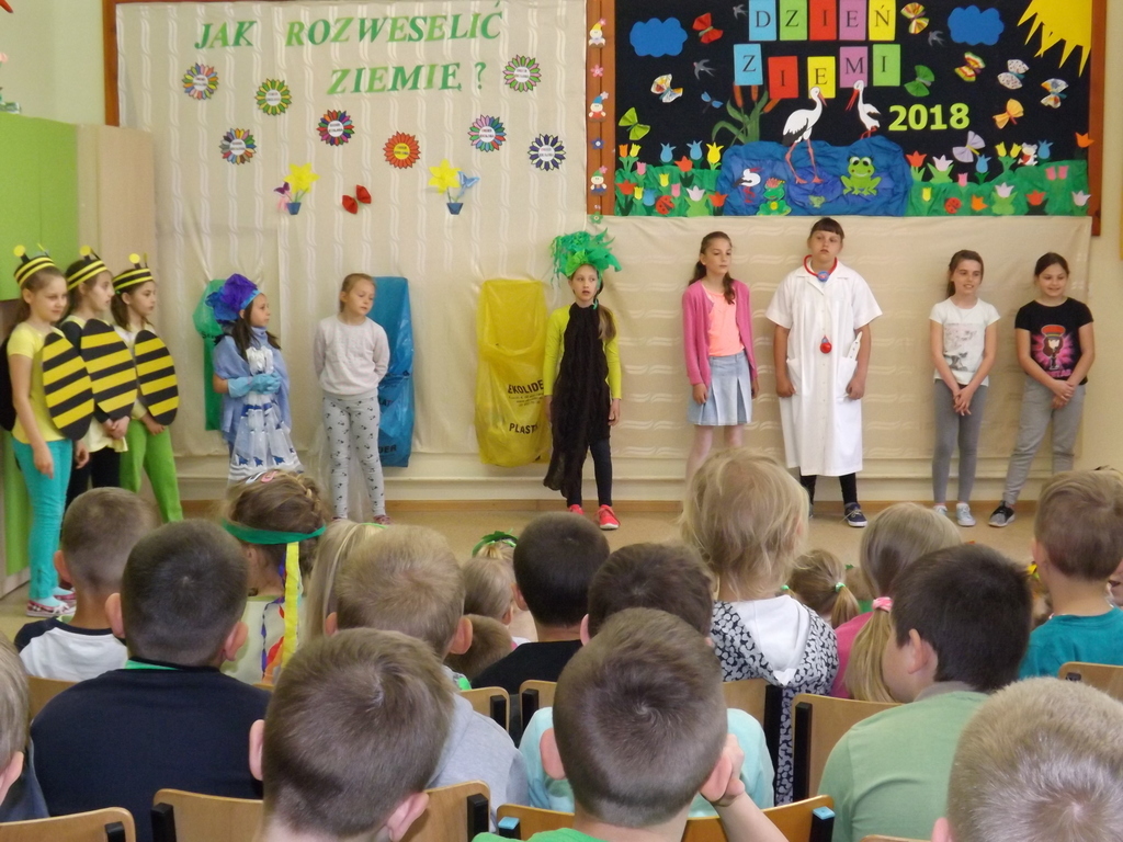 Z okazji Dnia Ziemi 25 kwietnia uczestnicy zajęć świetlicowych przedstawili inscenizację pt.: ”JAK ROZWESELIĆ ZIEMIĘ”, na którą zaproszono dzieci zoddziałów przedszkolnych, uczniów klas I , II, IV i V.