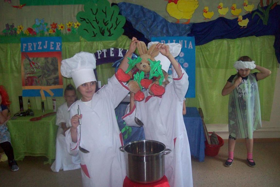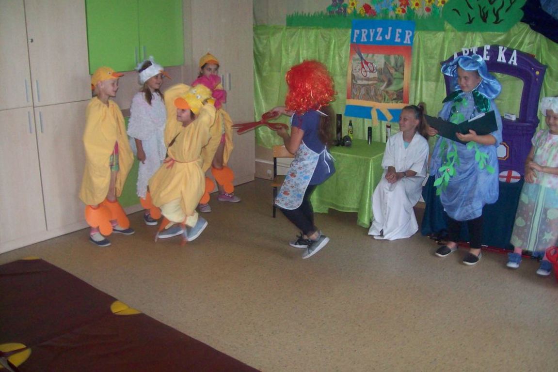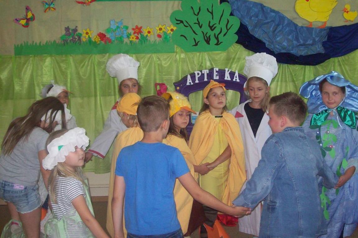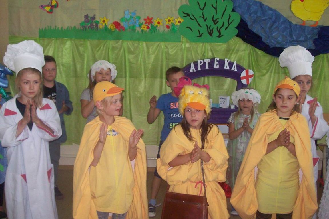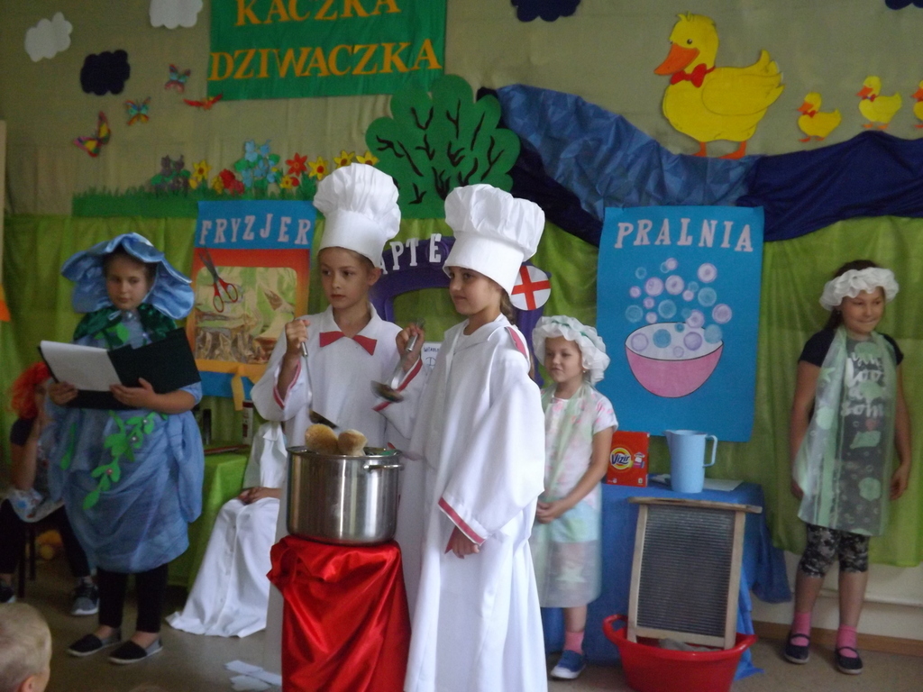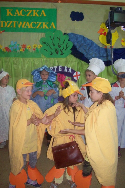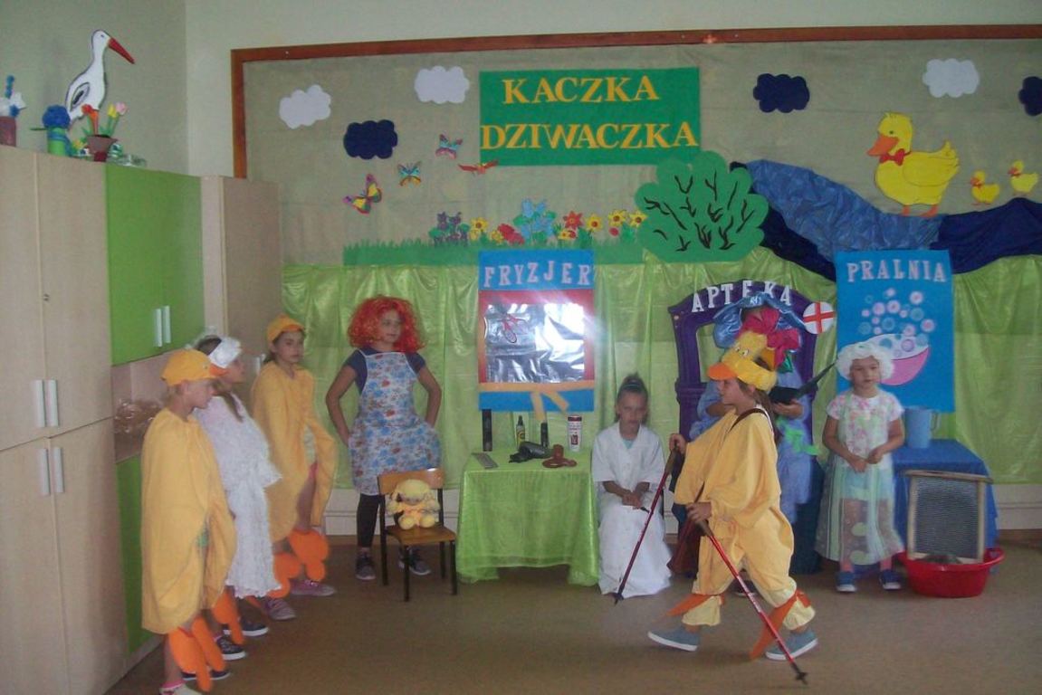Przez cały rok w świetlicy szkolnej rozbudzano zainteresowania dzieci poprzez czytanie utworów znanych poetów. Aby jeszcze bardziej zainteresować dzieci literaturą dziecięcą wiersz Jana Brzechwy „KACZKA DZIWACZKA” przedstawiliśmy za pomocą inscenizacji.