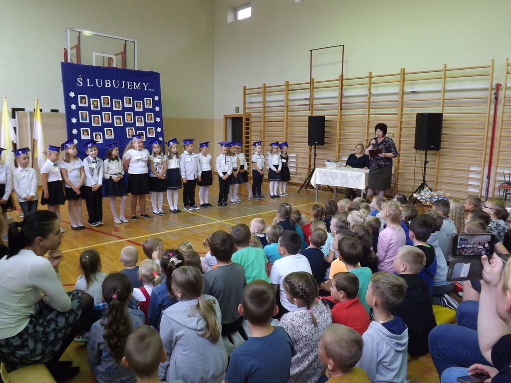 Dnia 24 października 2019 roku w naszej szkole odbyła się Uroczystość pasowania na ucznia klasy pierwszej. Na ceremonię przybyli zaproszeni goście, rodzice pierwszoklasistów oraz społeczność szkolna.