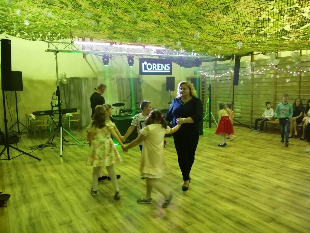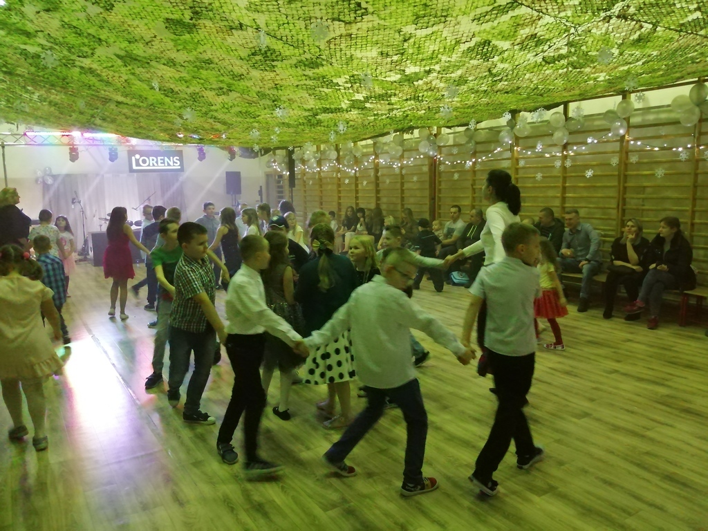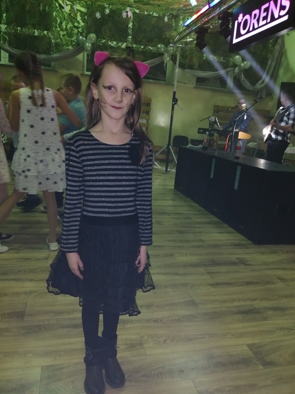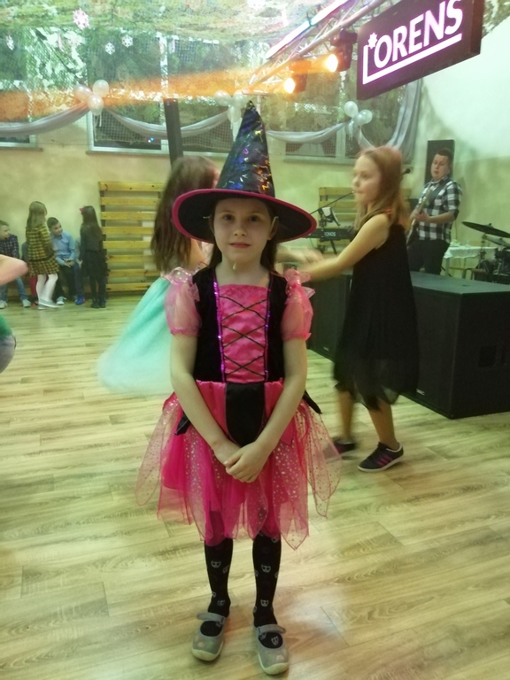 Dzieci i młodzież bawił zespół muzyczny "LORENS". Klimat podczas tańca robiły efekty specjalne w postaci kolorowych światełek. Dzieci były ubrane w bardzo ciekawe i wspaniałe kostiumy.