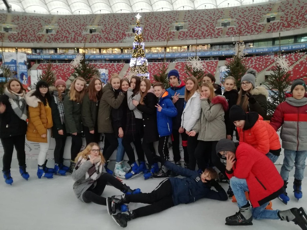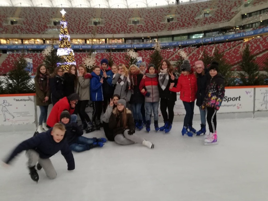 Następnie spędziliśmy bardzo aktywnie czas na lodowisku Stadionu Narodowego. Uśmiechy nie schodziły uczestnikom wycieczki z ust.