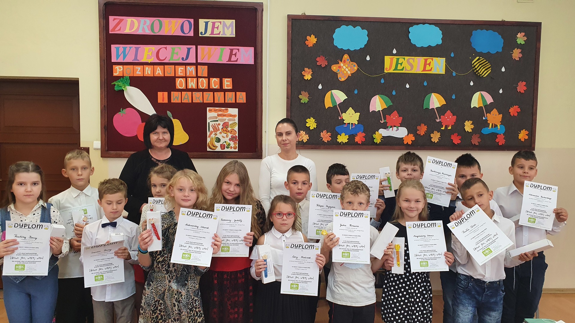 Z wielką dumą informujemy, że w Ogólnopolskim Projekcie Edukacyjnym „Zdrowo jem, Więcej wiem” w roku szkolnym 2019/2020, spośród 121 zgłoszonych placówek szkolnych, zespół „CYTRYNKI 16” ze Szkoły Podstawowej im. chor. Jerzego Paca w Życzynie zajął PIERWSZE MIEJSCE w etapie Zima w kategorii klas II-III.