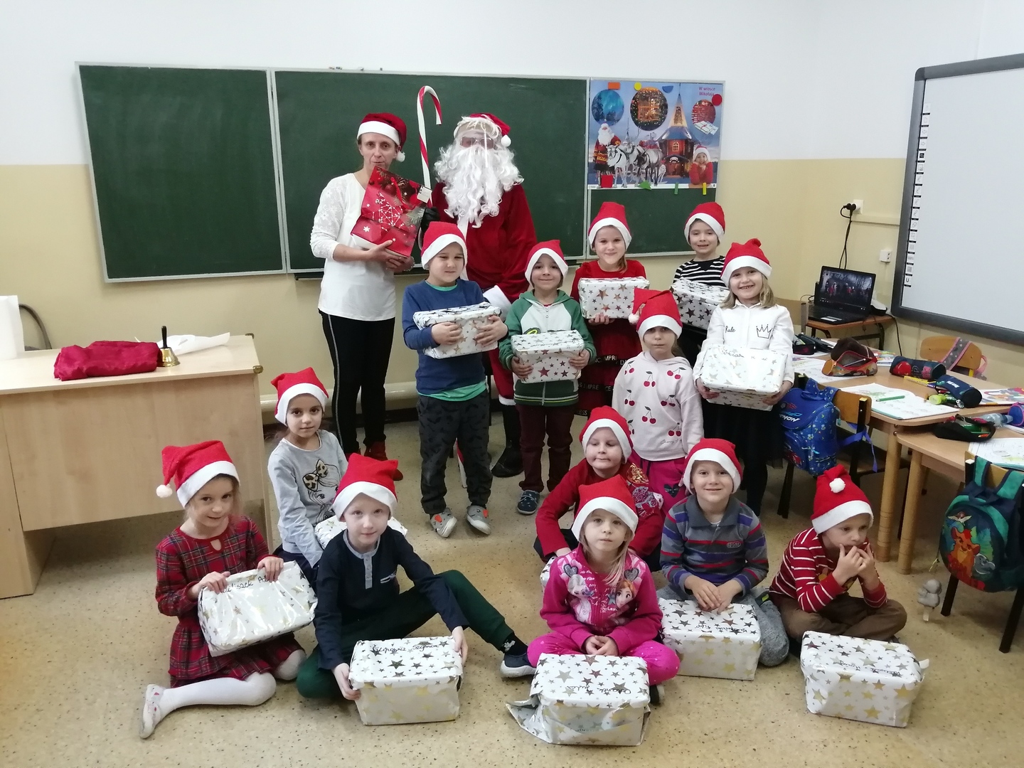 Dźwięki dzwoneczków pod salami świadczyły o tym, że zbliża się nie kto inny, tylko ON - ŚWIĘTY MIKOŁAJ. Wszystkie dzieci przywitały Go oklaskami i piosenkami, które przygotowały wcześniej wraz ze swoimi wychowawczyniami. Mikołaj miał pełne worki prezentów. Podczas ich wręczania dzieci były rozpromienione i bardzo szczęśliwe. Chętnie rozmawiały z Mikołajem, mówiły wierszyki i śpiewały piosenki. Święty Mikołaj wszystkim dzieciom, ich rodzinom i paniom wychowawczyniom życzył dużo zdrowia oraz radosnych Świąt Bożego Narodzenia. Chętnie pozował do zdjęć z dziećmi. Na koniec obiecał, że zjawi się za rok.