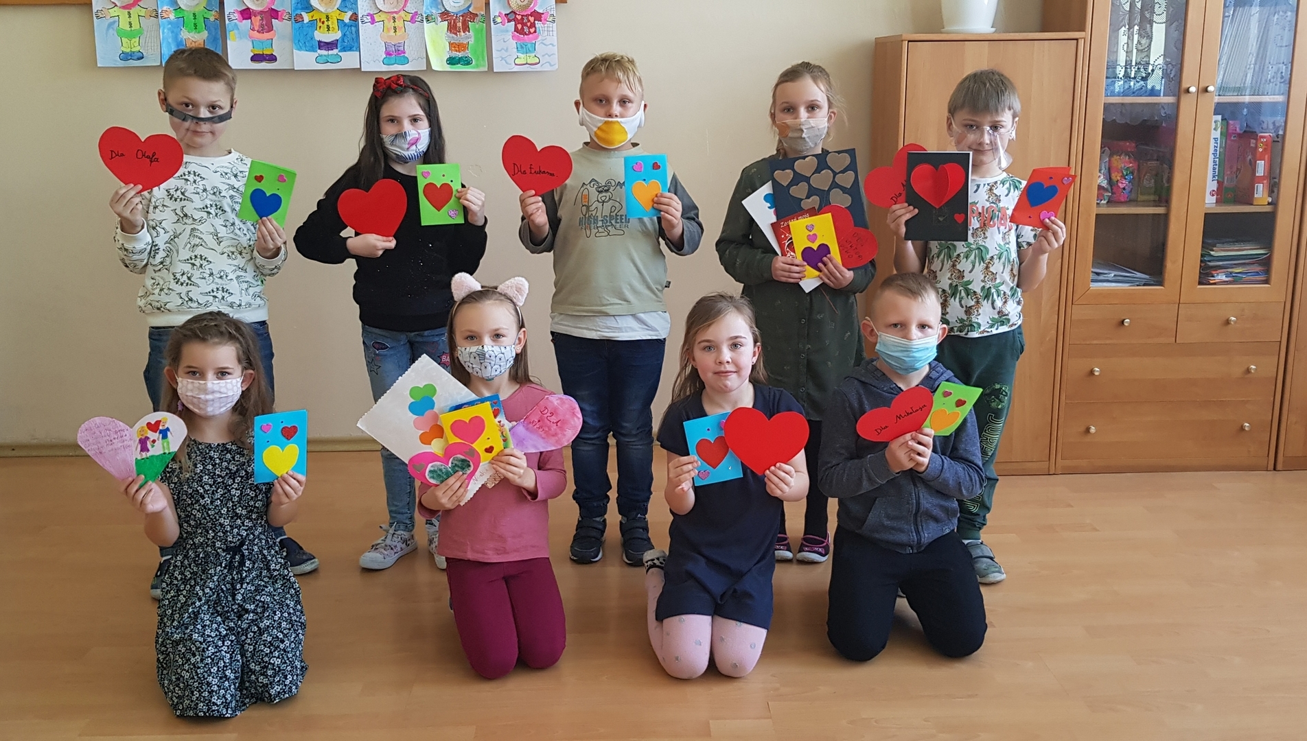 Walentynki – święto miłości, życzliwości i sympatii. W tym roku obchodzone przez uczniów z klas I-III, jak również z oddziałów przedszkolnych. Taki dzień jest wspaniałą okazją do integracji i zawiązywania przyjaźni. Tworzenie walentynkowych kartek, wręczanie ich, przygotowywanie czekoladowych ciasteczek czy zabawy z sercami i emocjami w tle niosą ze sobą pozytywne przesłanie. Miłe słowa i gesty zawsze poprawiają humor i pomagają w relacjach międzyludzkich. Tego dnia nie zabrakło również wyrazów sympatii pod adresem swoich wychowawców i laurek wesołej treści, takich jak: „Na górze róże, na dole fiołki, nasza pani uczy aniołki” Niech Dzień Świętego Walentego inspiruje do okazywania sympatii i pozytywnych emocji każdego dnia.