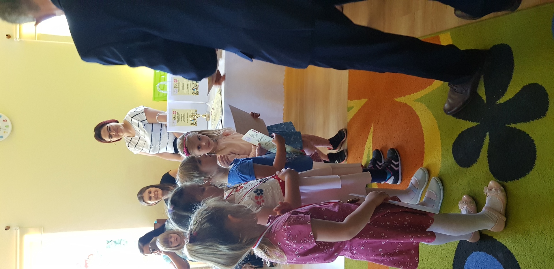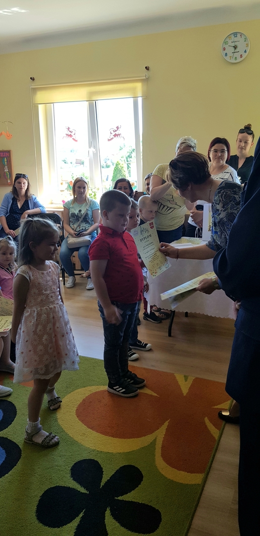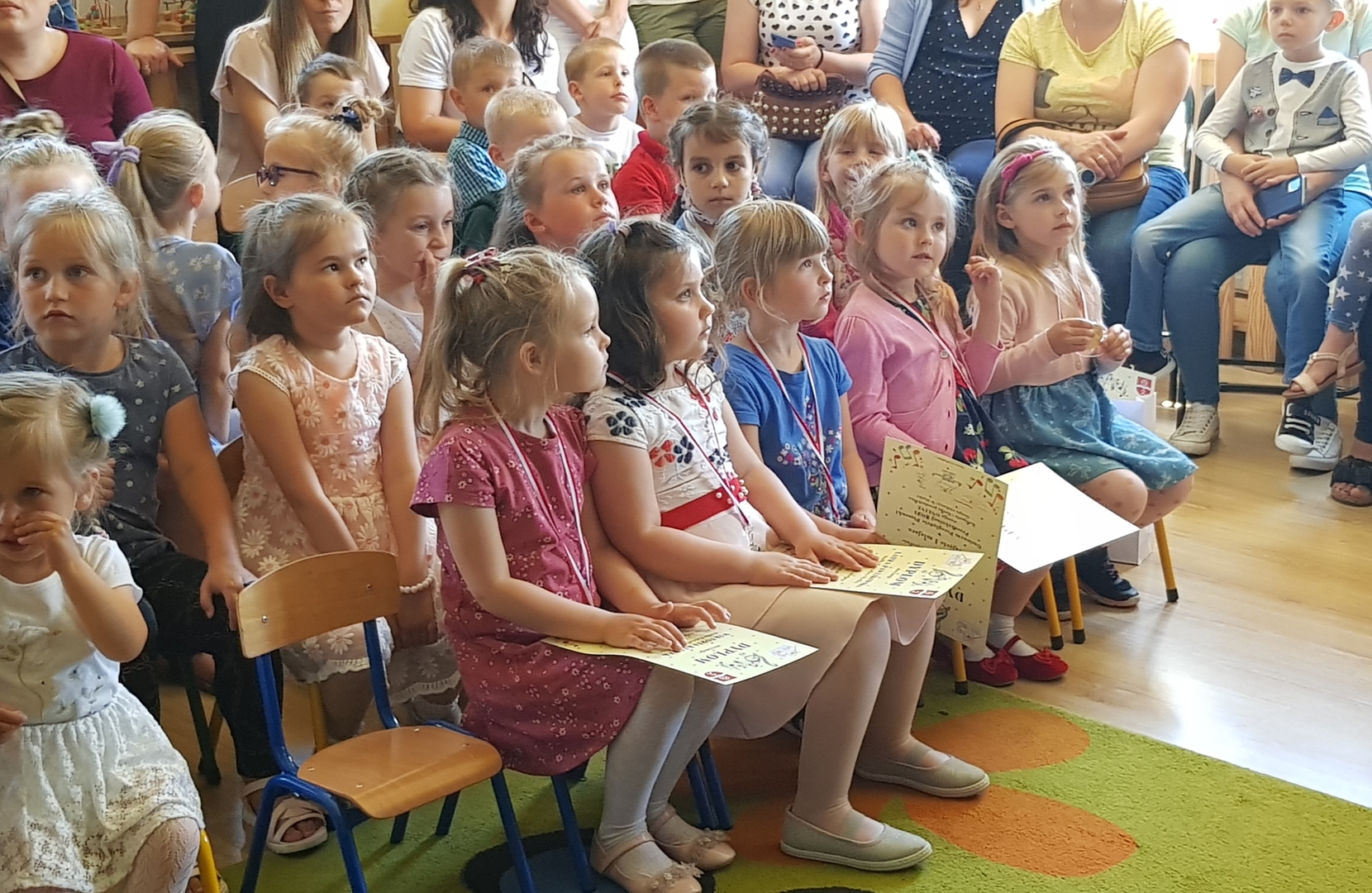 Nasze przedszkolaki wywoływały uśmiechy na twarzach podczas całej uroczystości. Było to dla nich na pewno ważne wydarzenie, co uwidoczniła nieśmiałość, a zarazem wdzięk podczas obierania dyplomów, nagród oraz pamiątkowych statuetek i medali. Dla rodziców i opiekunów był to natomiast czas, który dostarczył wiele radości i powodów do dumy.