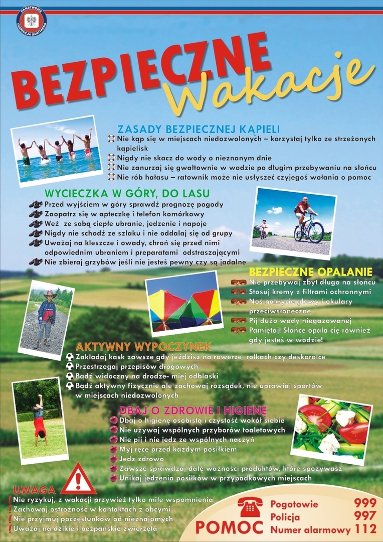 Okres wakacyjny jest szczególnym czasem dla całej rodziny. Wielu wyjeżdża na urlop spędzając czas nad wodą, w górach czy w lesie. Część dzieci i młodzieży spędzając wakacje w domu wypełnia sobie czas zabawą w jego okolicy. Towarzyszące wypoczynkowi odprężenie sprawia jednak, że niejednokrotnie zapominamy o podstawowych zasadach bezpieczeństwa. Chcąc uniknąć zagrożeń wakacyjnych, w naszej szkole przeprowadzono wiele rozmów z uczniami, zrealizowano szereg scenariuszy dotyczących bezpieczeństwa z wykorzystaniem m.in. filmów i plansz edukacyjnych oraz rozwiązując quizy tematyczne.
