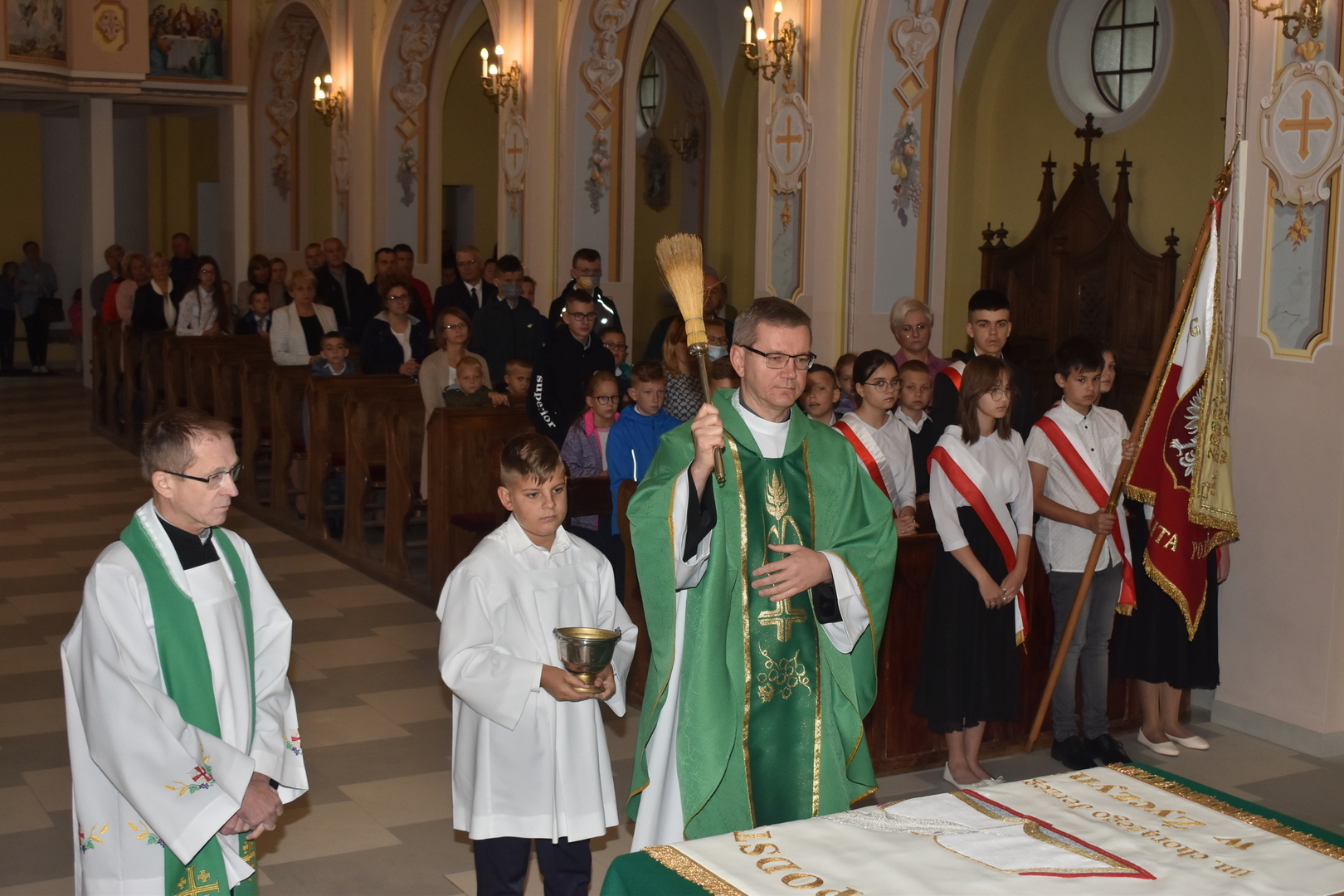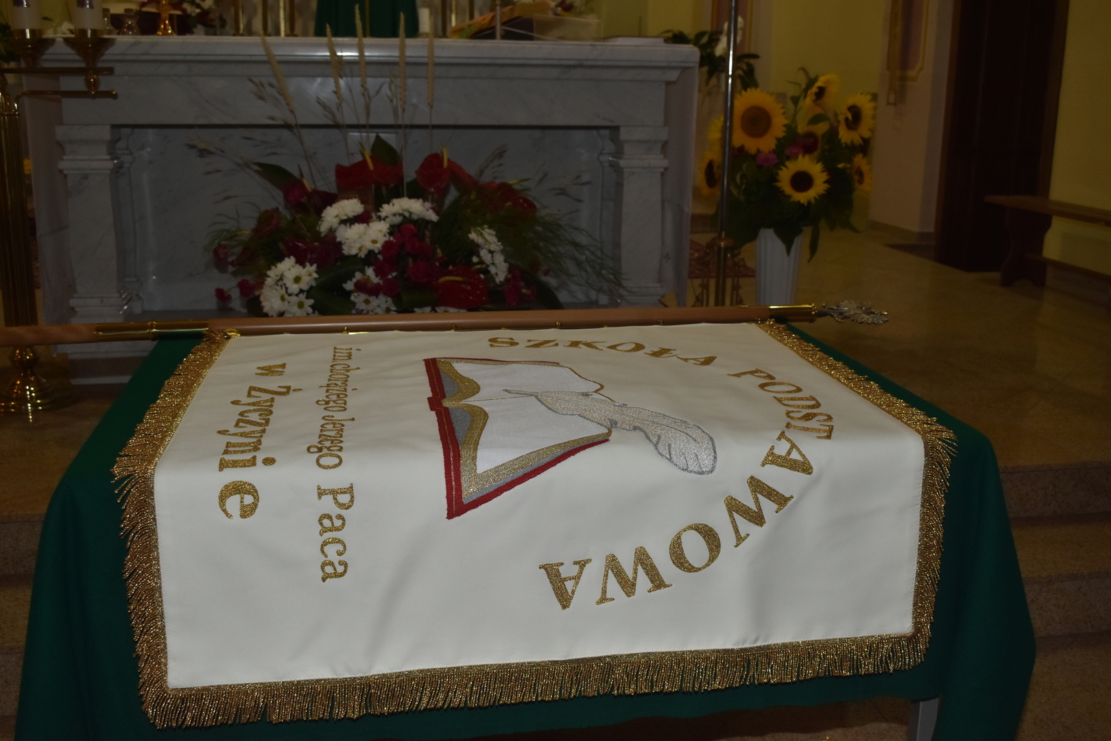 Pierwszy wrzesień to dzień szczególny i uroczysty - inauguracja nowego roku szkolnego 2021/2022. Dzień rozpoczął się Mszą świętą w kościele parafialnym pw. NMP Królowej Polski w Życzynie. W tym roku miała jednak wyjątkowy charakter, gdyż dokonano poświęcenia nowego sztandaru Szkoły Podstawowej im. chor. J. Paca w Życzynie.