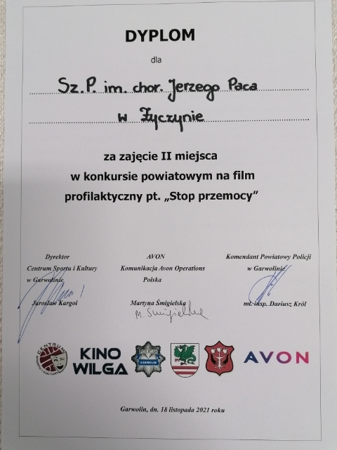 - Szkoła Podstawowa im. chor. Jerzego Paca w Życzynie - II miejsce