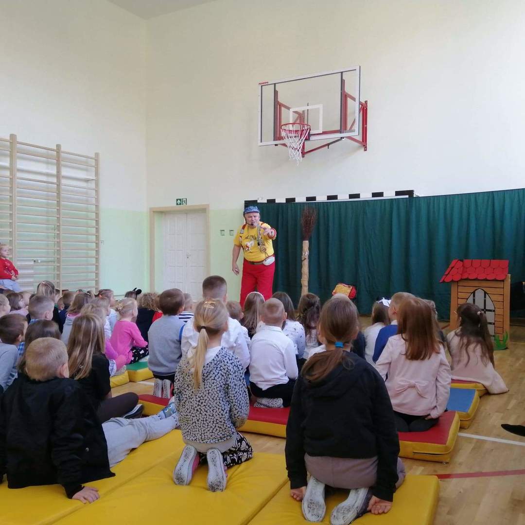 W dniu 06.10.2022r. przedszkolaki i dzieci z klas I – III miały przyjemność obejrzeć przedstawienie pt. „Przygody Koziołka Matołka”. Tytułowy bohater to zabawna postać, z którą zwiedza się świat w poszukiwaniu Pacanowa. Odwiedza on różne miejsca i przeżywa niezwykle pouczające przygody. W czasie wędrówki wpada w różne tarapaty i mierzy się z własnymi słabościami. Mimo to, nie opuszcza go optymizm i poczucie humoru. Koziołek potrafi zamienić swoje kłopoty w zabawę, a zarazem uczy, że wytrwałość i chęć zdobywania wiedzy pomaga w osiągnięciu celu.