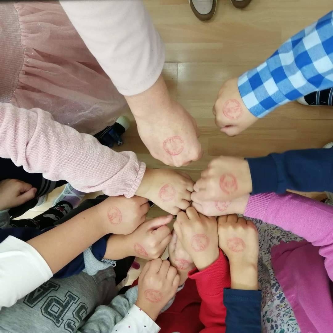 Dzieci poznały polskie przysłowia o kozach. Na koniec dołączyły do Klubu Koziołka Matołka, otrzymując pieczątki stawiane na ręce.