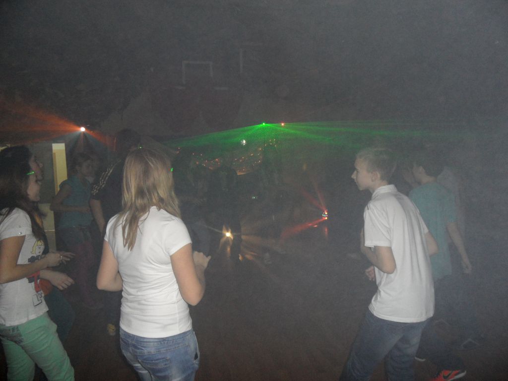W związku z tym 27 listopada odbyła się w naszej szkole dyskoteka. Oprawę muzyczną zapewnił DJ Technics. Na początku bawiły się głównie dzieci ze szkoły podstawowej, ale później dołączyła także młodzież gimnazjalna. Wszyscy doskonale się bawili i miło wspominają ten wieczór.