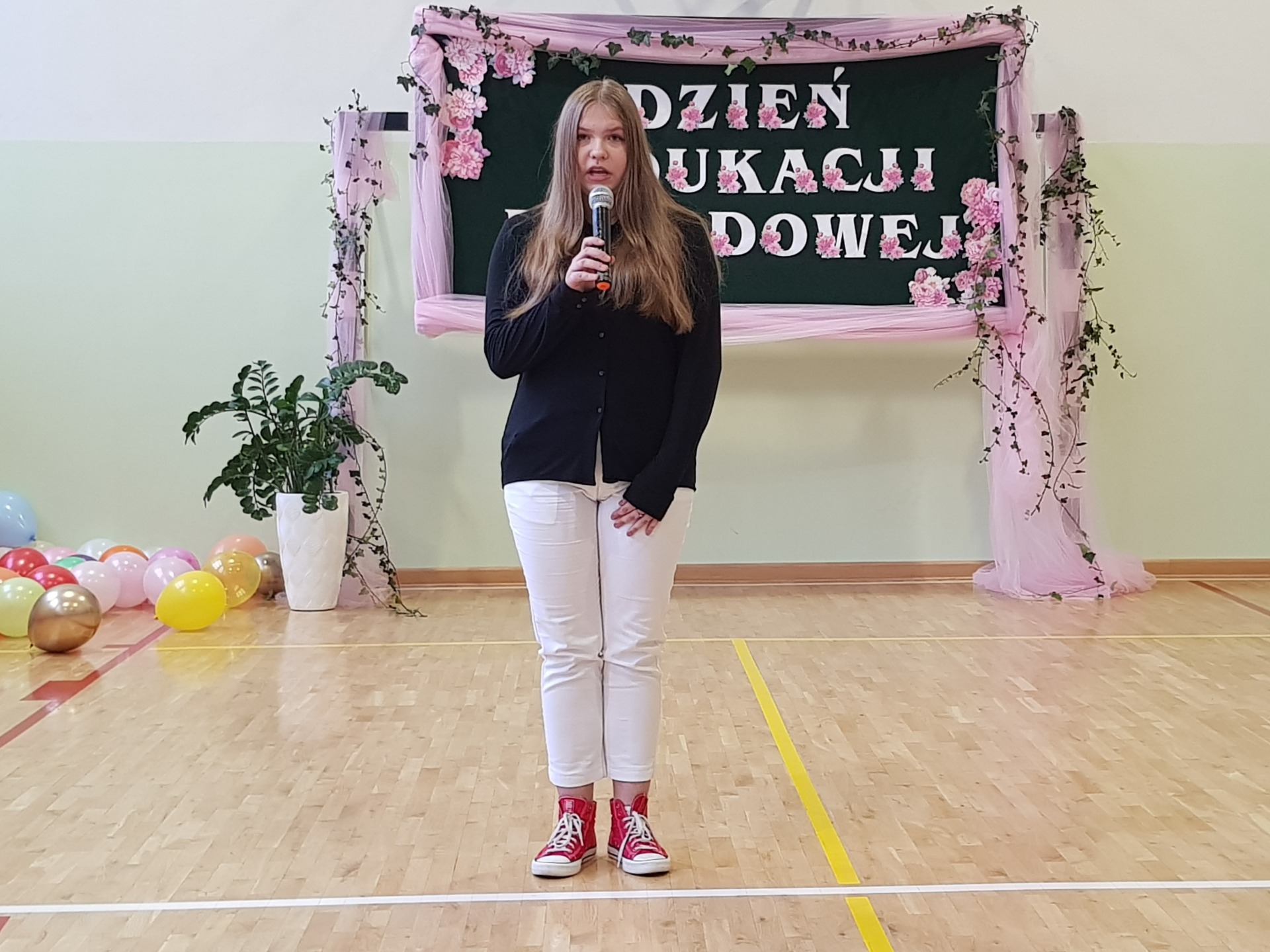 Dyrektor szkoły Anna Łysiak życzyła wszystkim pracownikom sukcesów zawodowych oraz radości z wykonywanej pracy, dziękując jednocześnie uczniom i nauczycielom zaangażowanym w organizację pięknej uroczystości.