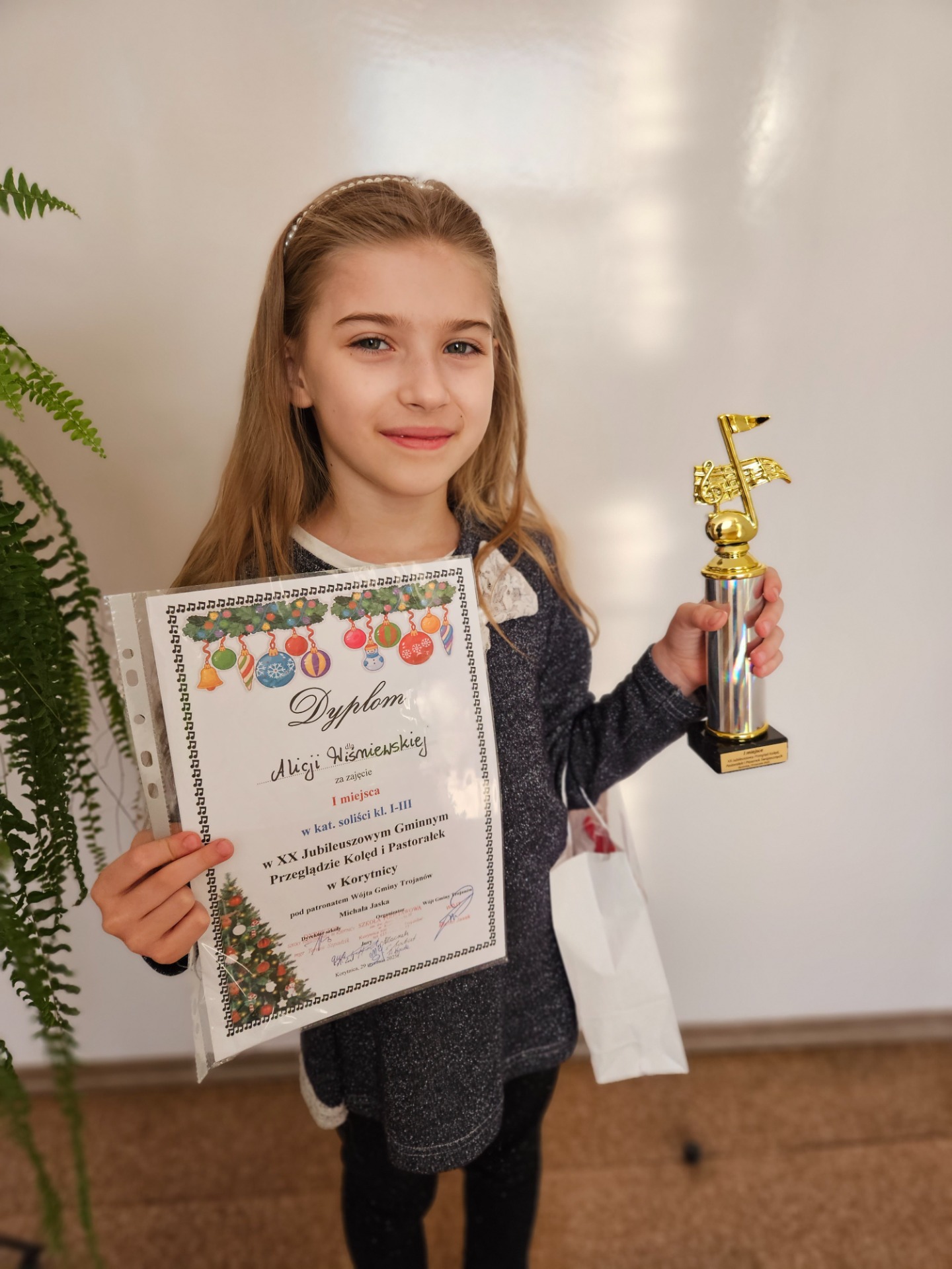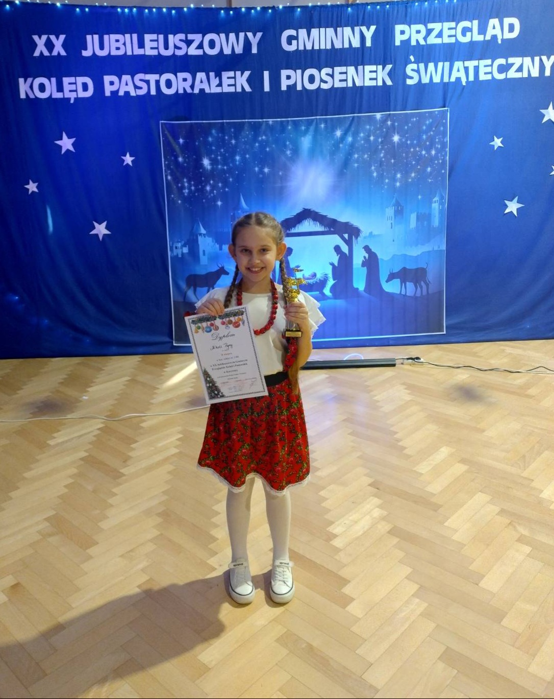 W dniu 29.01.2025 r. odbył się XX Jubileuszowy Gminny Przegląd kolęd, pastorałek i piosenek świątecznych w Korytnicy. Na konkursie zaprezentowali się uczniowie szkół z całej Gminy Trojanów. Szkołę w Życzynie reprezentowały: Aleksandra Głowienka, Nina Krzyzińska, Nikola Pyra i Alicja Wiśniewska. Wróciliśmy z dwoma miejscami na podium:
