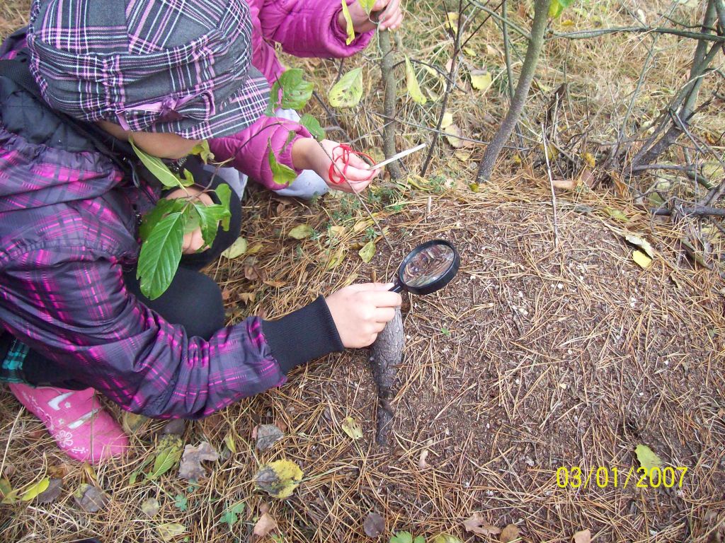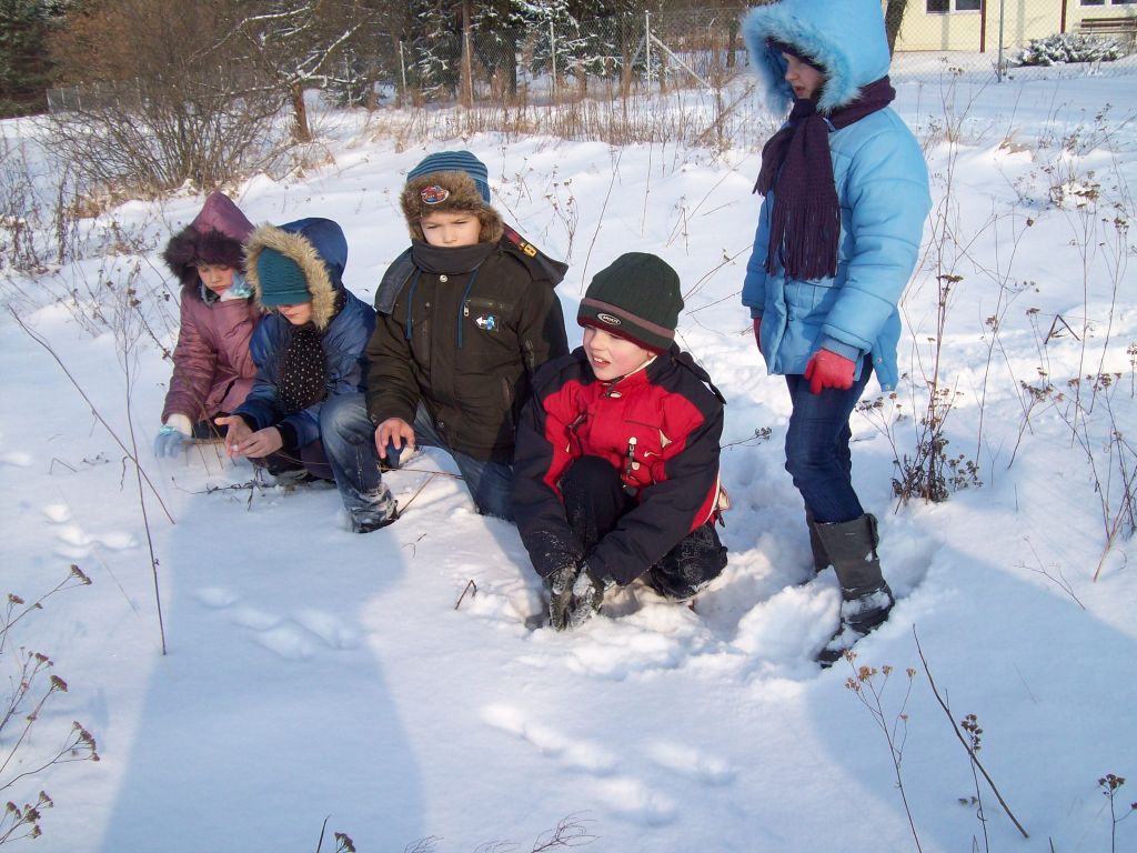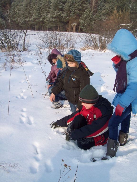 w ćwiczeniach terenowych oraz w zajęciach w izbie przyrodniczo - leśnej. Po realizacji tych działań przygotowali raport ukazujący zmiany zachodzące w lesie w ciągu trzech pór roku (jesieni, zimy i wiosny).