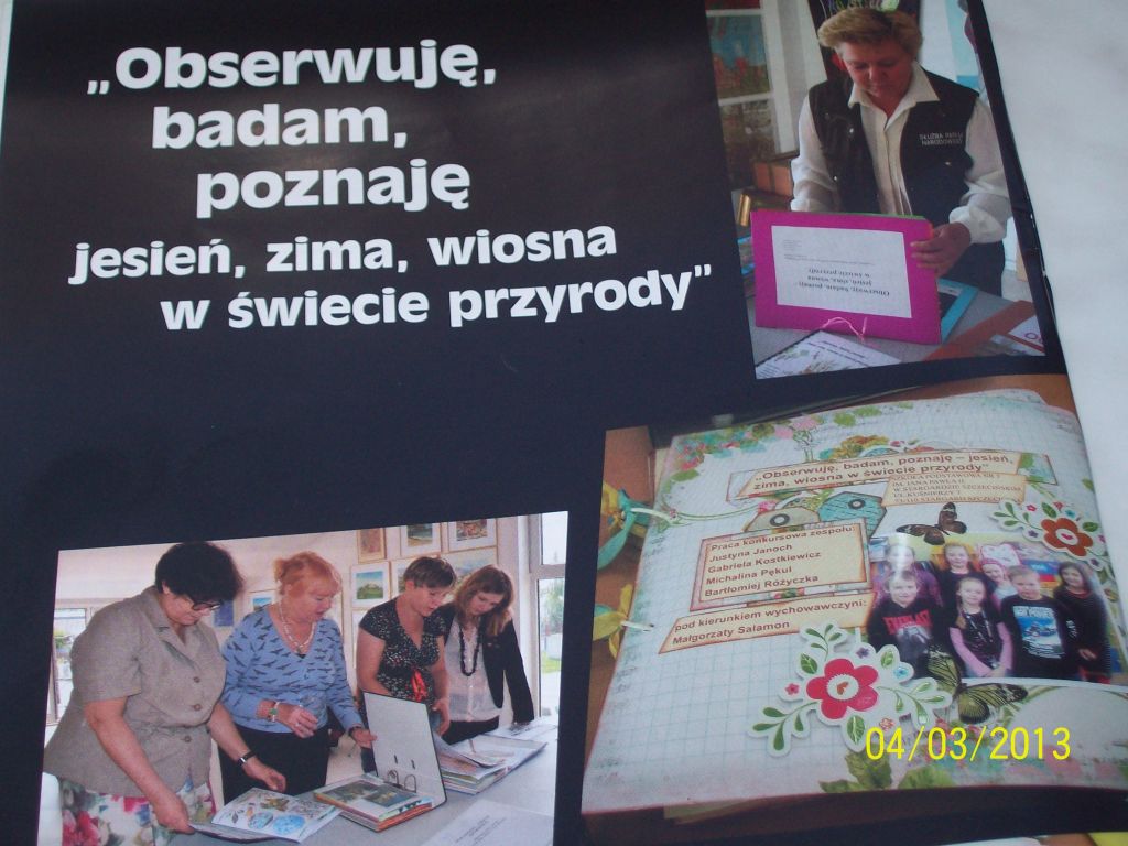 Uczniowie klasy III szkoły podstawowej zajęli I miejsce w Ogólnopolskim konkursie przyrodniczym "Obserwuję, badam, poznaję jesień, zimę, wiosnę w świecie przyrody" w kategorii klasy 0 - III. Konkurs został rozstrzygniętu już w czerwcu ubiegłego roku, a informacja ta została opublikowana w marcowym wydaniu czasopisma "Poznajmy las". Opracowane materiały ukażą się w późniejszych numerach czasopisma. Informacje te można śledzić również w wydaniu elektronicznym na www.poznajmylas.com.pl