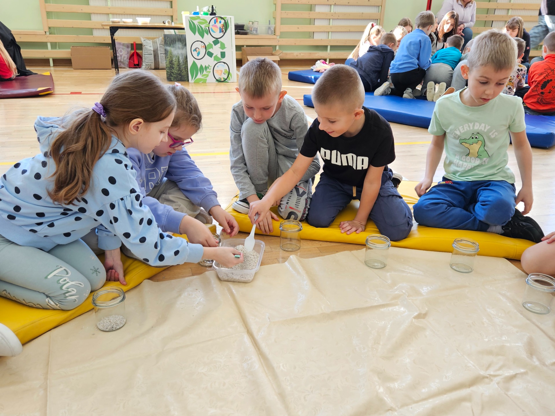 W dniu 20 marca br. w naszej szkole odbyły się warsztaty ekologiczne „Ratujmy lasy” przeprowadzone przez IMAGO GROUP. Podczas prelekcji przybliżone zostały tematy ochrony środowiska, ekologii i segregacji śmieci. Dzieci odpowiadały na pytania czym jest las, jakie żyją w nim zwierzęta, w jaki sposób las służy człowiekowi, na co ma wpływ i jak go chronić. Dodatkowo uczniowie podczas spotkania tworzyli własną mini łąkę leśną w szkle. Każdy w otrzymanym słoiku układał odpowiednie warstwy: perlitu, ziemi, nasion kwiatów i traw, a na koniec keramzytu. Teraz należy odpowiednio podlewać i dbać o swoją kompozycję, a za jakiś czas odwdzięczy się kolorami i zapachami wiosennej leśnej łąki. 😊