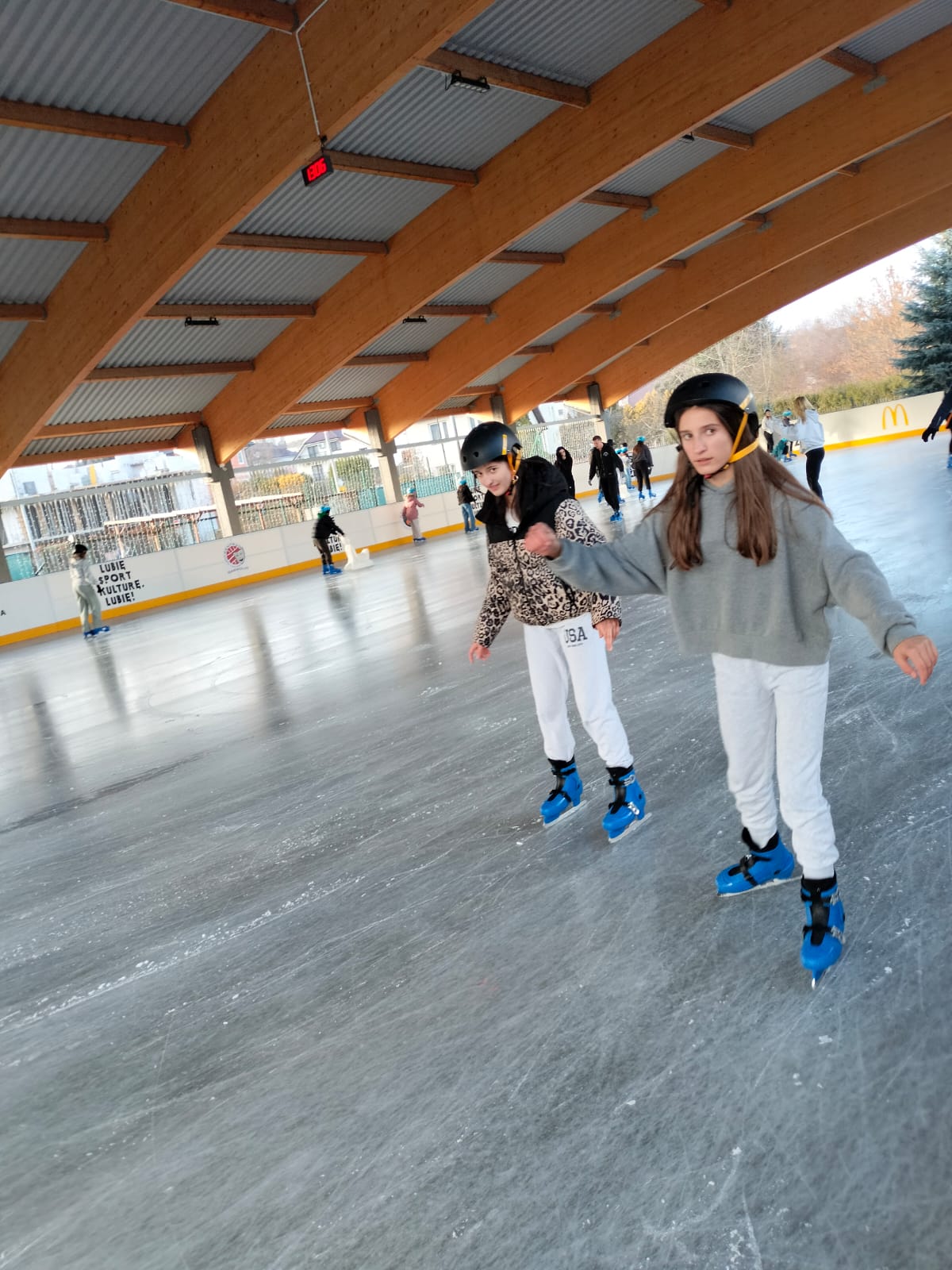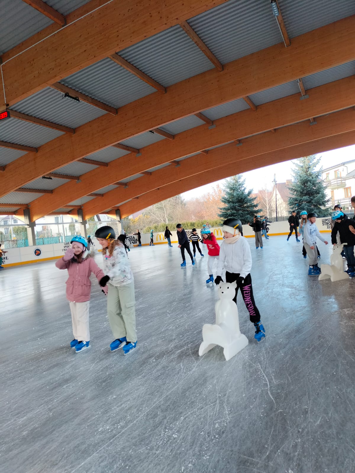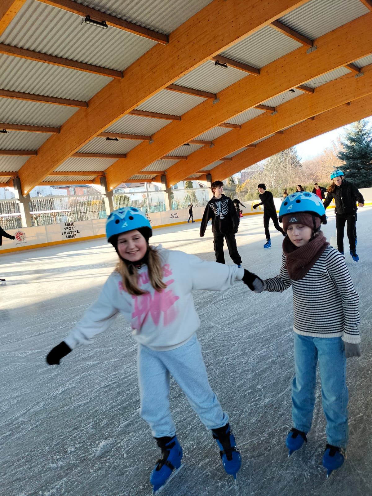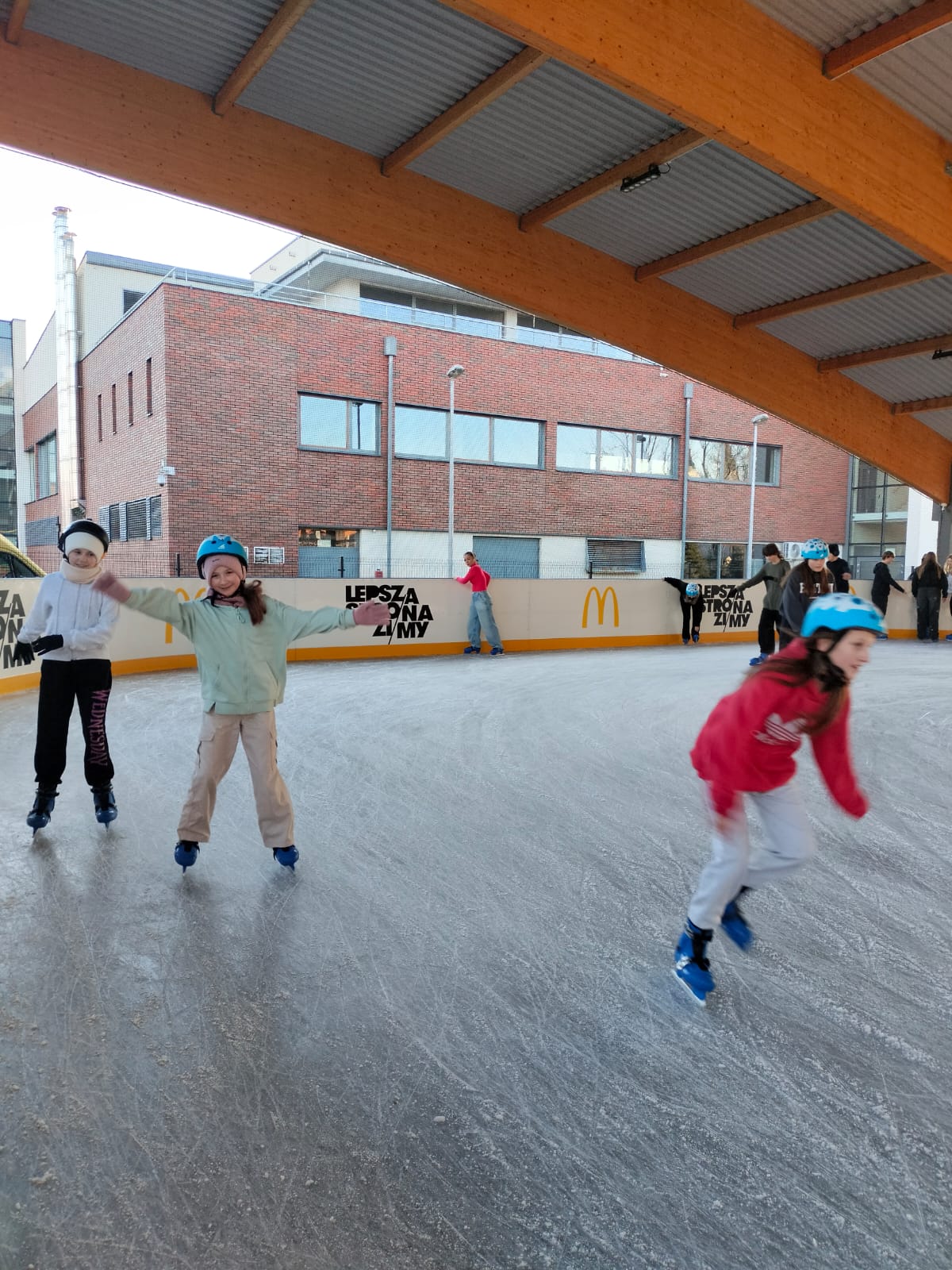W dniu 02.12.2024 r. klasy IV-VII wybrały się na wycieczkę do Garwolina. Pierwszym punktem programu było kino, gdzie uczniowie obejrzeli film animowany pt. "Vaiana 2". Następnie grupa wraz z opiekunami odwiedziła lodowisko CSiK, gdzie z wielką radością doskonaliła swe umiejętności jazdy na łyżwach. Niektórzy pierwszy raz mieli szansę sprawdzenia swoich możliwości, więc preferowali głównie towarzystwo "pingwinków"do nauki jazdy. Wizyta na lodowisku była dla wszystkich wspaniałą zabawą. Na koniec, zadowoleni, ale również nieco zmęczeni po szaleństwach na tafli lodu i głodni, wstąpiliśmy do McDonald's, gdzie każdy uczestnik wycieczki mógł zakupić sobie swój ulubiony zestaw. Najedzeni i pełni pozytywnych wrażeń, w dobrych humorach, wróciliśmy do domu.