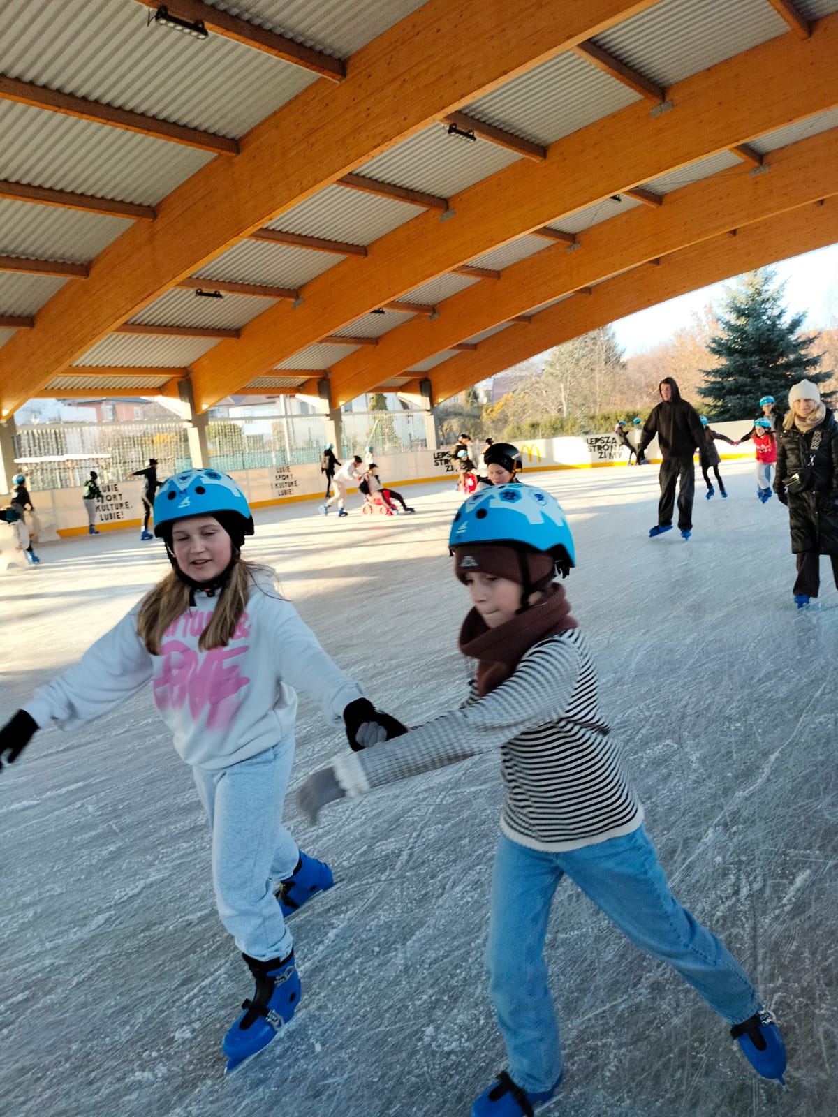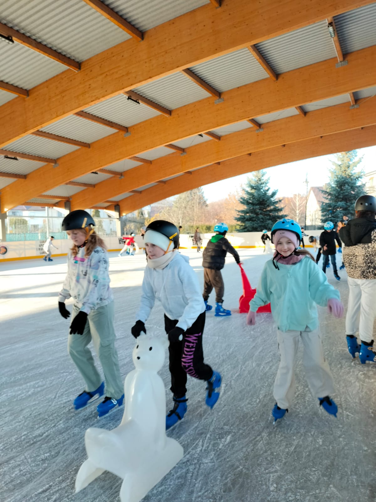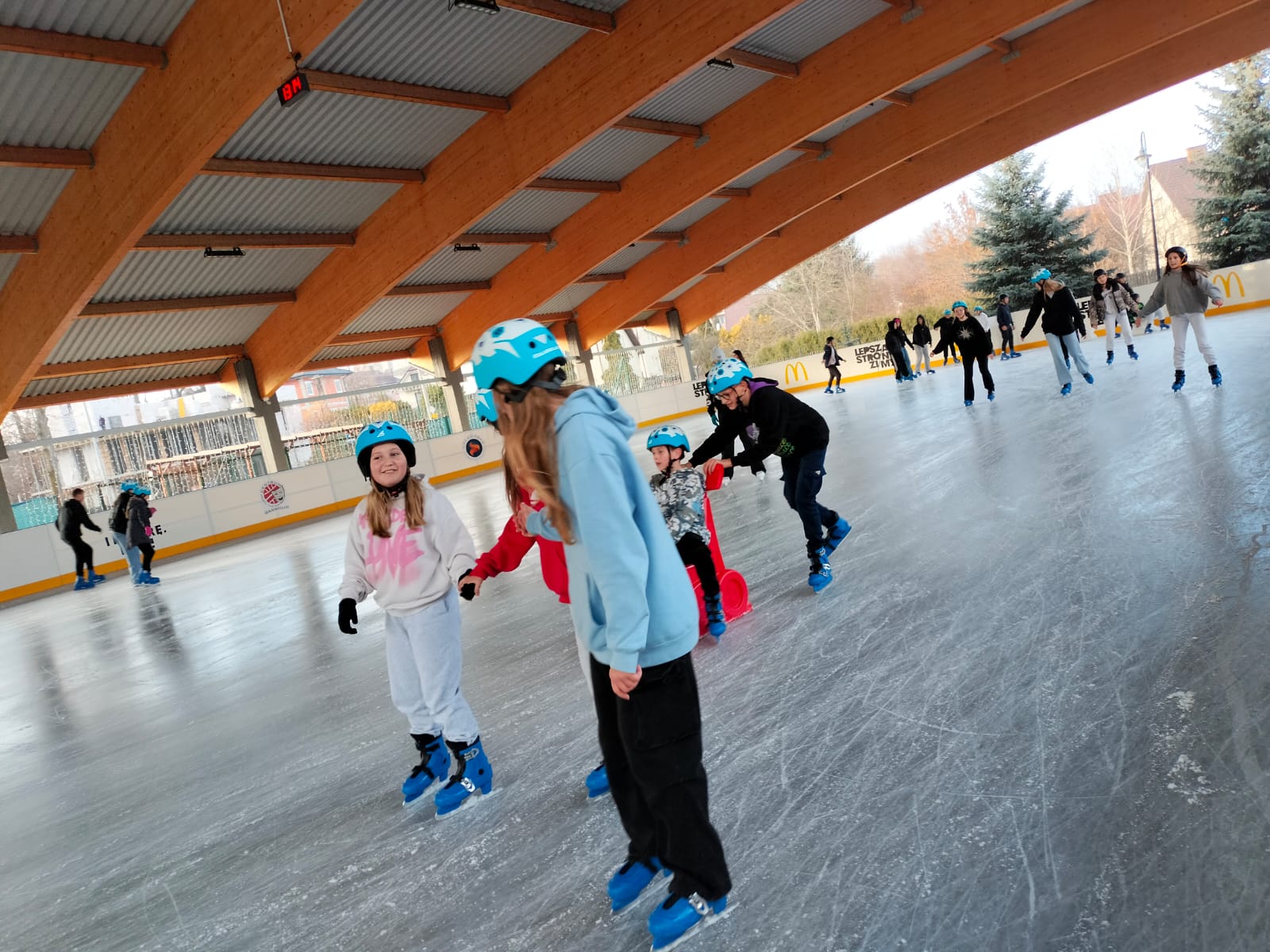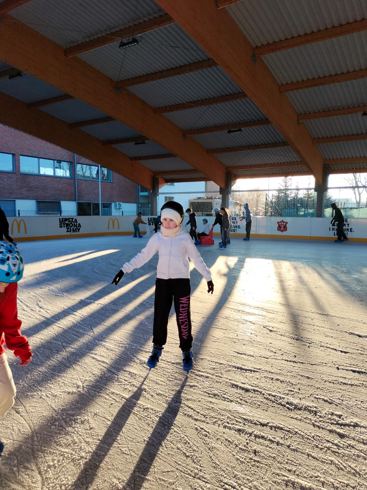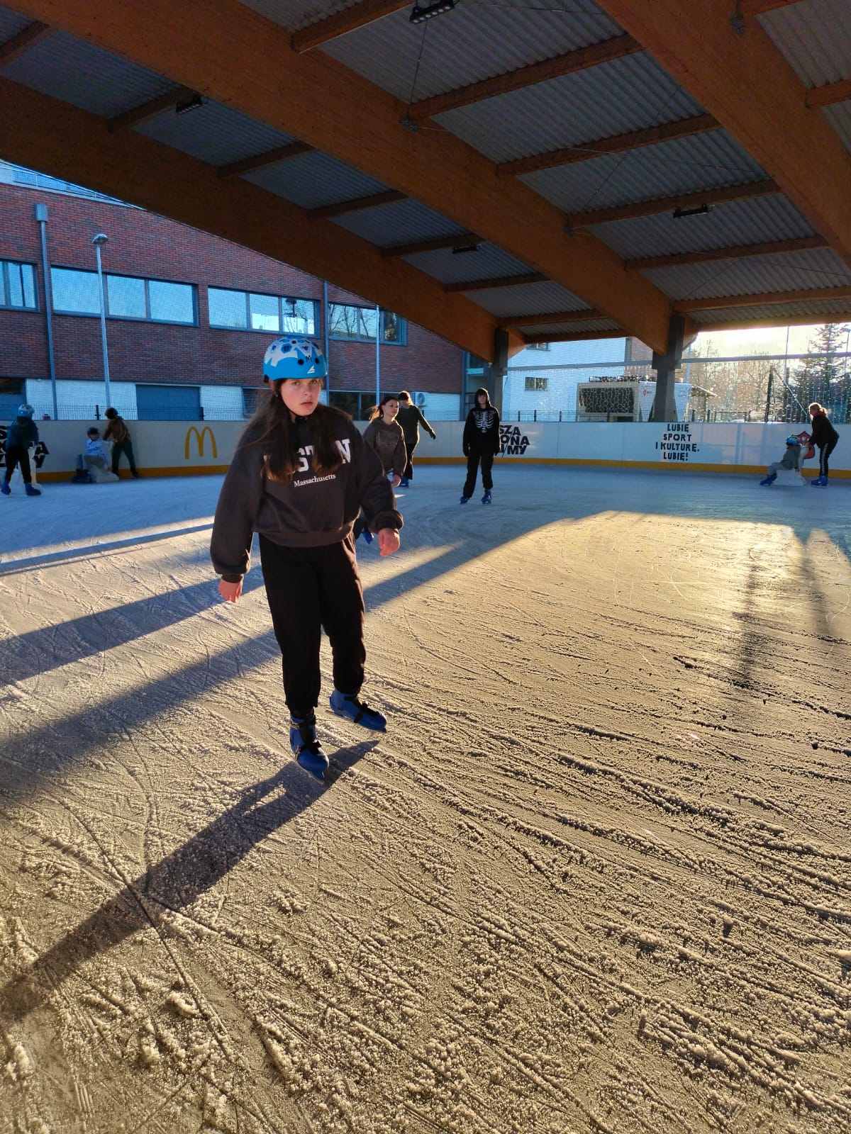 W dniu 02.12.2024 r. klasy IV-VII wybrały się na wycieczkę do Garwolina. Pierwszym punktem programu było kino, gdzie uczniowie obejrzeli film animowany pt. "Vaiana 2". Następnie grupa wraz z opiekunami odwiedziła lodowisko CSiK, gdzie z wielką radością doskonaliła swe umiejętności jazdy na łyżwach. Niektórzy pierwszy raz mieli szansę sprawdzenia swoich możliwości, więc preferowali głównie towarzystwo "pingwinków"do nauki jazdy. Wizyta na lodowisku była dla wszystkich wspaniałą zabawą. Na koniec, zadowoleni, ale również nieco zmęczeni po szaleństwach na tafli lodu i głodni, wstąpiliśmy do McDonald's, gdzie każdy uczestnik wycieczki mógł zakupić sobie swój ulubiony zestaw. Najedzeni i pełni pozytywnych wrażeń, w dobrych humorach, wróciliśmy do domu.