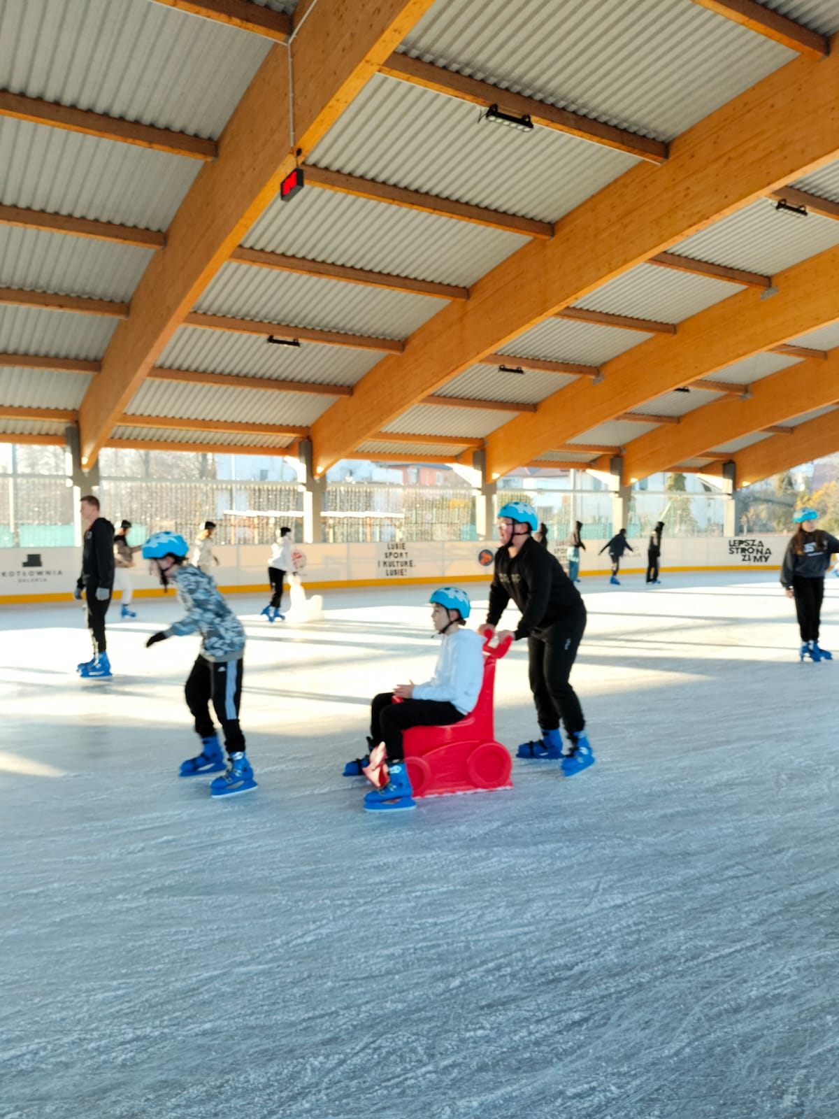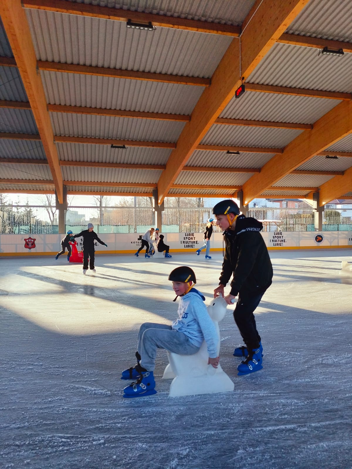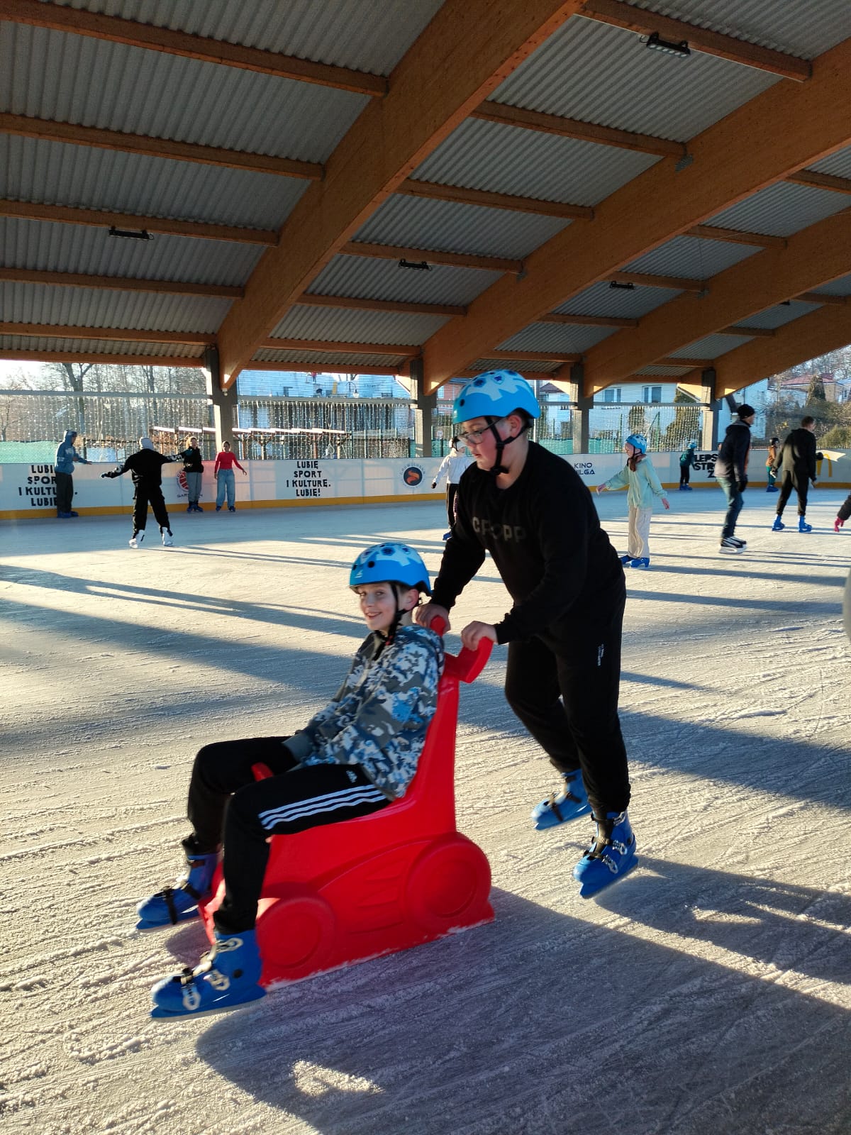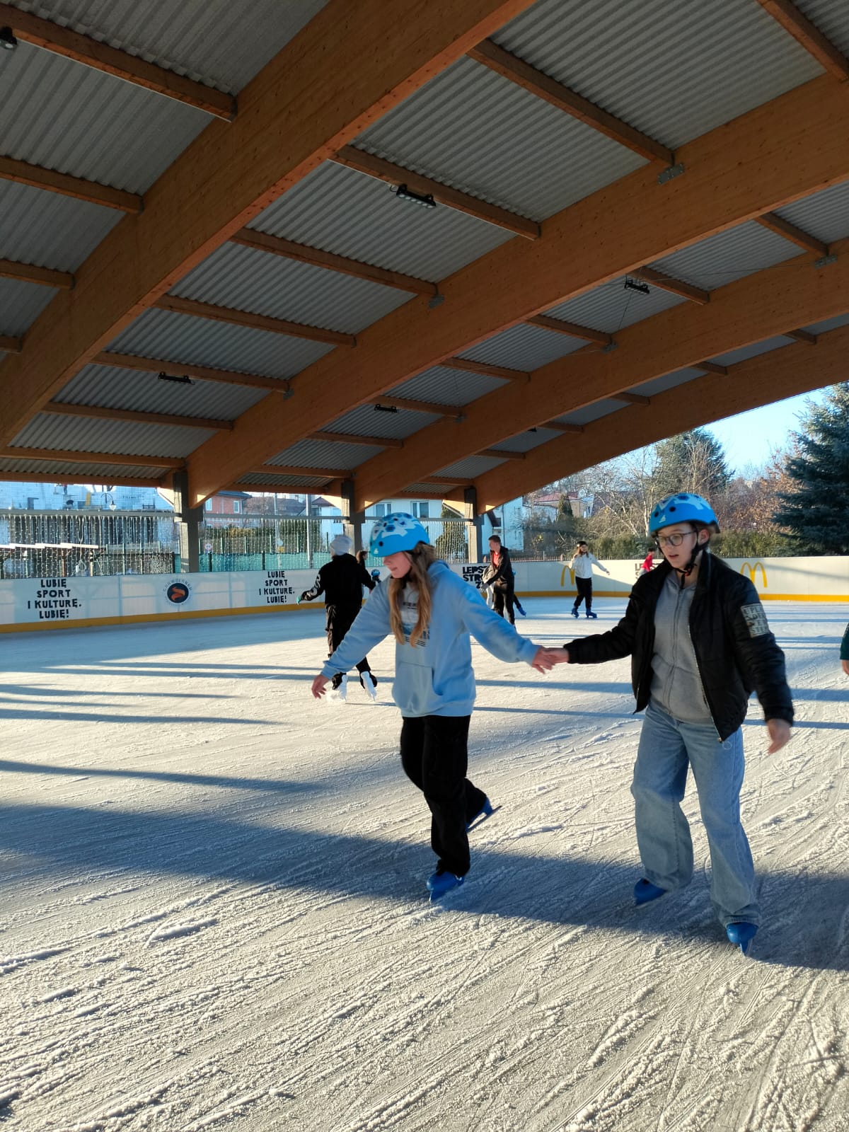 W dniu 02.12.2024 r. klasy IV-VII wybrały się na wycieczkę do Garwolina. Pierwszym punktem programu było kino, gdzie uczniowie obejrzeli film animowany pt. "Vaiana 2". Następnie grupa wraz z opiekunami odwiedziła lodowisko CSiK, gdzie z wielką radością doskonaliła swe umiejętności jazdy na łyżwach. Niektórzy pierwszy raz mieli szansę sprawdzenia swoich możliwości, więc preferowali głównie towarzystwo "pingwinków"do nauki jazdy. Wizyta na lodowisku była dla wszystkich wspaniałą zabawą. Na koniec, zadowoleni, ale również nieco zmęczeni po szaleństwach na tafli lodu i głodni, wstąpiliśmy do McDonald's, gdzie każdy uczestnik wycieczki mógł zakupić sobie swój ulubiony zestaw. Najedzeni i pełni pozytywnych wrażeń, w dobrych humorach, wróciliśmy do domu.