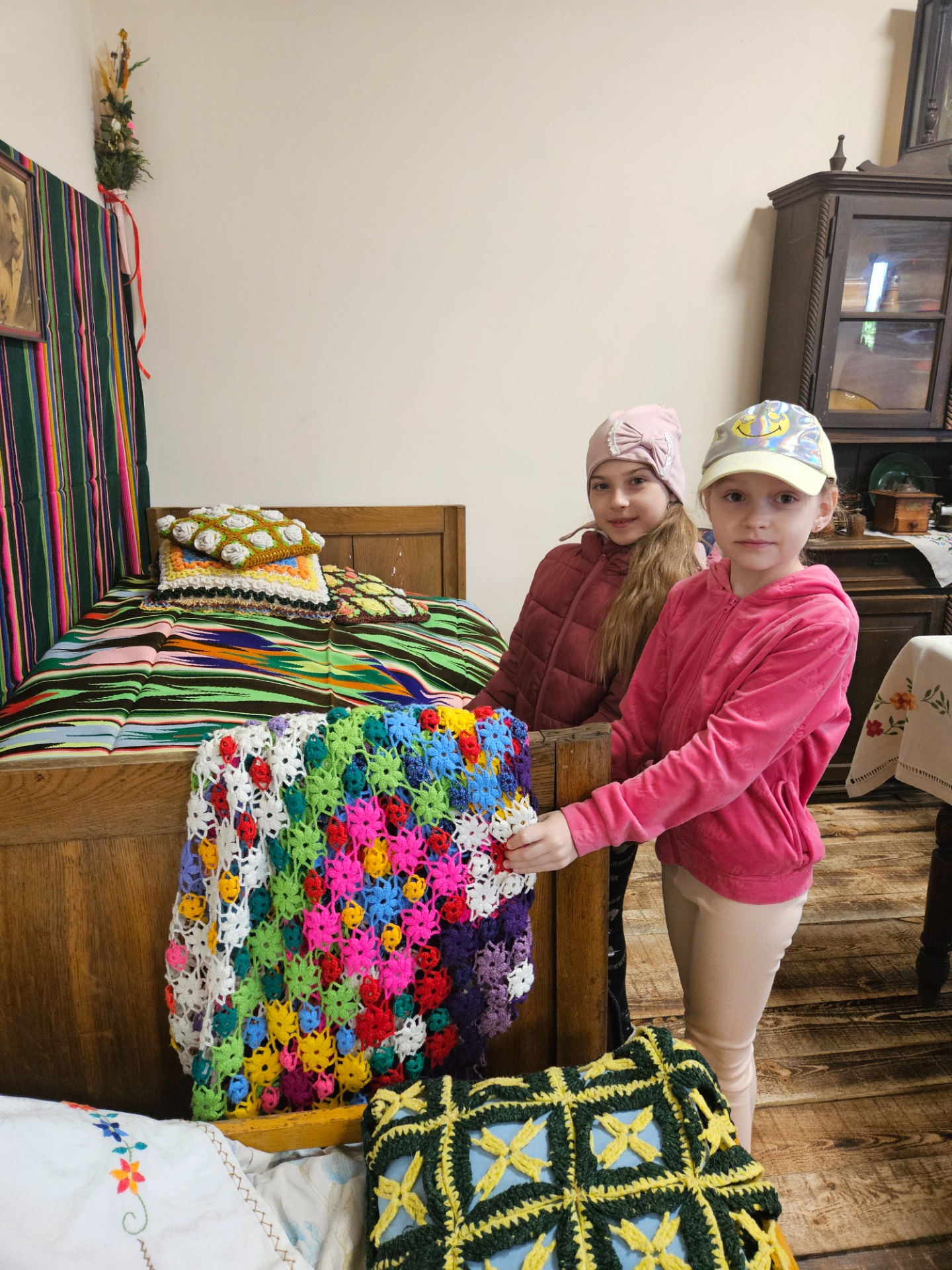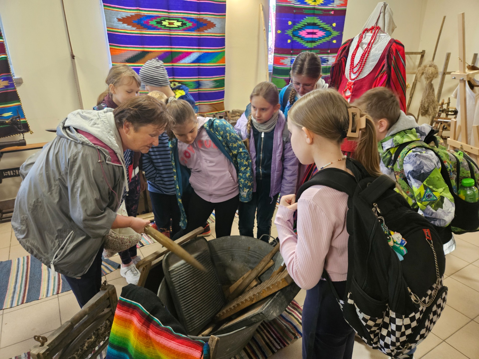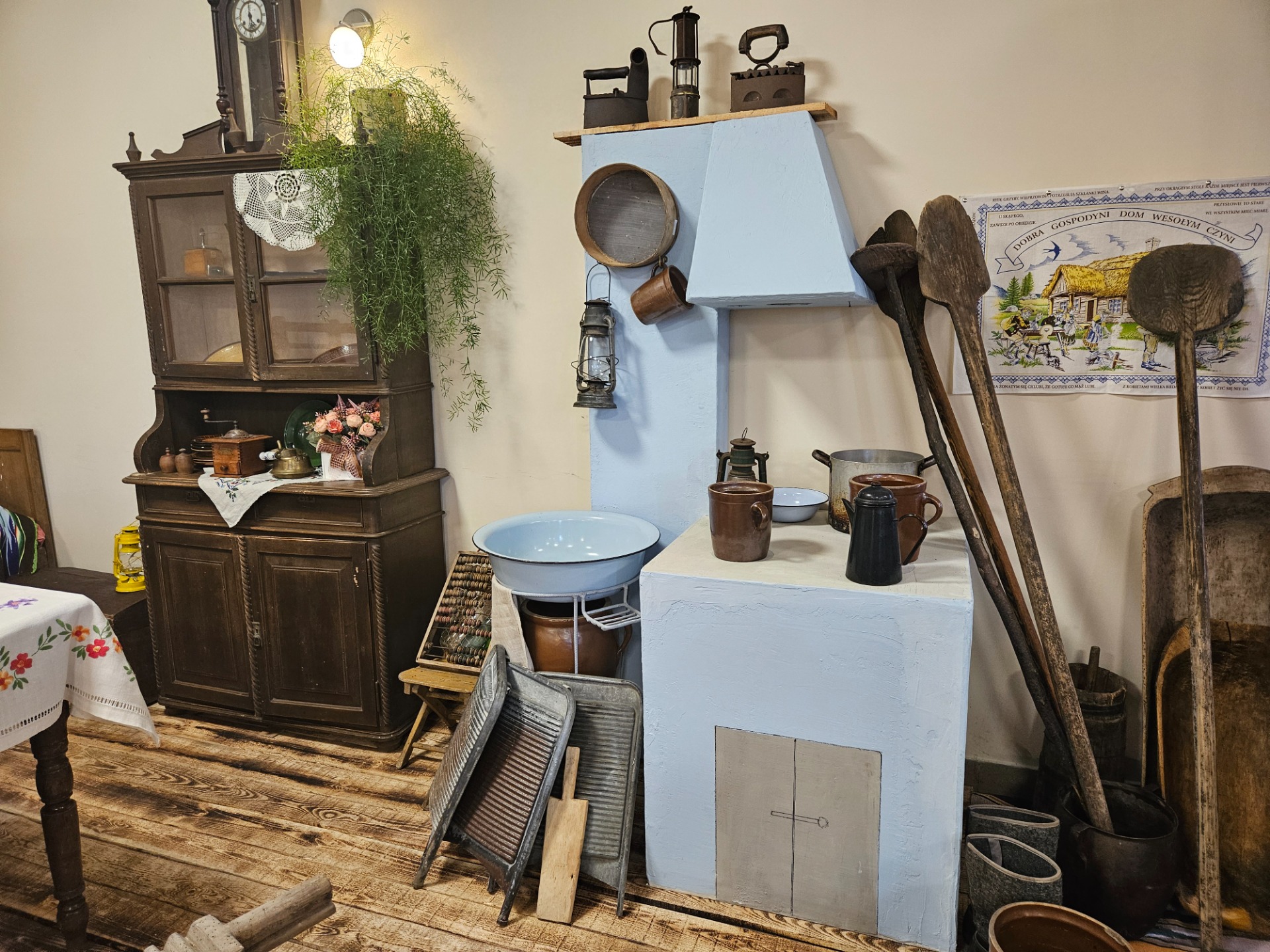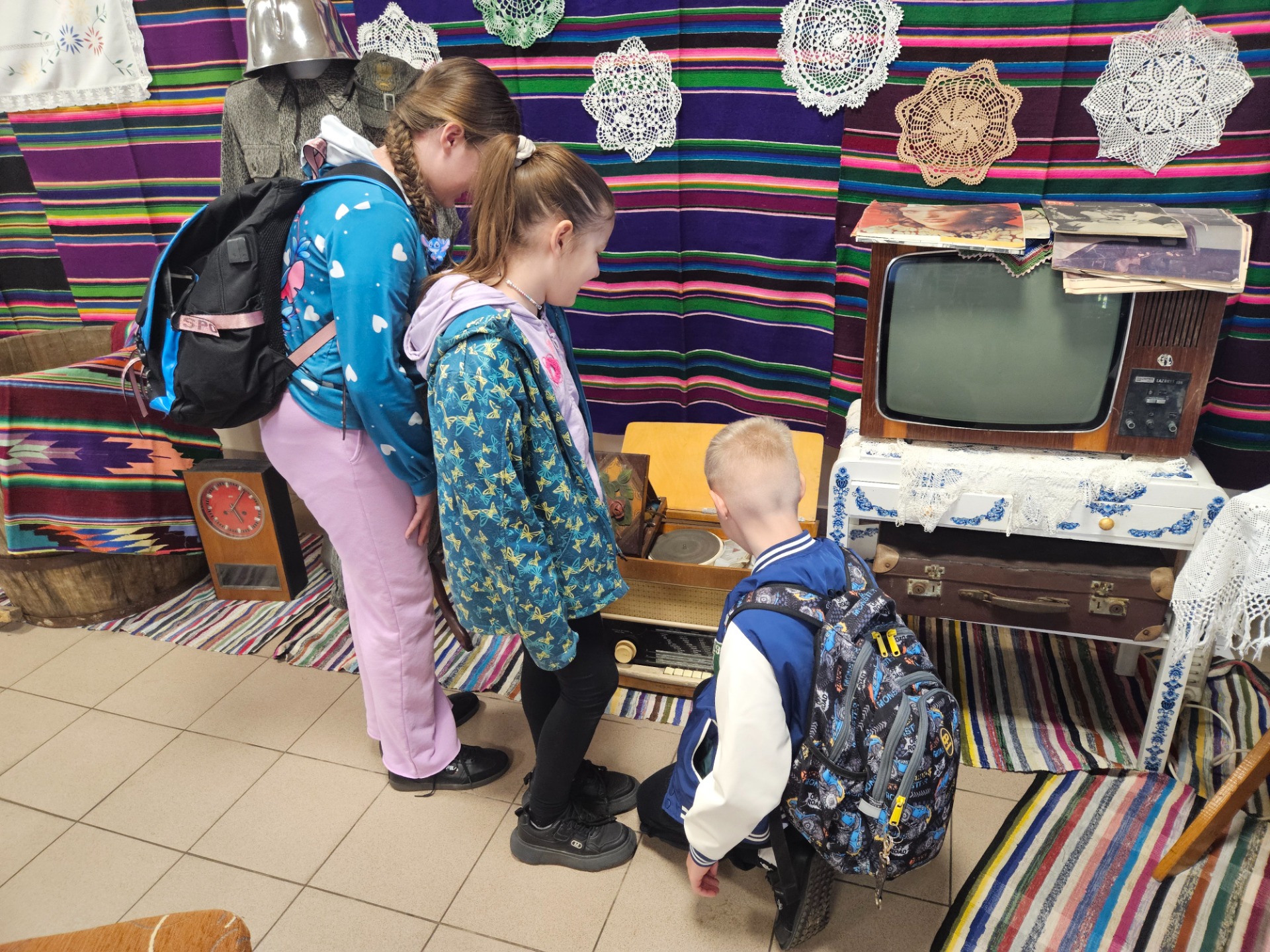 Z ogromnym zaciekawieniem oglądaliśmy dawne narzędzia i eksponaty, które pozwoliły nam lepiej zrozumieć życie naszych przodków. Wśród licznych eksponatów znalazły się elementy wyposażenia domowego, takie jak stare telewizory, radia, zestawy do golenia i mycia, a także tradycyjne meble. Duże wrażenie zrobiły na nas dawne stroje ludowe oraz narzędzia wykorzystywane w codziennym życiu na wsi.