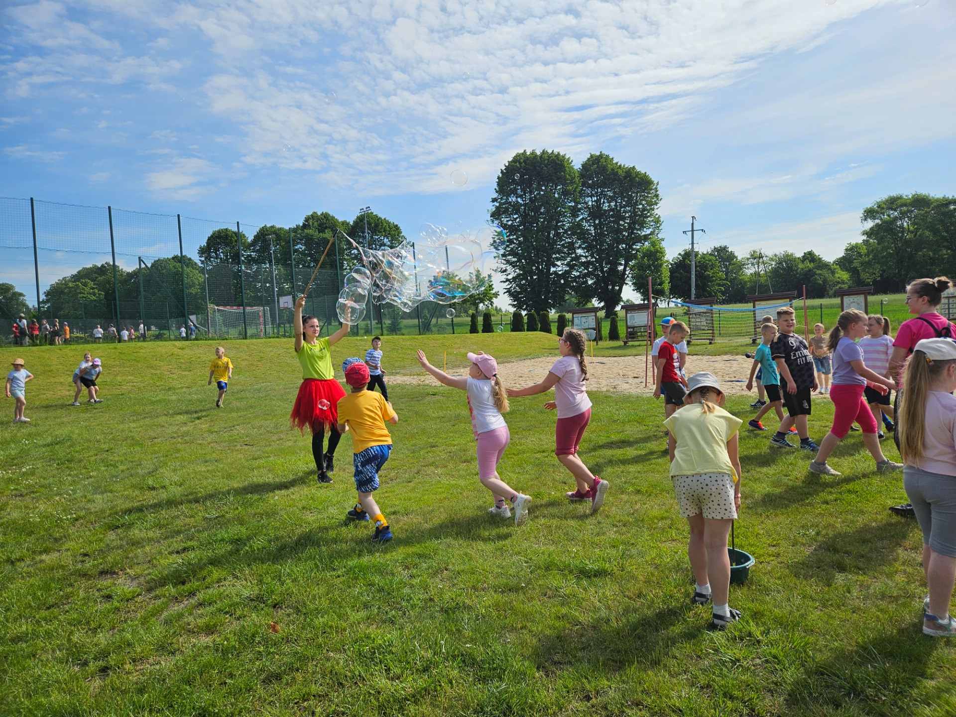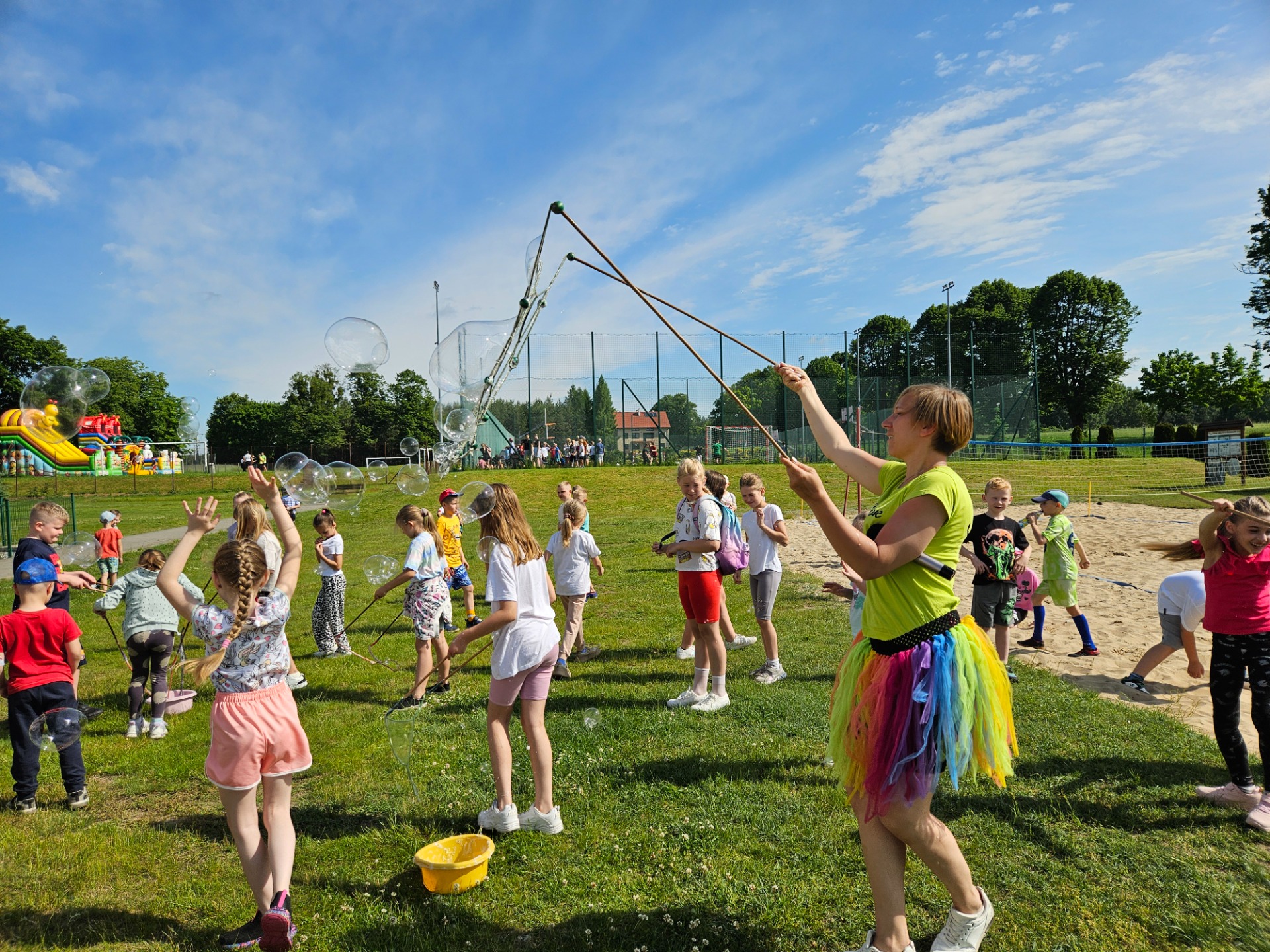 Należy koniecznie wspomnieć o kolorowych dmuchańcach, które nie miały sobie równych, piłce plażowej i tańcach integracyjnych.