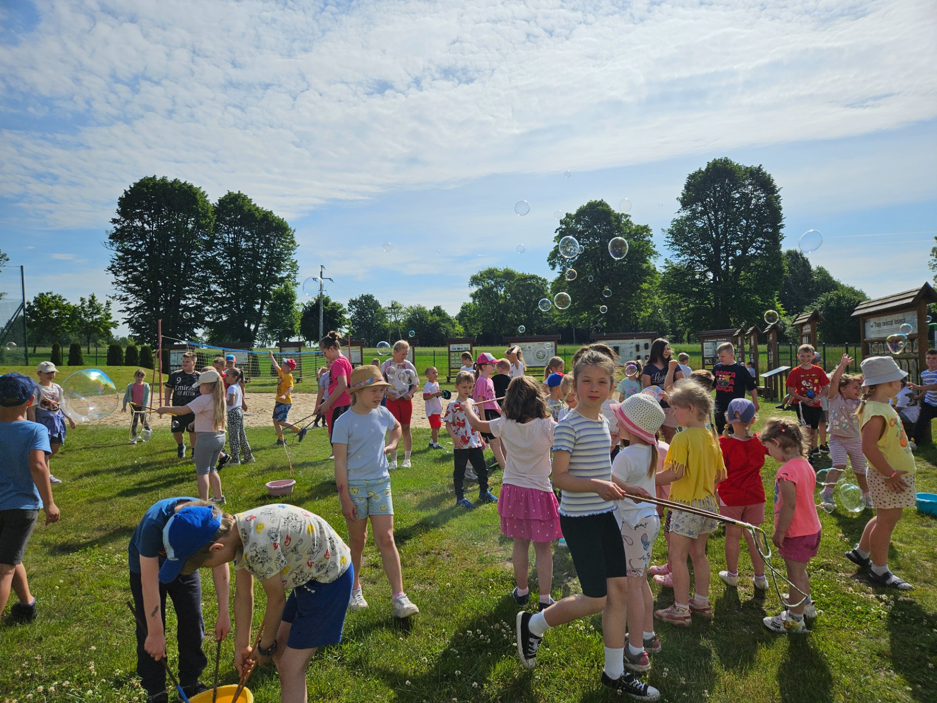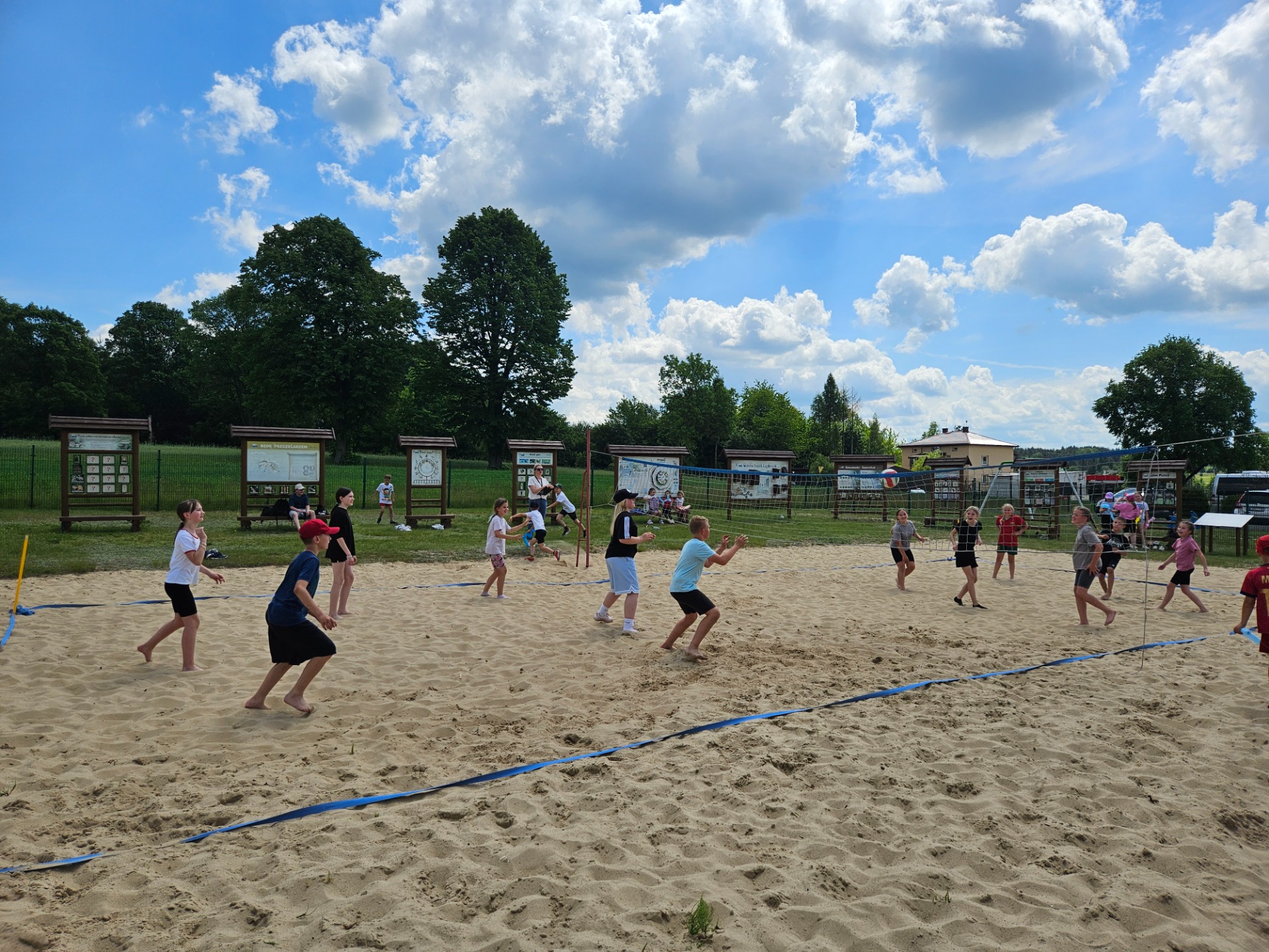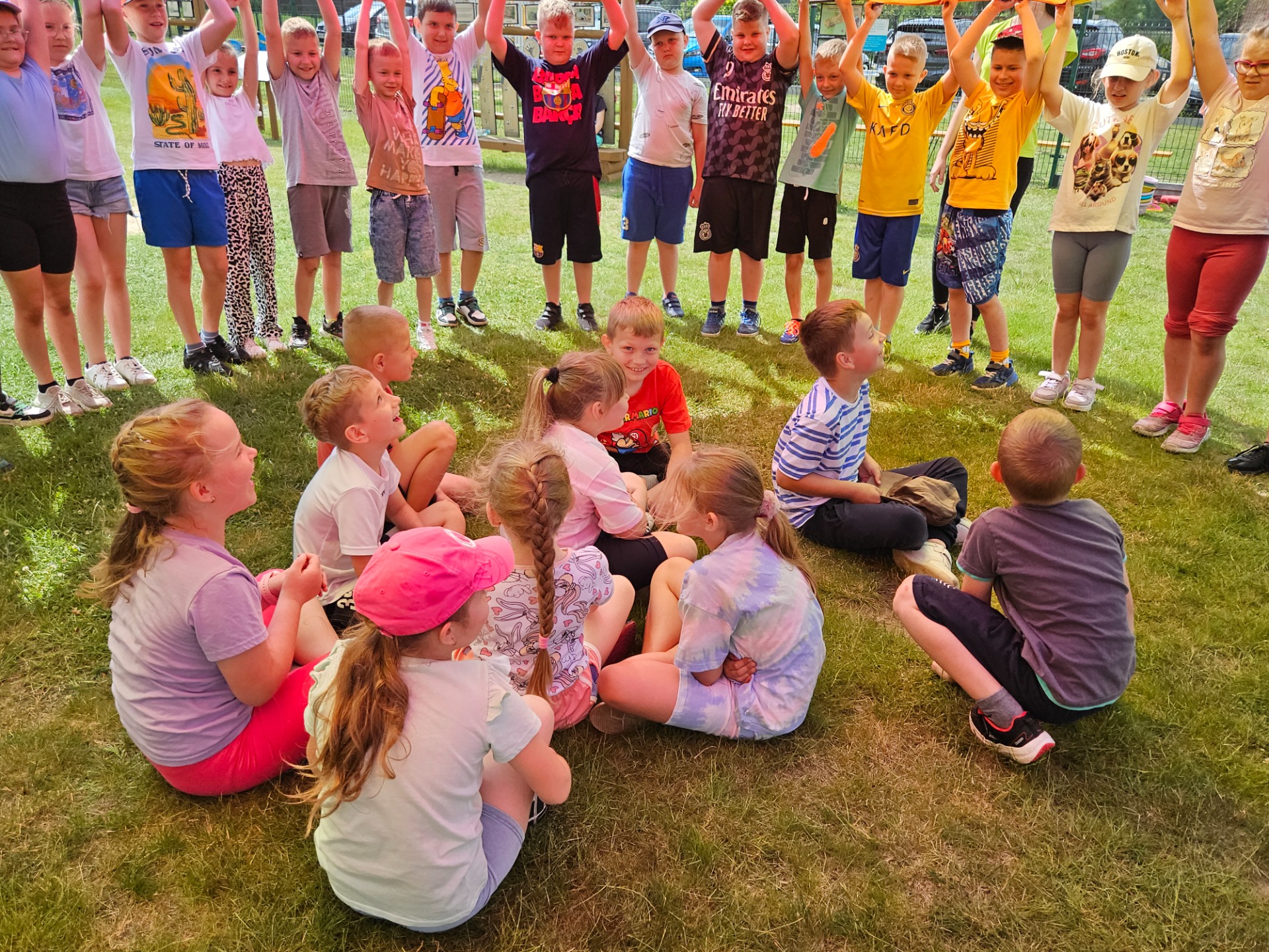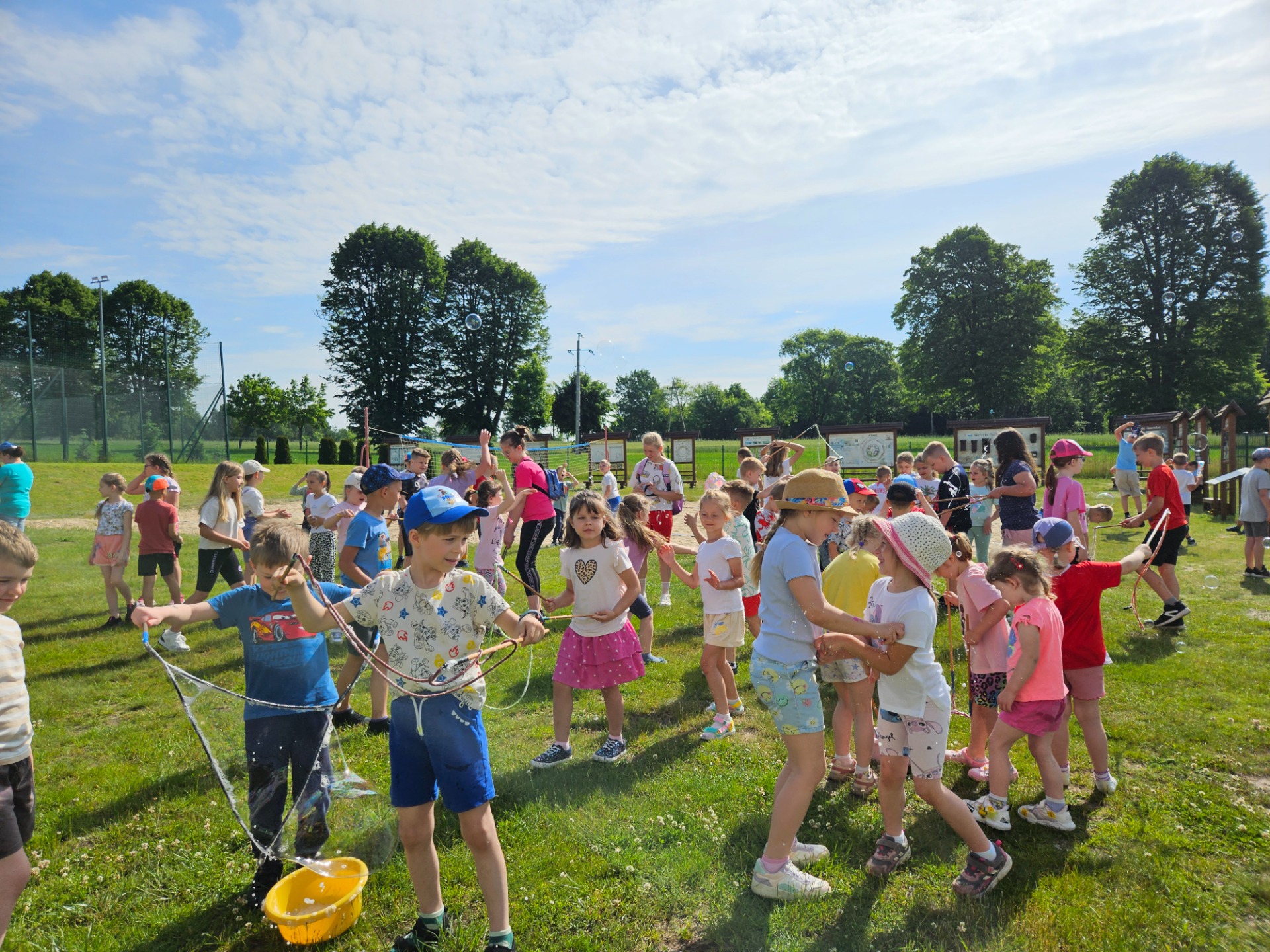 A pogoda? Pogoda nas rozpieściła! Słońce świeciło tak mocno, że co drugi nos nabrał intensywnie wakacyjnych kolorów 🌞😄 Czerwone policzki gościły nie tylko u dzieci, ale i u nauczycieli, którzy z pełnym oddaniem towarzyszyli uczniom przez cały ten czas.
