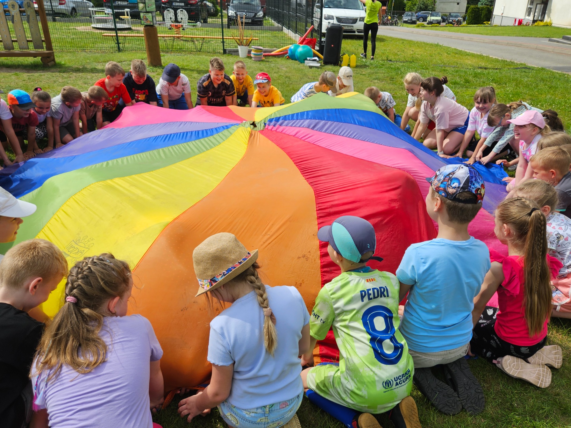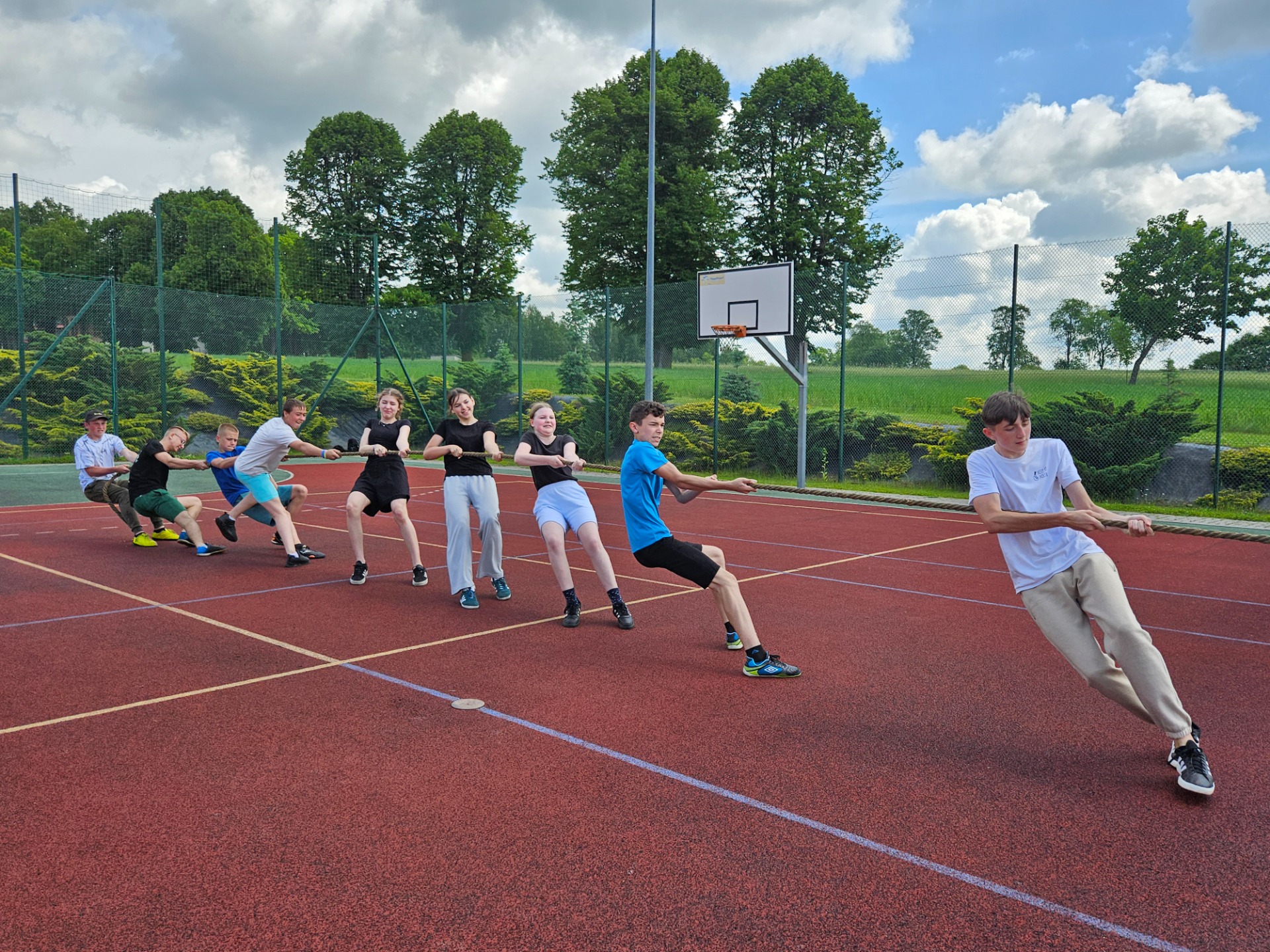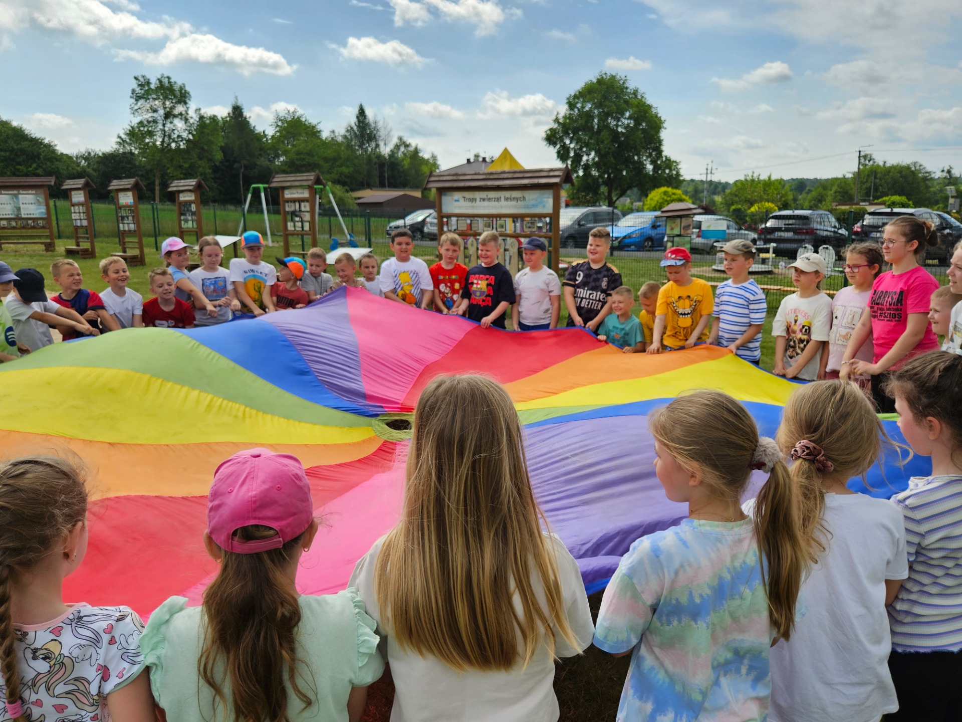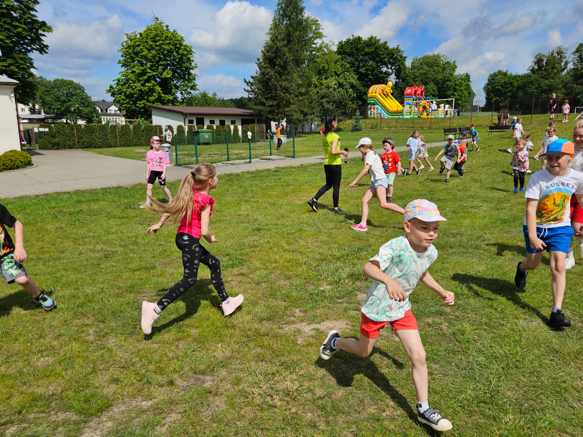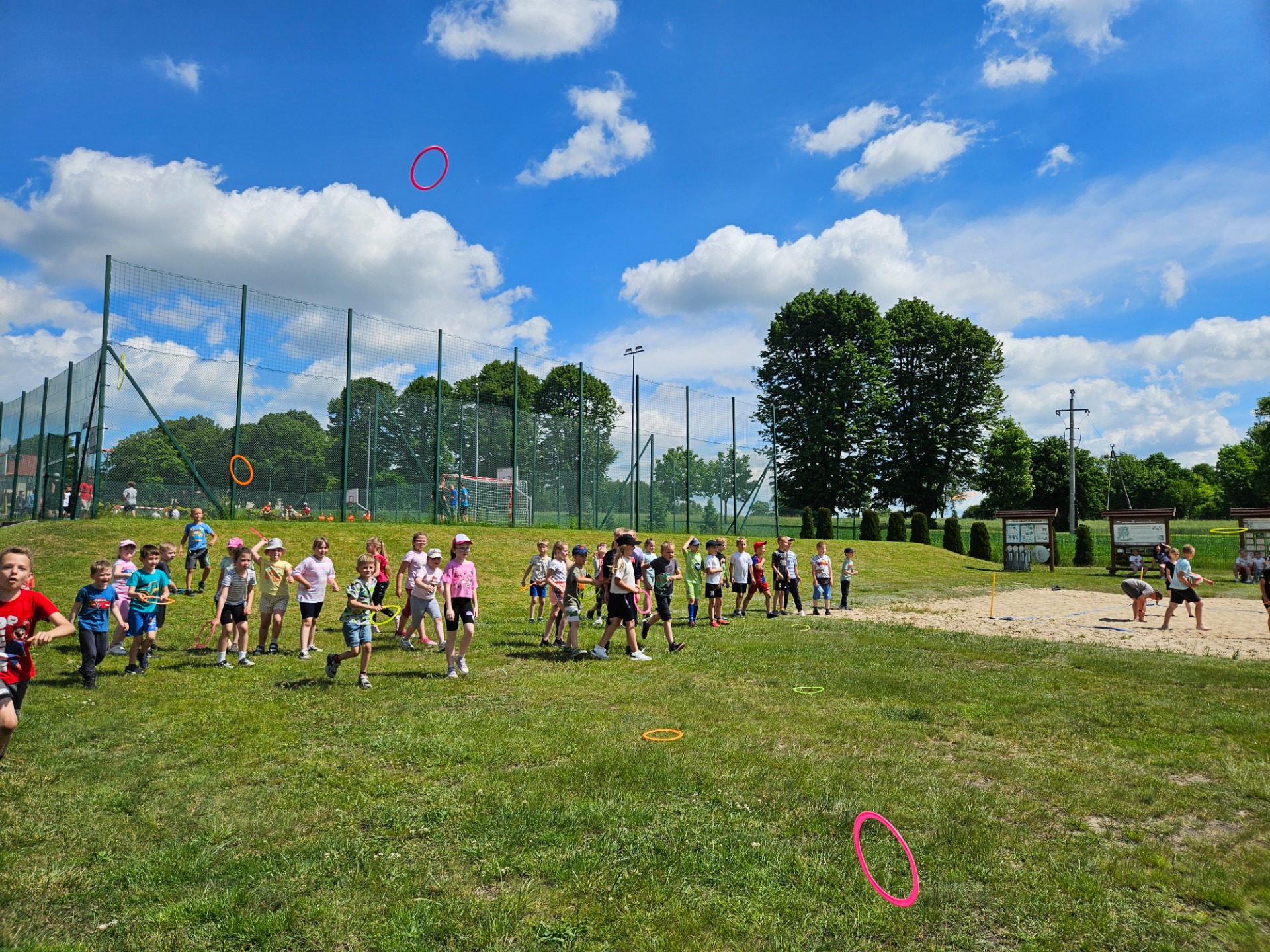 A pogoda? Pogoda nas rozpieściła! Słońce świeciło tak mocno, że co drugi nos nabrał intensywnie wakacyjnych kolorów 🌞😄 Czerwone policzki gościły nie tylko u dzieci, ale i u nauczycieli, którzy z pełnym oddaniem towarzyszyli uczniom przez cały ten czas.
