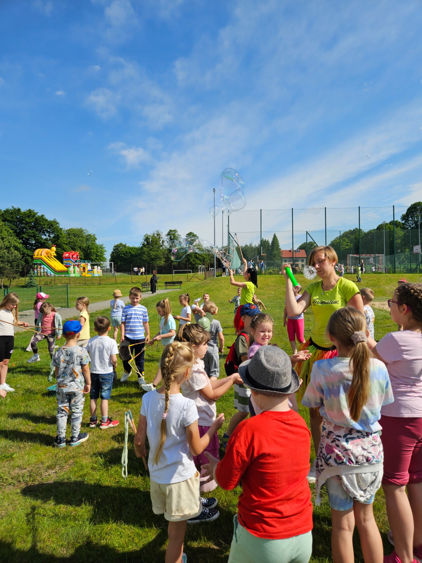 Tegoroczny Dzień Dziecka w naszej szkole był prawdziwym świętem radości i dobrej zabawy! Dla najmłodszych – dzieci z oddziałów przedszkolnych oraz klas I-III – przygotowano mnóstwo atrakcji z animatorami: zabawy ruchowe, bańki mydlane, różnorodne animacje i konkurencje sprawnościowe. Było śmiechu co niemiara, a energii starczyłoby jeszcze na kolejny dzień zabawy.