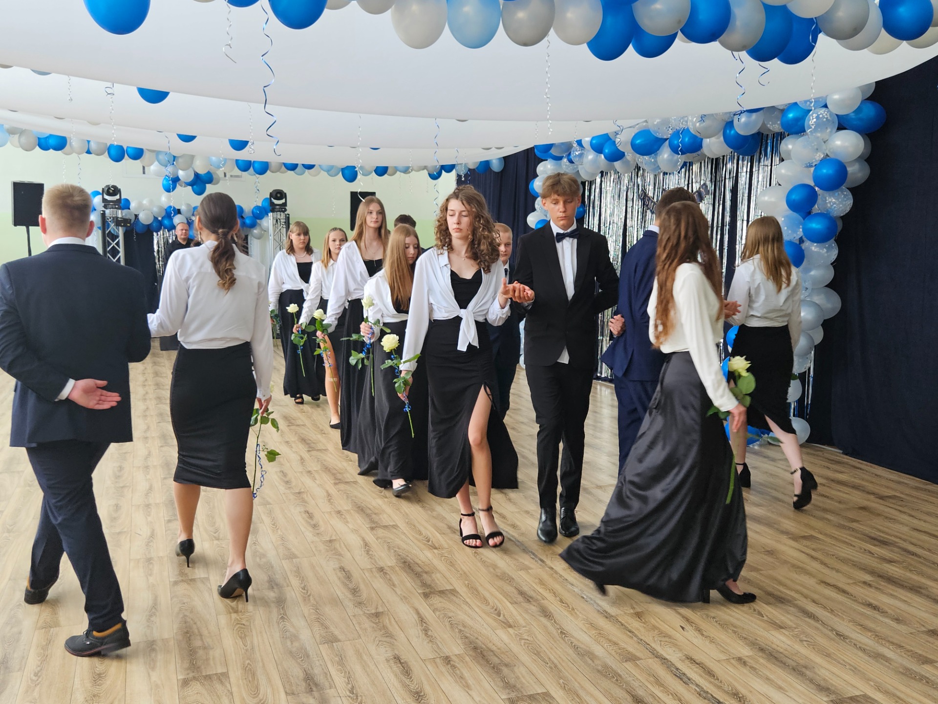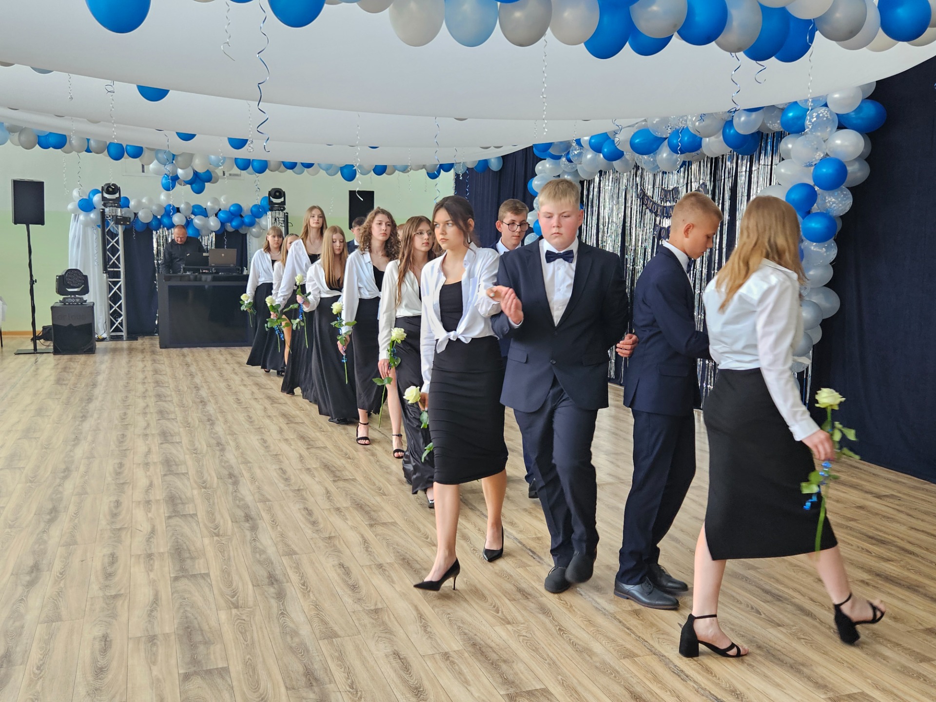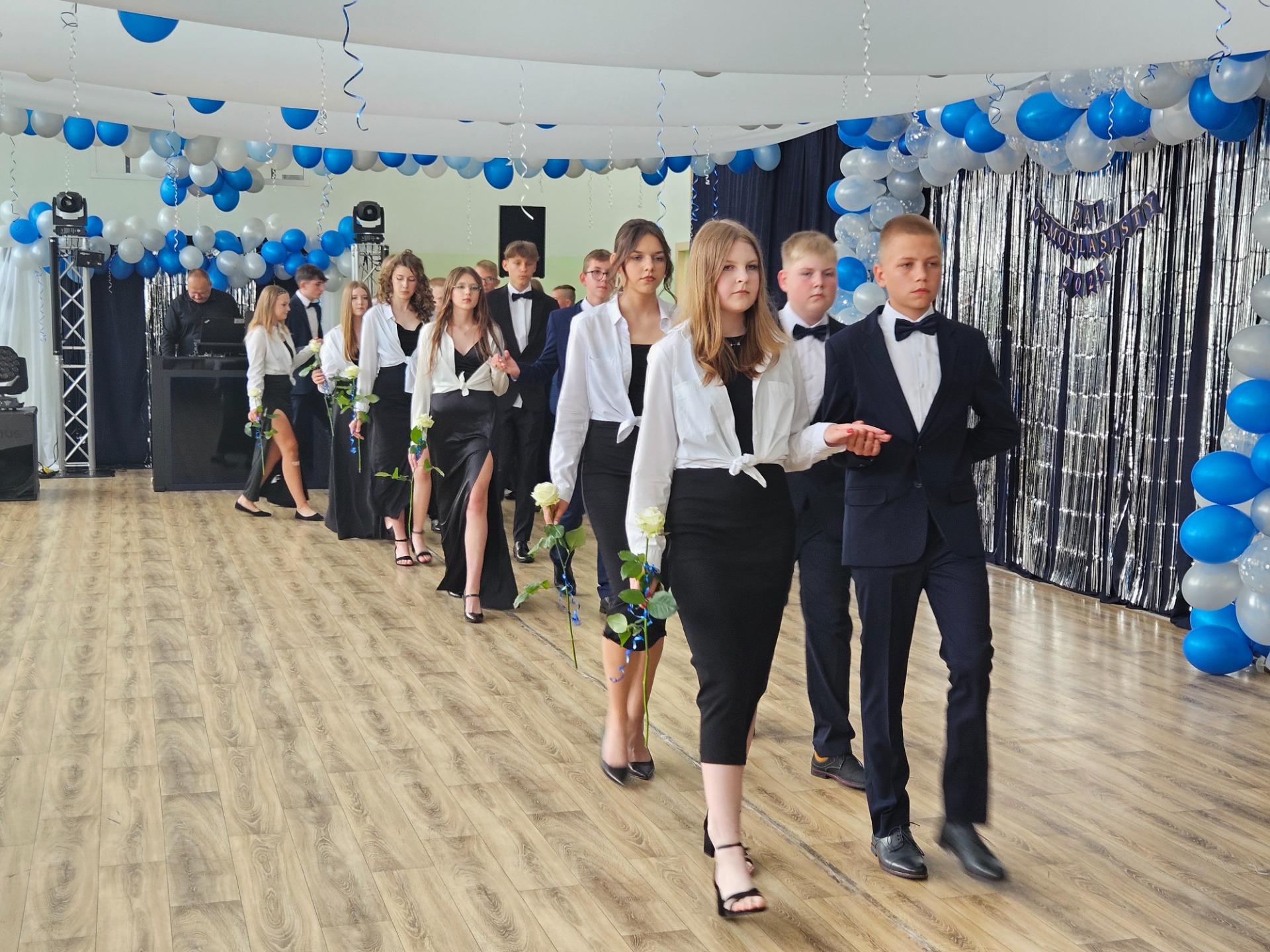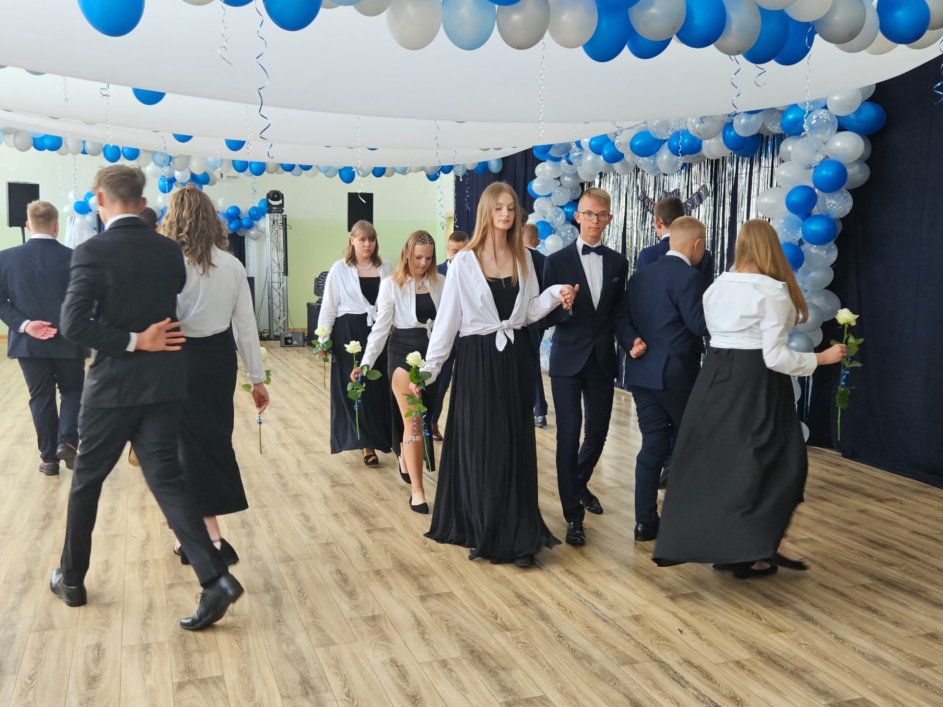 Wieczór rozpoczął się od dostojnego i pięknie wykonanego poloneza, który wprowadził wszystkich w podniosły nastrój. Choreografia została przygotowana przez panią Agnieszkę Kapustę, której zaangażowanie i kreatywność nadały uroczystości niepowtarzalny charakter.