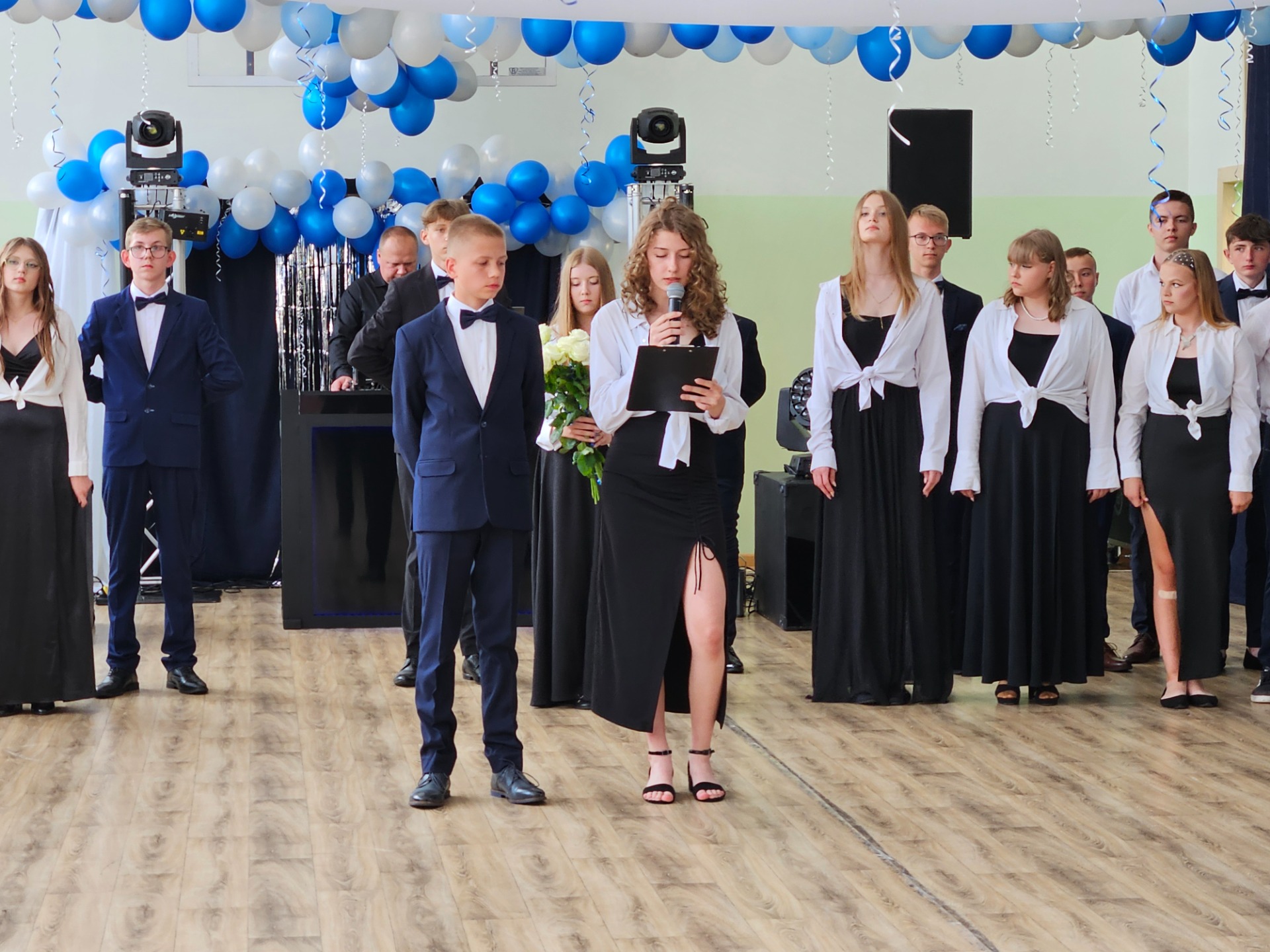 Nie zabrakło również wzruszających chwil – uczniowie klasy ósmej skierowali ciepłe słowa wdzięczności do pani dyrektor Anny Łysiak, swojego wychowawcy Krzysztofa Kostyry, wszystkich nauczycieli oraz pracowników szkoły. Wspominali wspólnie spędzone lata, wyrażając wdzięczność za wsparcie, troskę i edukację.