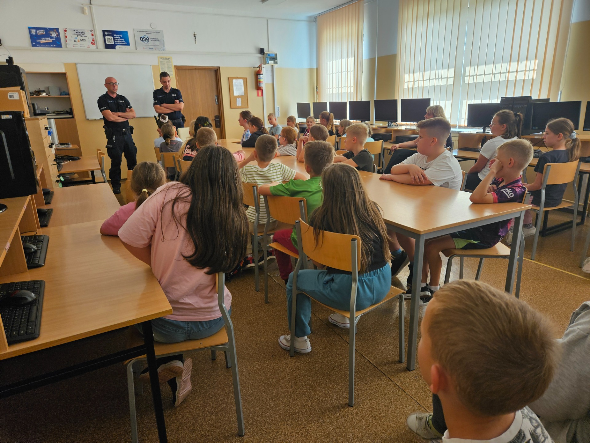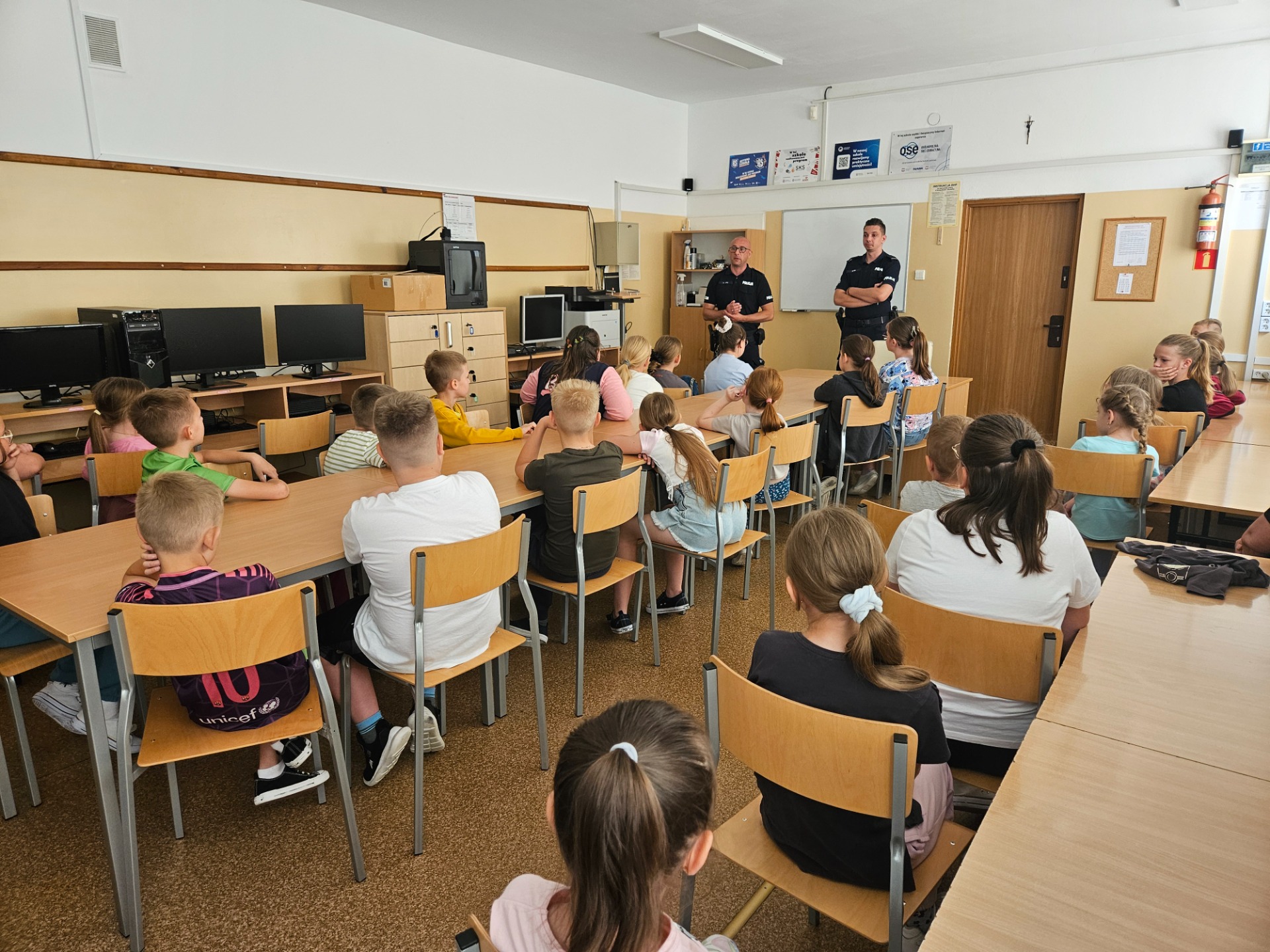 W naszej szkole odbyło się wyjątkowe spotkanie z funkcjonariuszami Policji, którzy odwiedzili nas tuż przed zakończeniem roku szkolnego, aby przypomnieć uczniom o zasadach bezpieczeństwa w czasie zbliżających się wakacji.