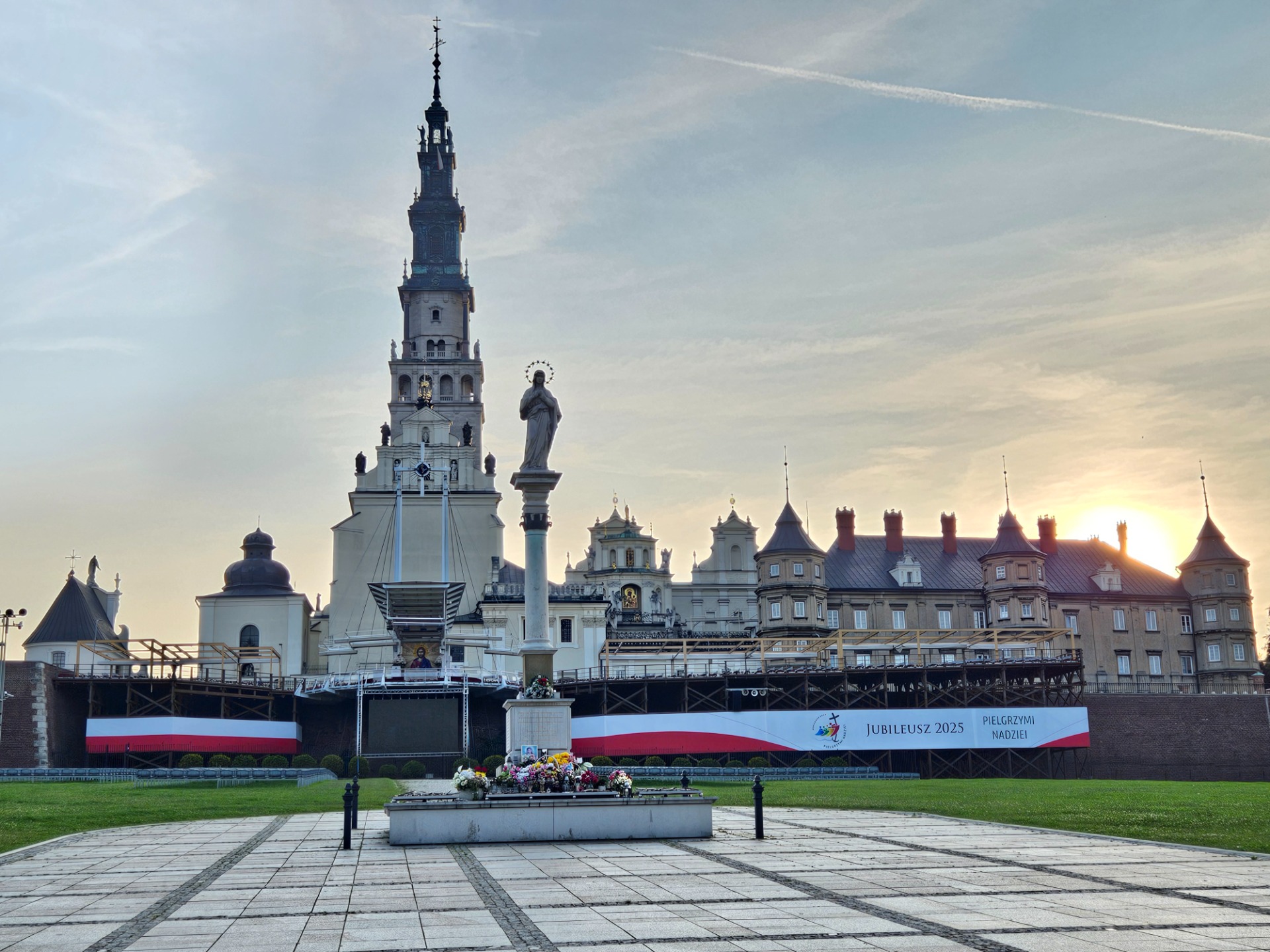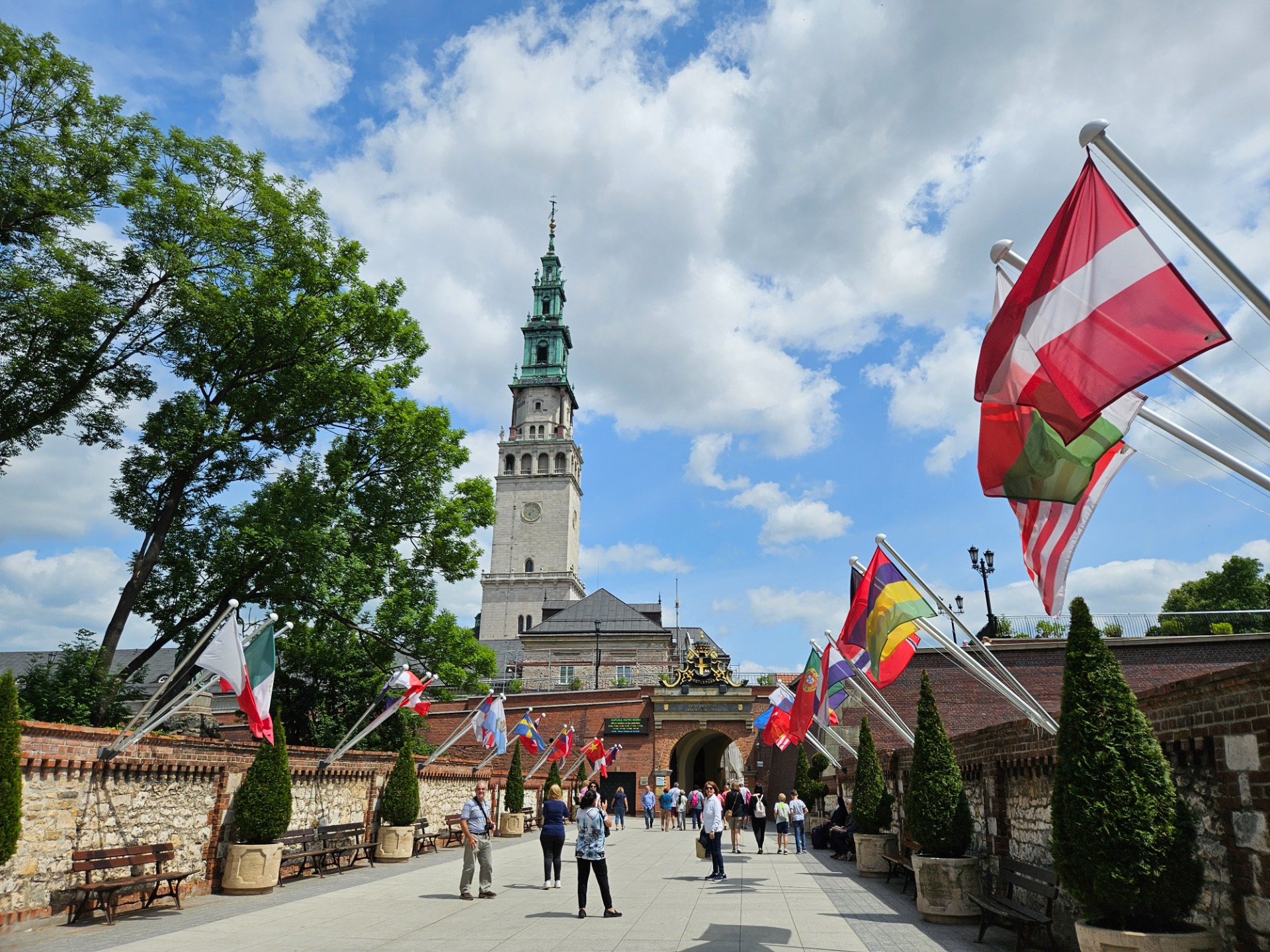 Następnie udaliśmy się do Częstochowy – serca duchowego Polski. Jedną z największych atrakcji było wejście na wieżę Jasnej Góry. Wieża liczy 316 schodów – nie każdy dotarł na sam szczyt, ale wszyscy, nawet na lekko drżących nogach, podjęli wyzwanie! Widok z góry był tego wart – panorama Częstochowy zapierała dech w piersiach!