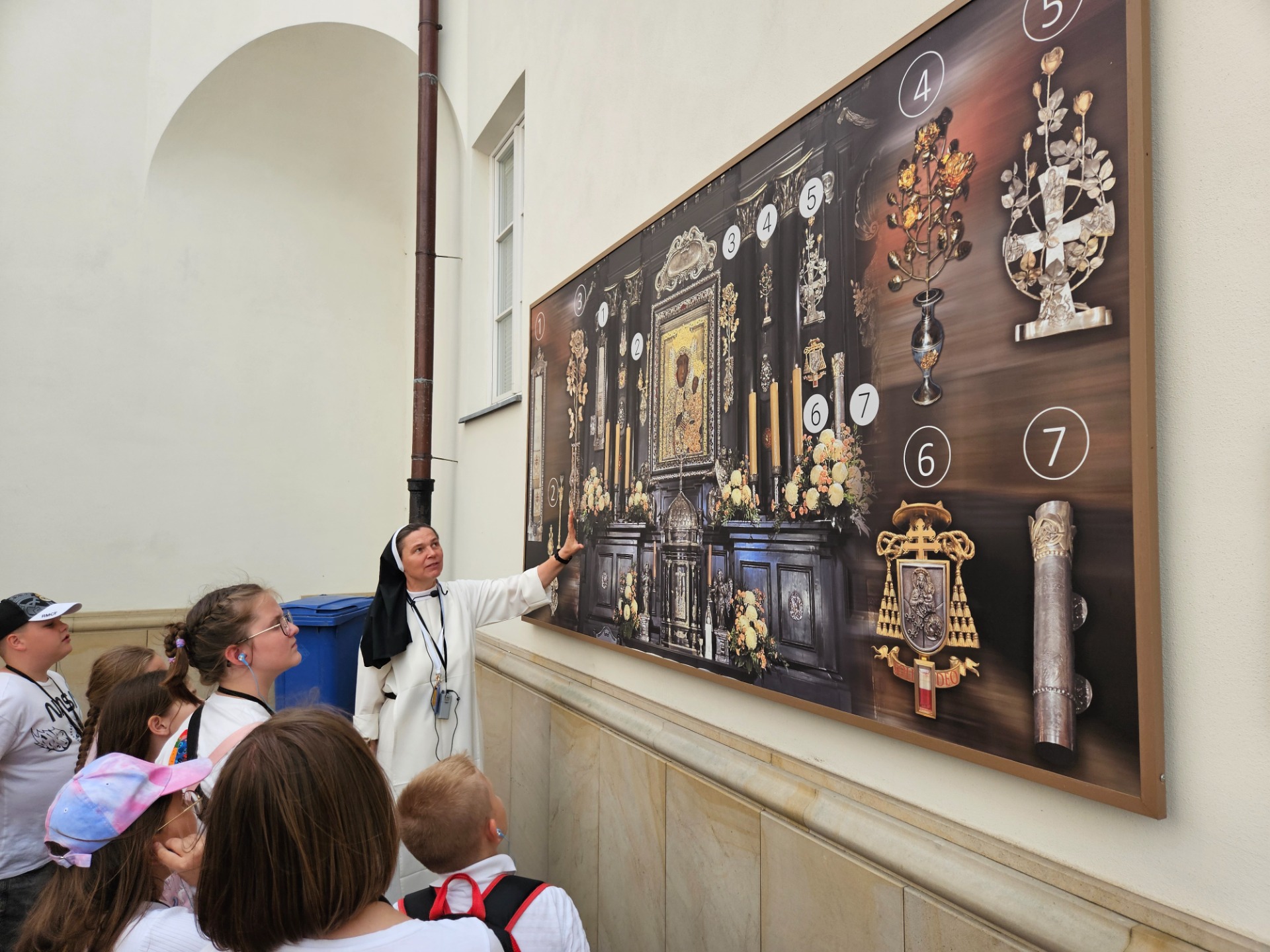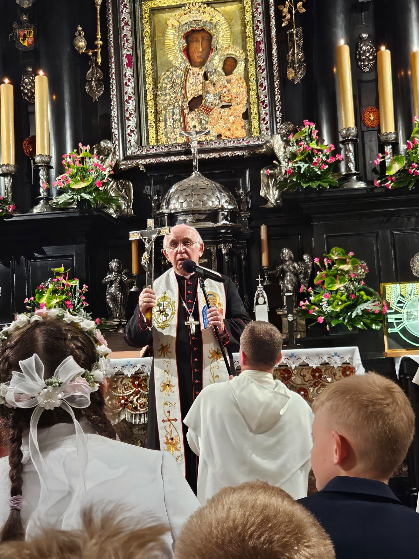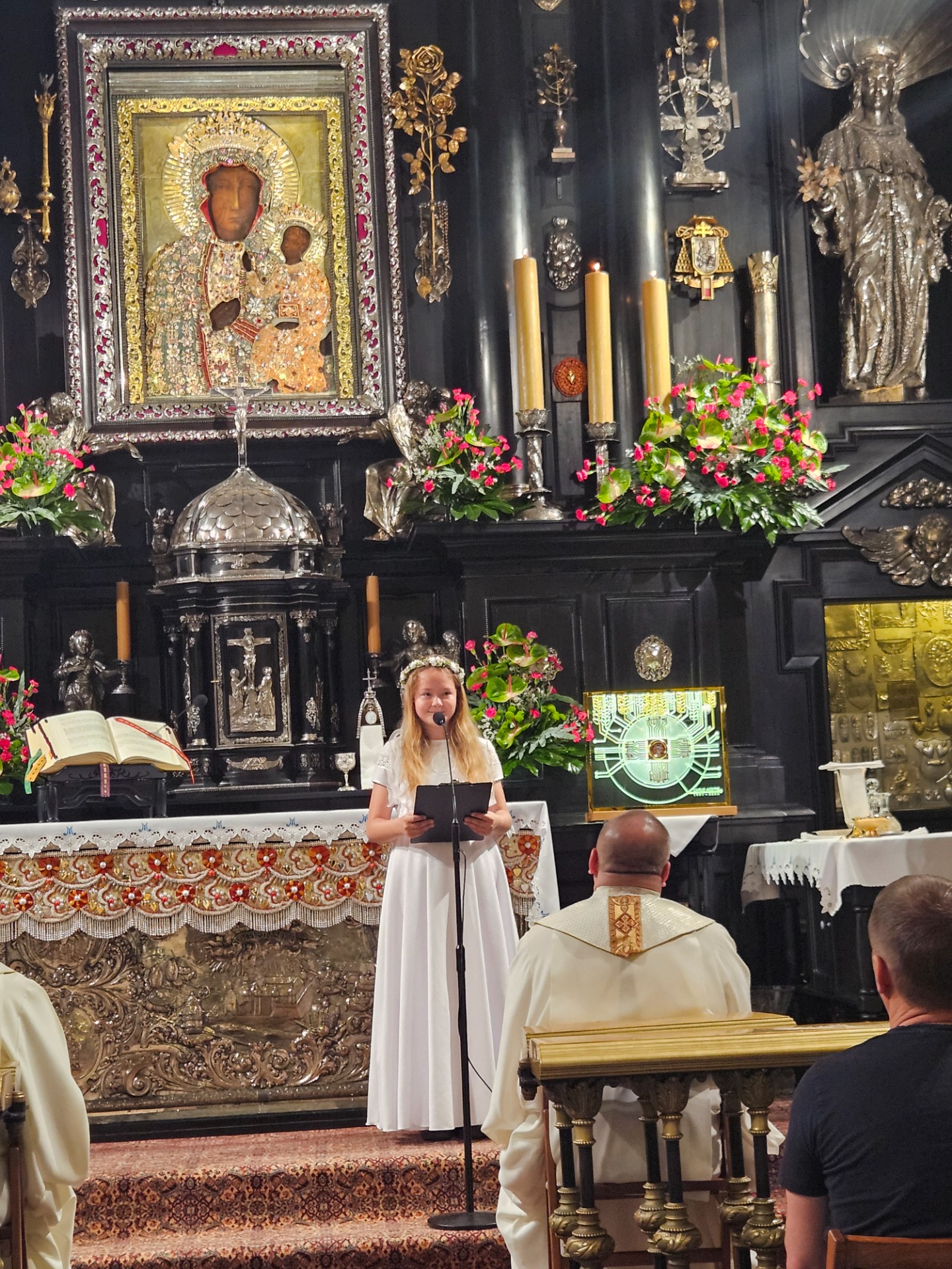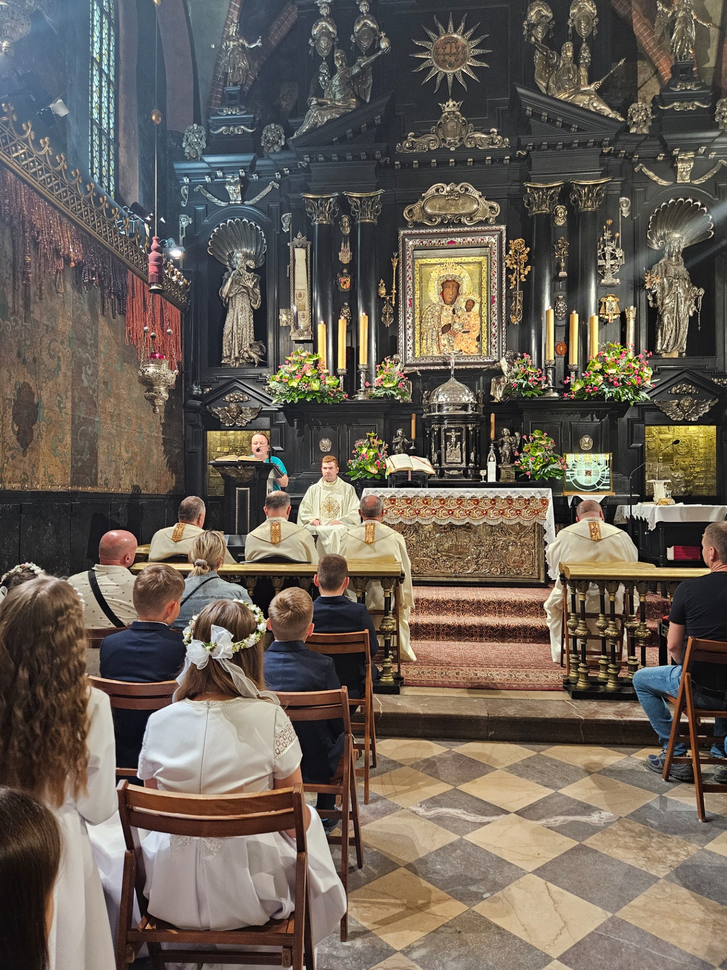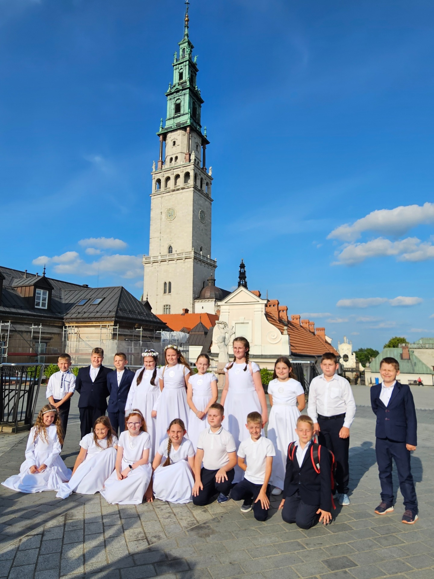 Zwiedzanie klasztoru Jasnogórskiego z przewodnikiem pozwoliło nam zobaczyć miejsca, do których nie każdy ma dostęp – było to fascynujące i bardzo pouczające doświadczenie. Szczególnym momentem była Msza Święta w Kaplicy Matki Bożej Częstochowskiej, której przewodniczył ks. Marek Łysiak. To właśnie tam, przed cudownym obrazem, uczniowie wraz z opiekunami mogli w skupieniu podziękować za dar Pierwszej Komunii Świętej.