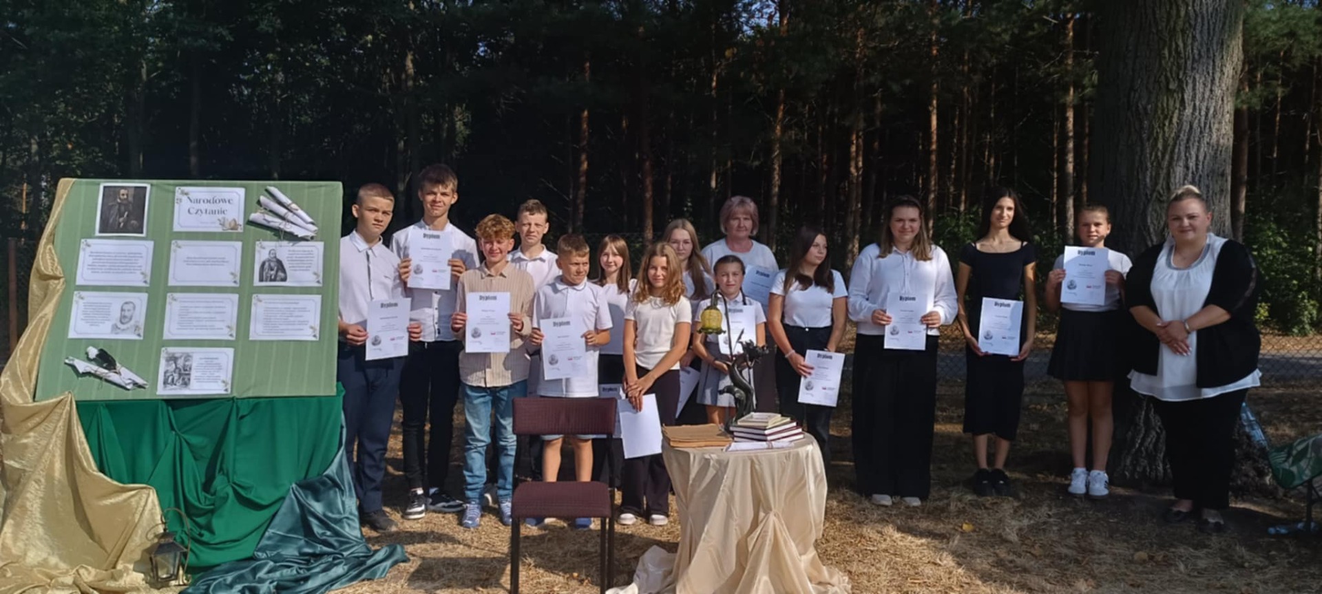 Wspólne czytanie w naturalnym otoczeniu, z dala od szkolnych ławek, pozwoliło wszystkim poczuć ducha Czarnolasu i jeszcze głębiej zrozumieć twórczość Jana Kochanowskiego. Całości dopełniała wspaniale zaaranżowana scenografia.