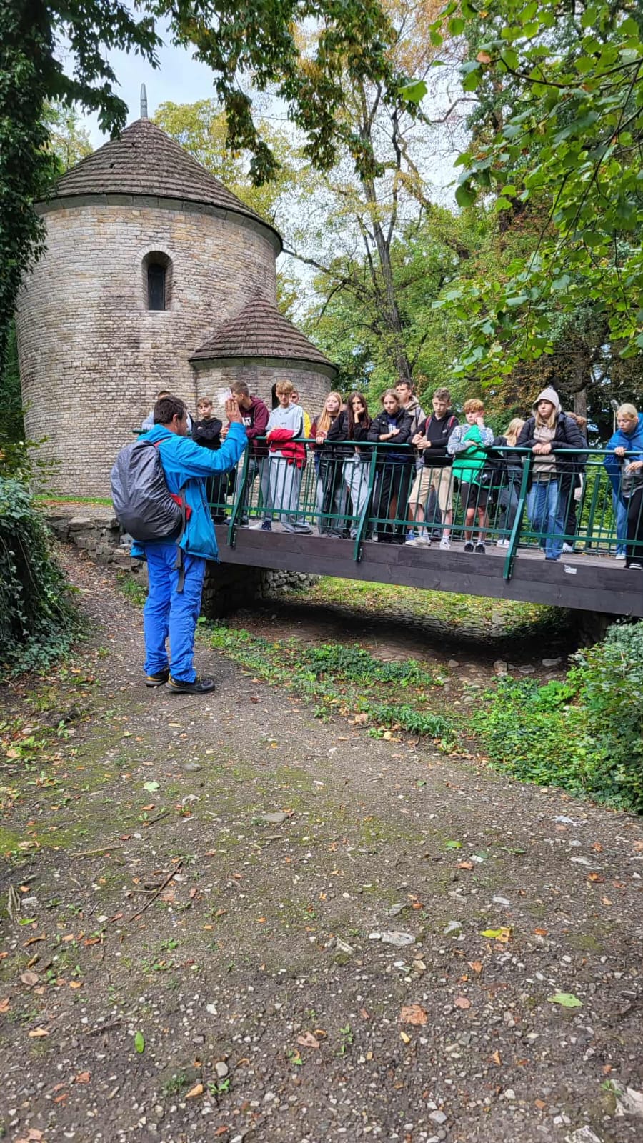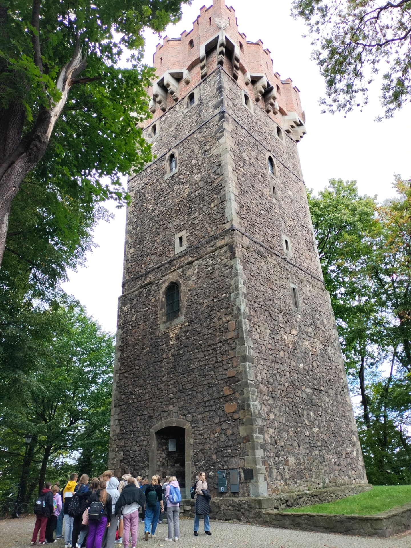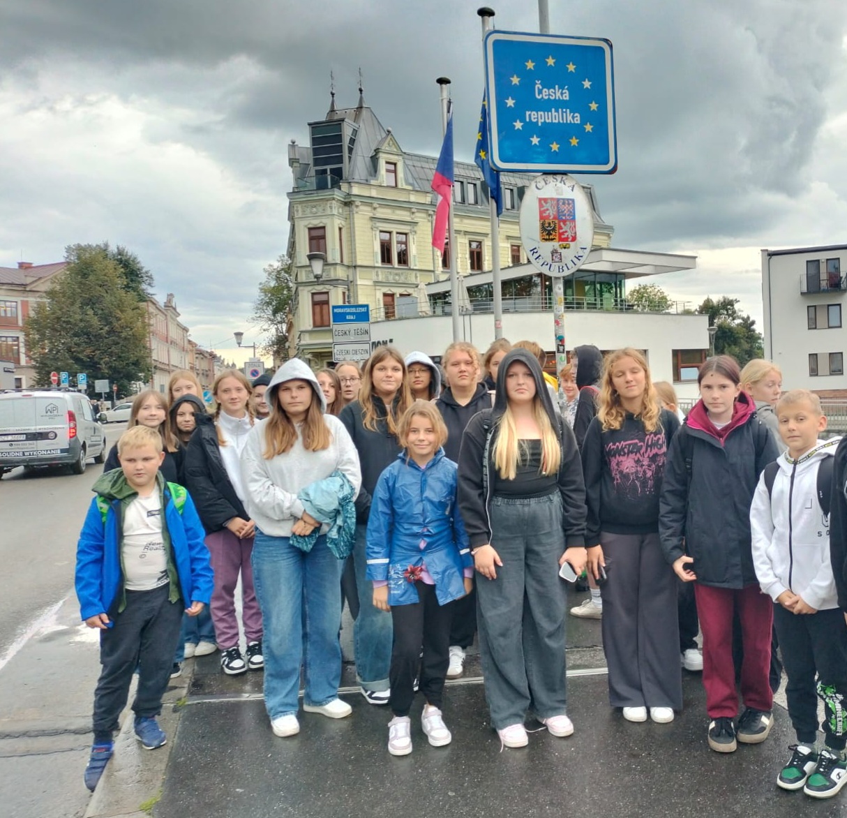 Pierwszym punktem naszej wycieczki był Cieszyn, gdzie spacerowaliśmy ulicami miasta, poznając jego historię. Odwiedziliśmy m.in. Wzgórze Zamkowe, weszliśmy na taras widokowy na zabytkowej Wieży Piastowskiej, skąd podziwialiśmy panoramę miasta i rzekę Olzę. W Cieszynie podziwialiśmy również Kościół Marii Magdaleny, ratusz, piękny rynek, zabytkowe kamienice, Most Przyjaźni wraz z Transgranicznym Centrum Informacji, gdzie znajduje się odtworzony stary tramwaj. Ogromnie wrażenie zrobiła na nas zabytkowa Biblioteka Scherschnickiana. Przewodnik przybliżył nam historię kultowego wafelka Prince Polo, który produkowany jest od 70 lat w Cieszynie. Spróbowaliśmy również lokalnych przysmaków, czyli kanapek ze śledziem.