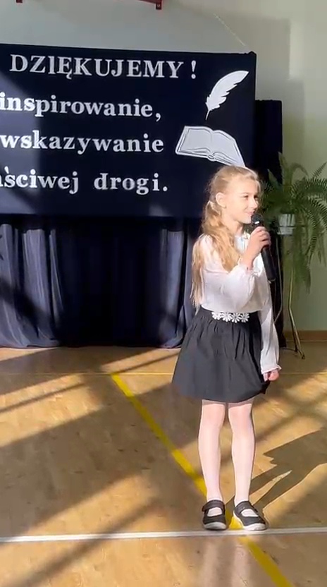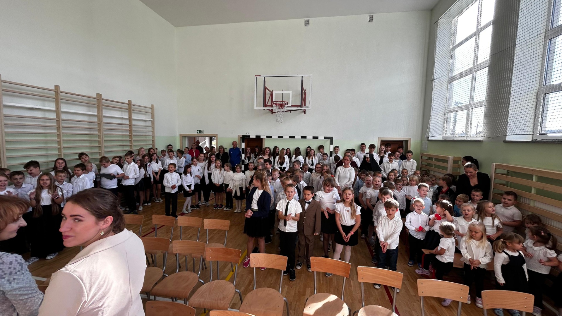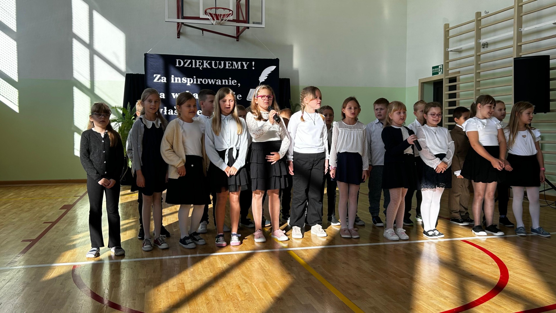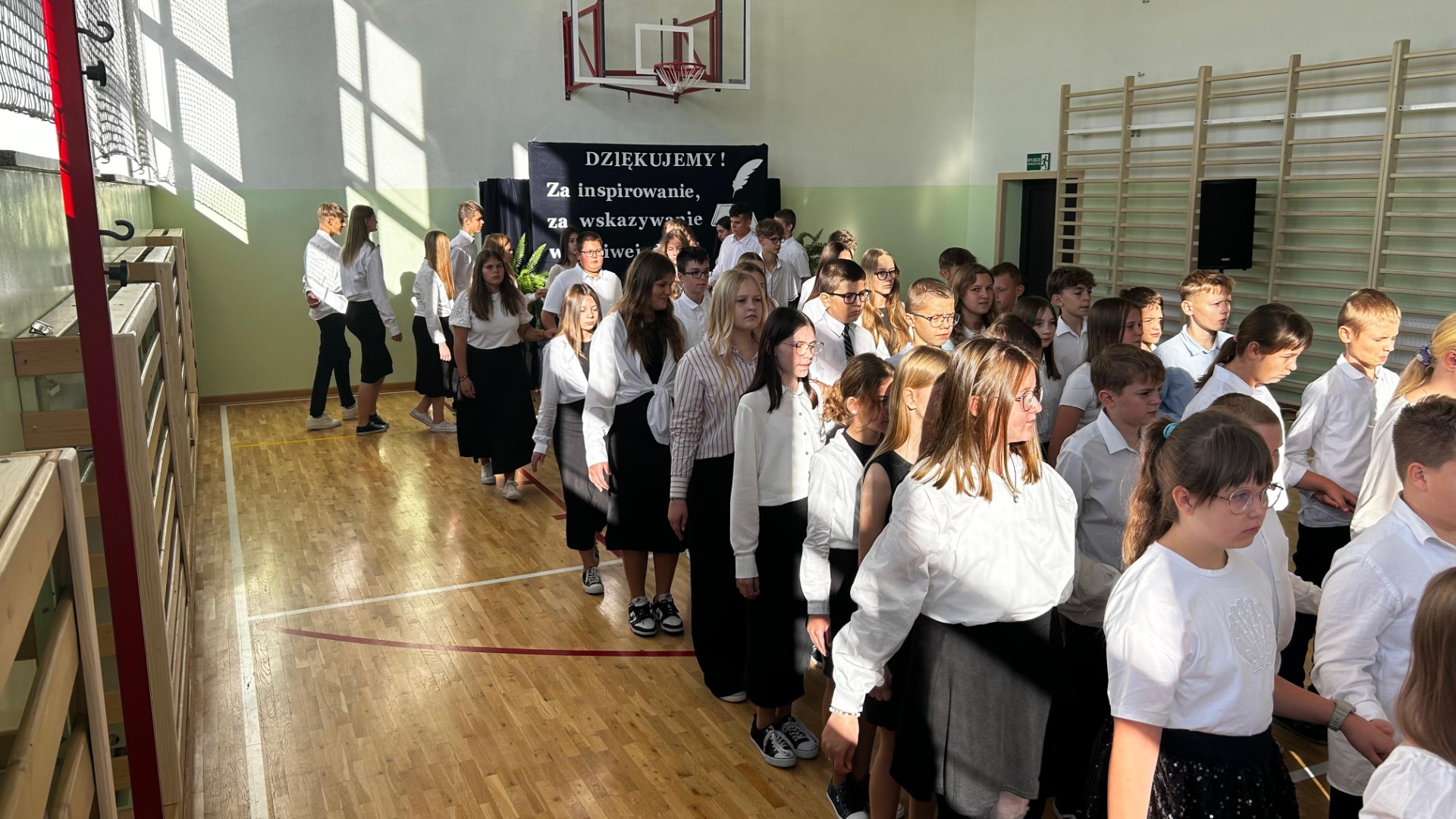 Nie zabrakło również akcentu tanecznego – uczniowie klas IV–VIII zaprezentowali pięknego poloneza, który wprowadził wszystkich w niezwykle podniosły i uroczysty nastrój.